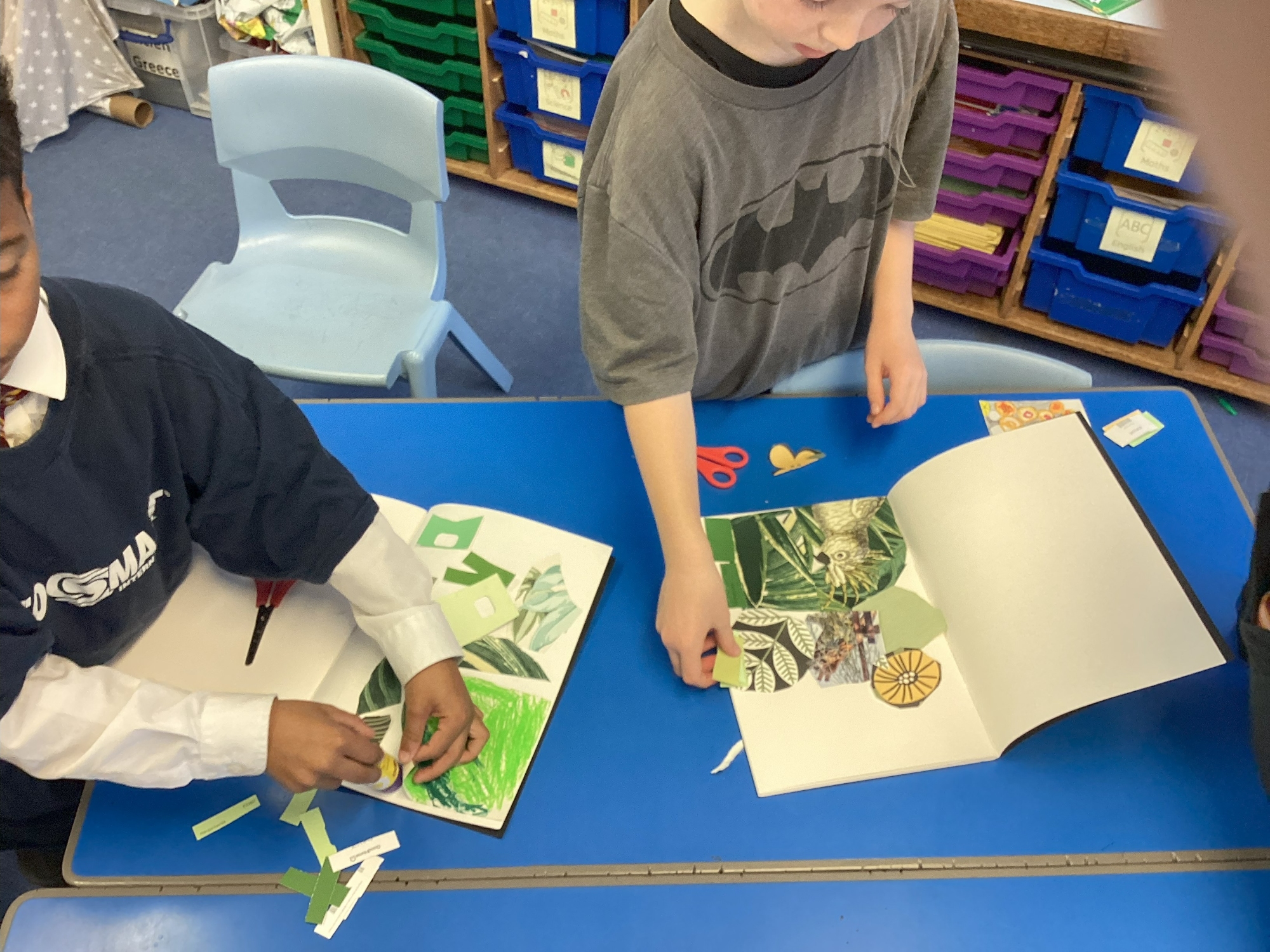 We are studying 'The Rainforest' in Art. We have created some mood boards to capture the colours and patterns from the rainforest fruit and vegetation art we completed last week. Next week, we will add some highlight colours to our mood boards using water colours or pastels.