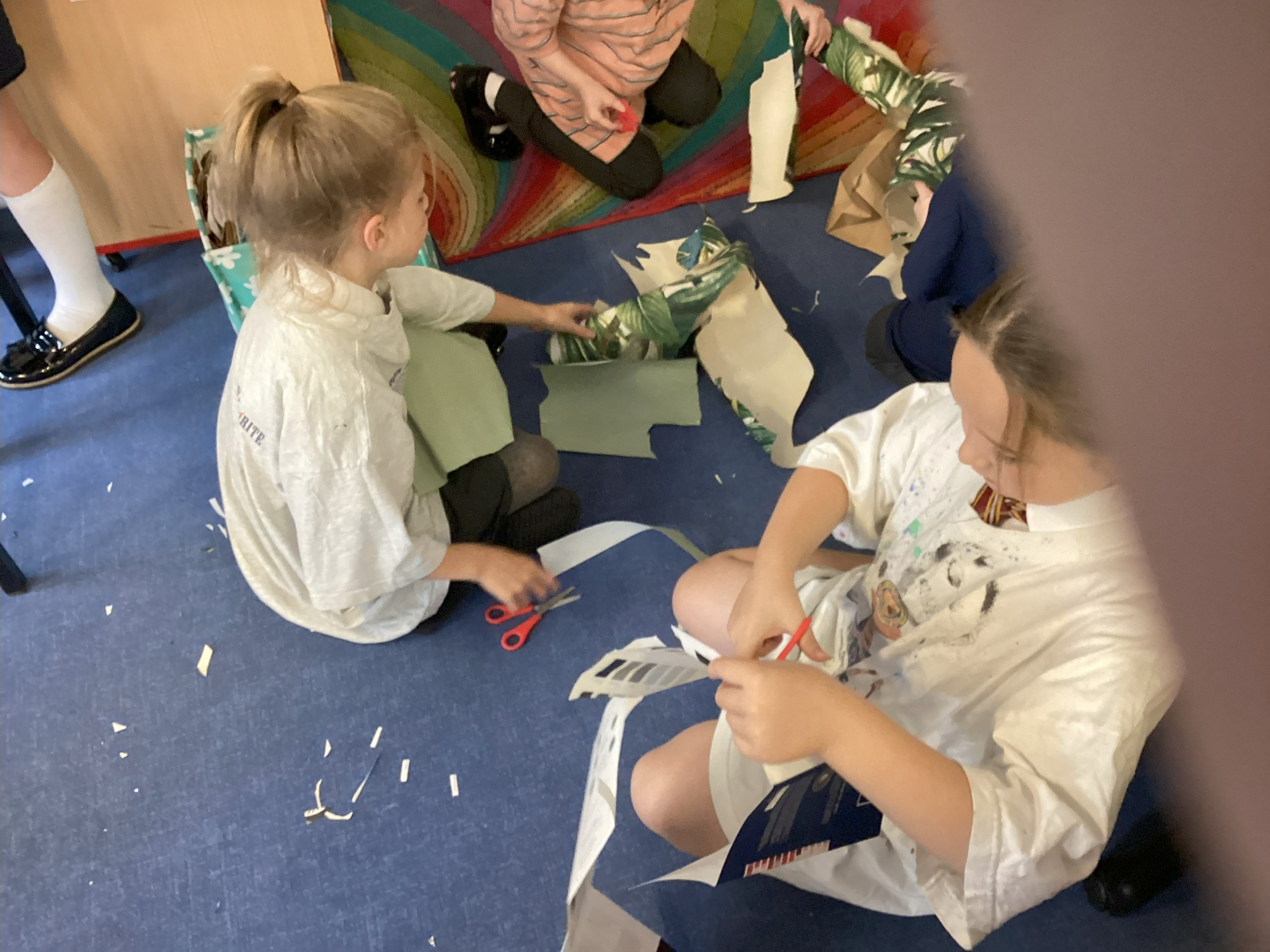 Year 4 are working on a rainforest theme for their music lesson. They are starting to identify the texture and structure of a piece of music, and then they are developing some body percussion based on the Rainforest theme. They are certainly having fun working in groups.