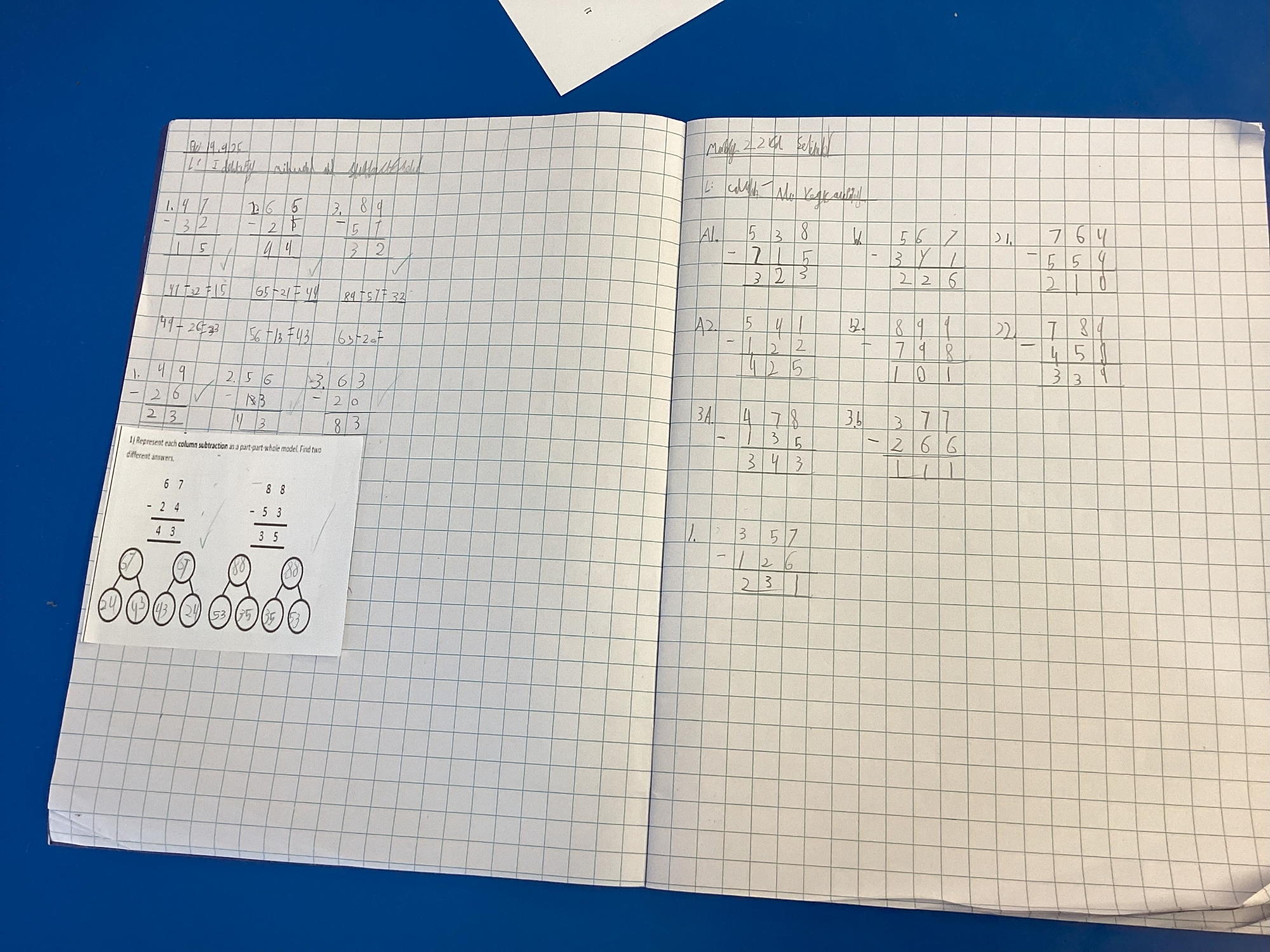 We have now challenged ourselves to find the most efficient way to subtract! Should we use column subtraction or a mental strategy? A lot of maths talk and being able to explain their reasoning.
