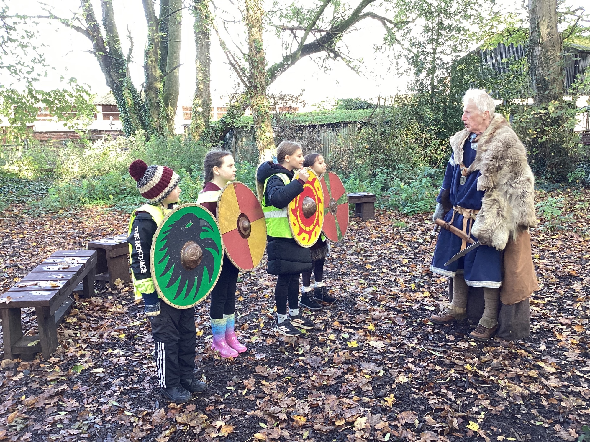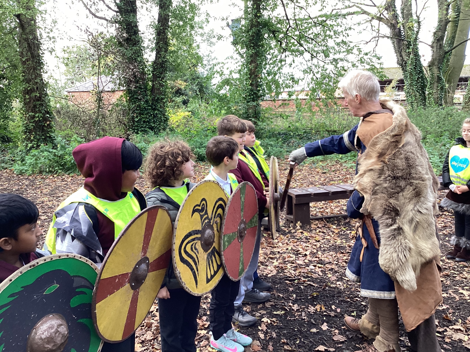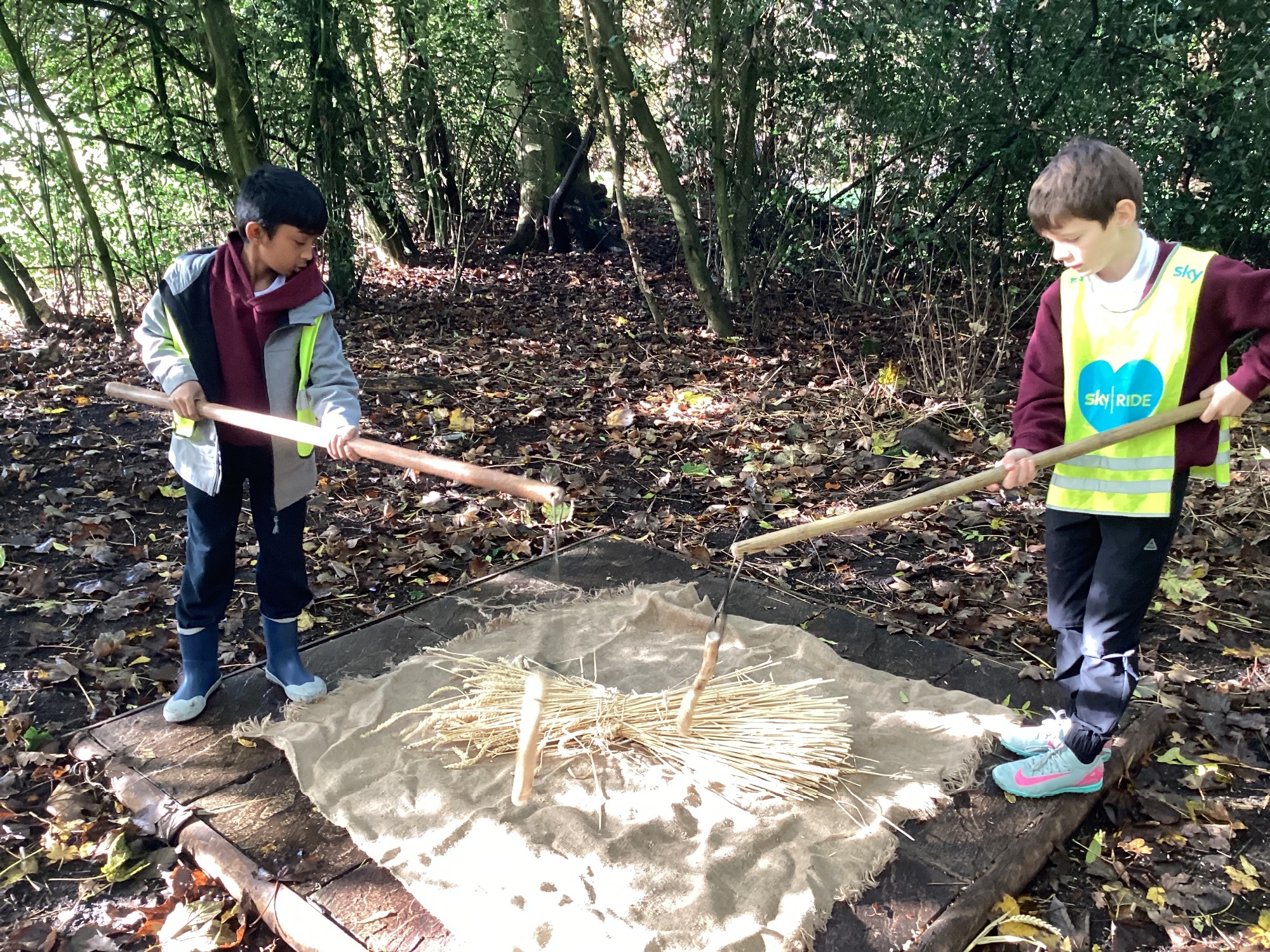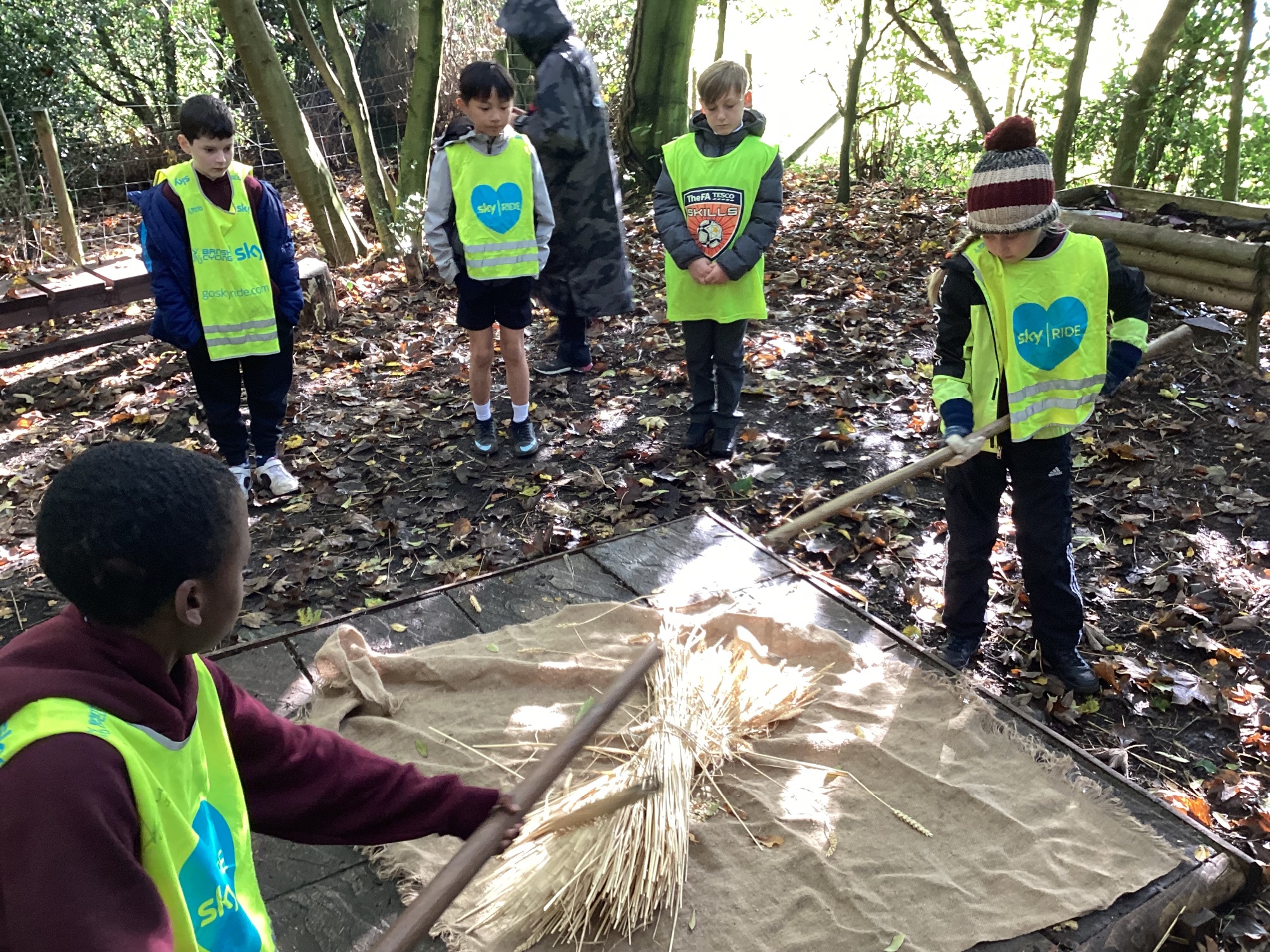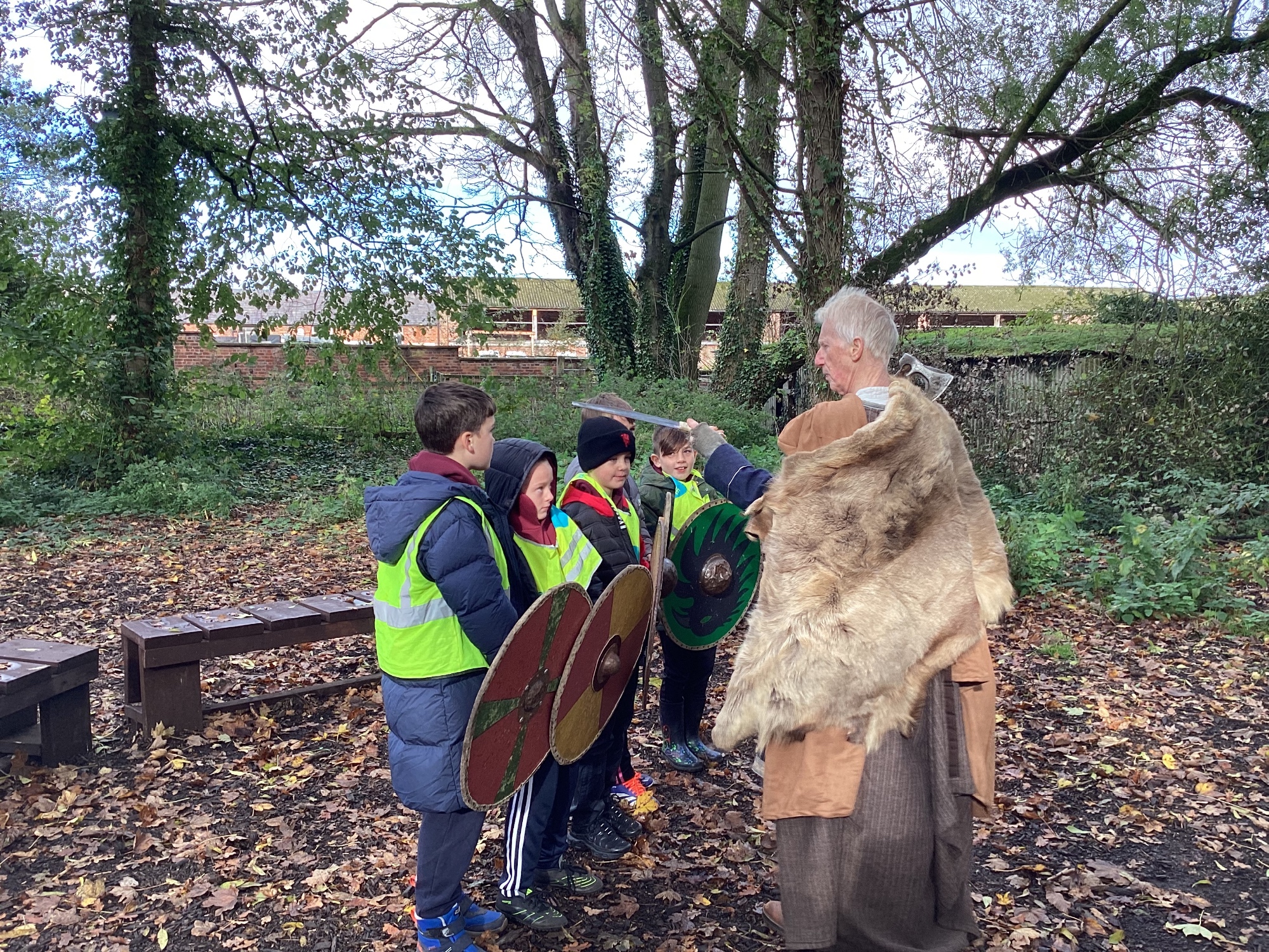 As part of this half-term's topic of Anglo-Saxons and Vikings, Year 5 visited Tatton Park where we were greeted by Harold Bloodaxe who put us through our paces with beginners Viking training. We also helped to thresh the wheat and grind it into flour and made some colourful braids to trade with the Vikings.