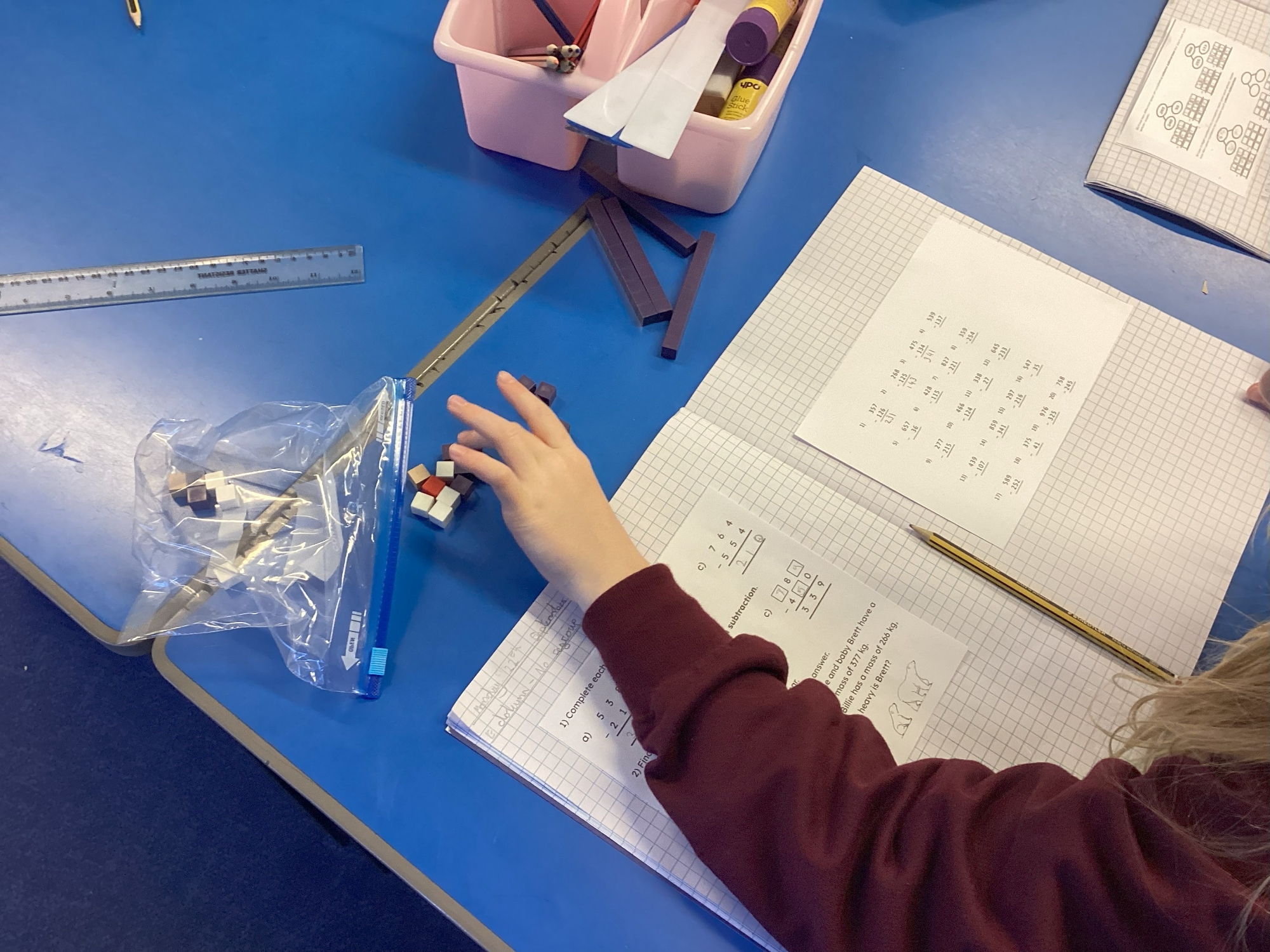 We have been honing our column subtraction knowledge and using dienes to support our calculations.