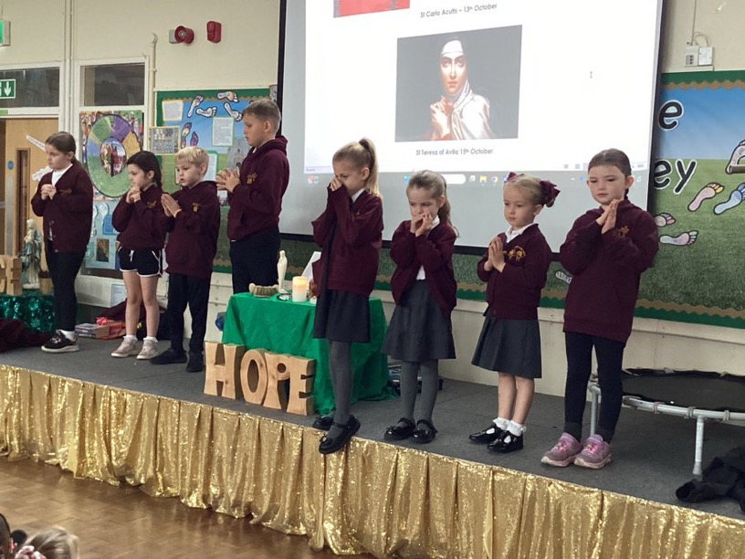 During the Celebration of The Word today we spoke about two very special Saints, St.Teresa of Avila and St.Carlos Acutis.We acknowledged that we keep Jesus alive every time we do good in the World.Finally, we said our own very special prayers.