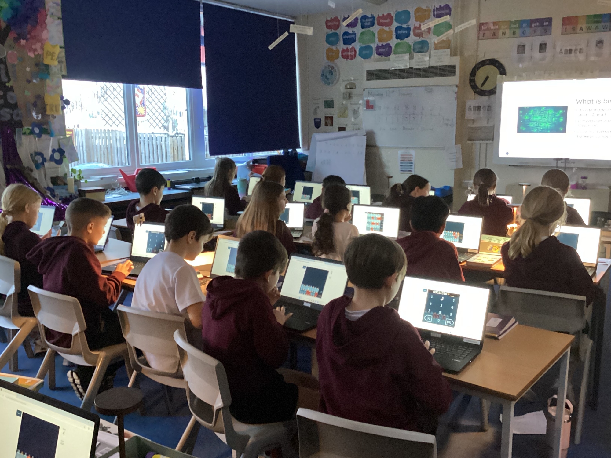 Continuing our work on the Mars Rover project, we learnt about how computers communicate using binary code. We explored how information can be sent and understood using only zeros and ones.