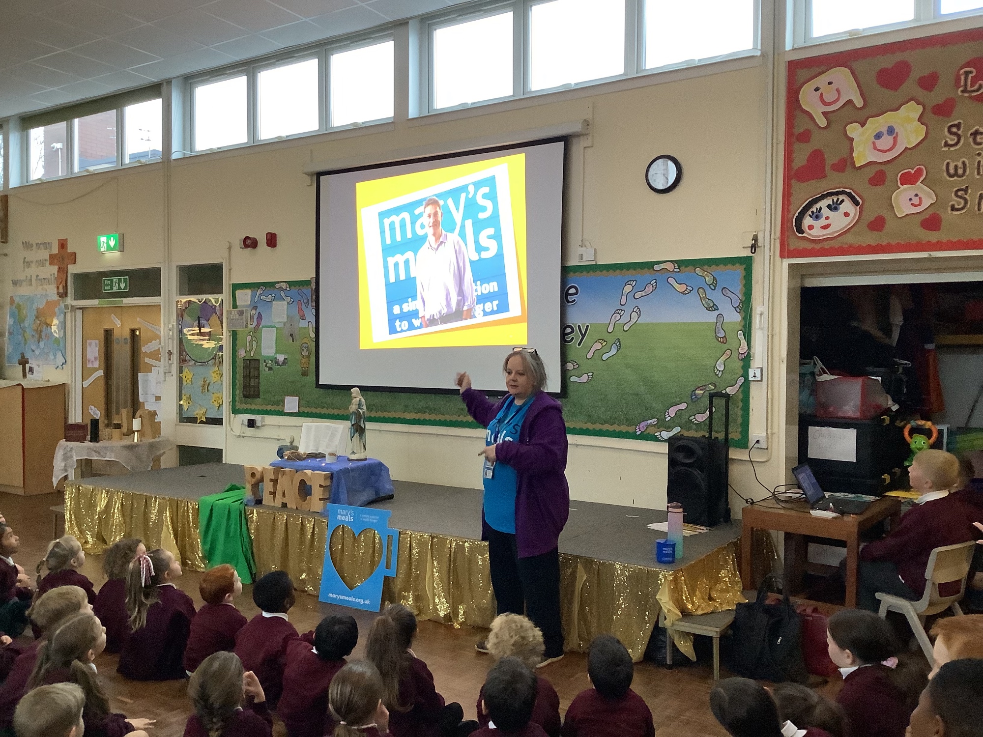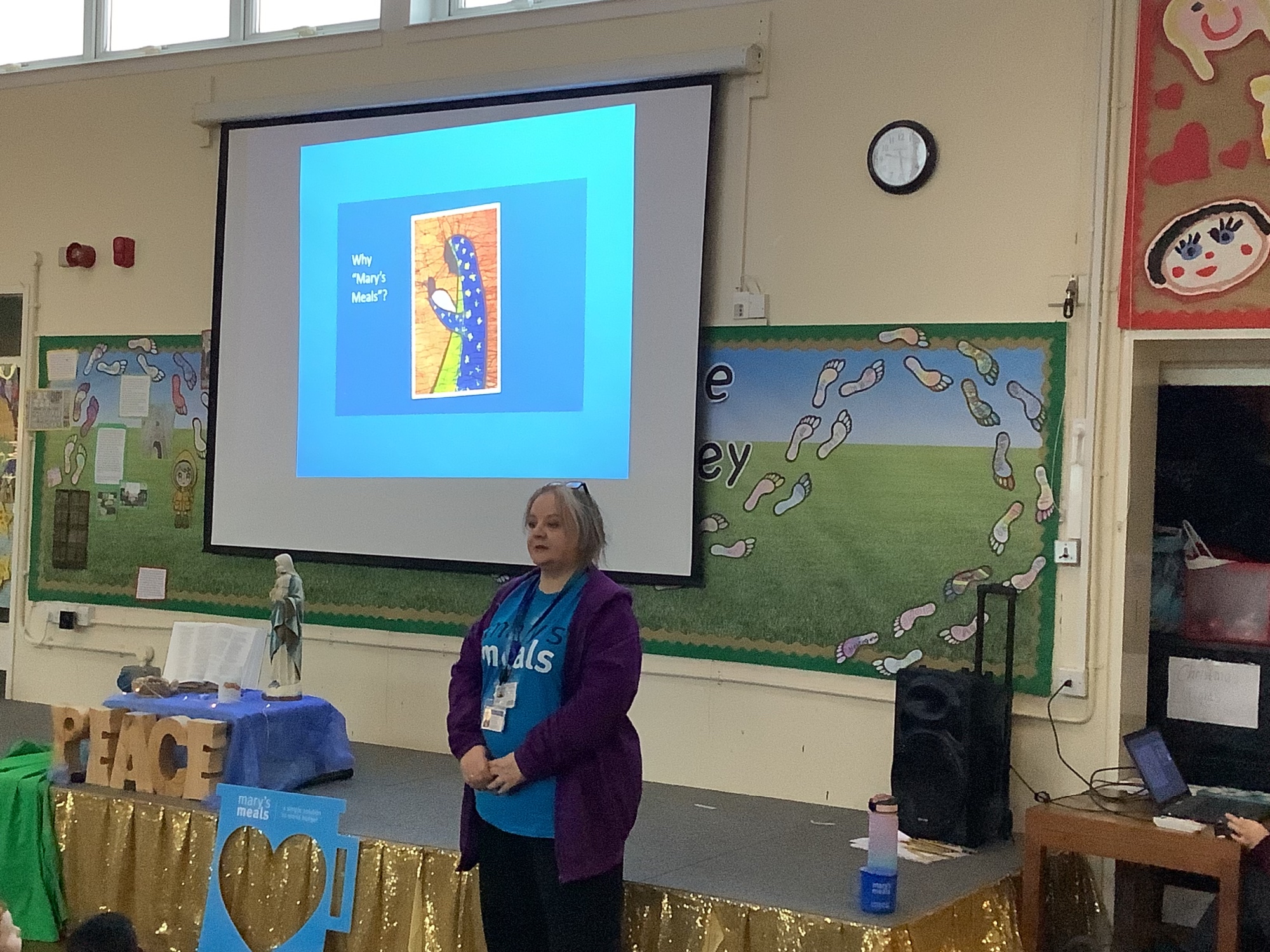 We were delighted to welcome Fran into school to be part of our Celebration of the Word, where she spoke to the whole school about the incredible work she does with Mary’s Meals. Fran shared how this inspiring charity provides life-changing meals to children around the world, helping them gain an education and hope for the future. She also explained how our Mini Vinnies group, along with the rest of our school community, can get involved by supporting fundraising efforts and spreading awareness. Her visit helped us reflect on our shared values of compassion, service and making a difference to others and we are very excited to take action together.