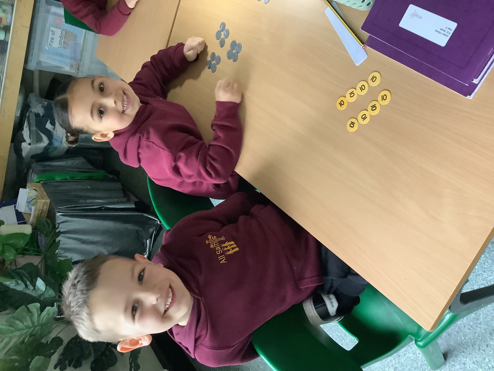 Year 2 children represented the ten times table in a variety of ways, using resources such as ten rods, place value counters and coins. This helped the children deepen their understanding of counting in tens and recognising patterns within the ten times table.