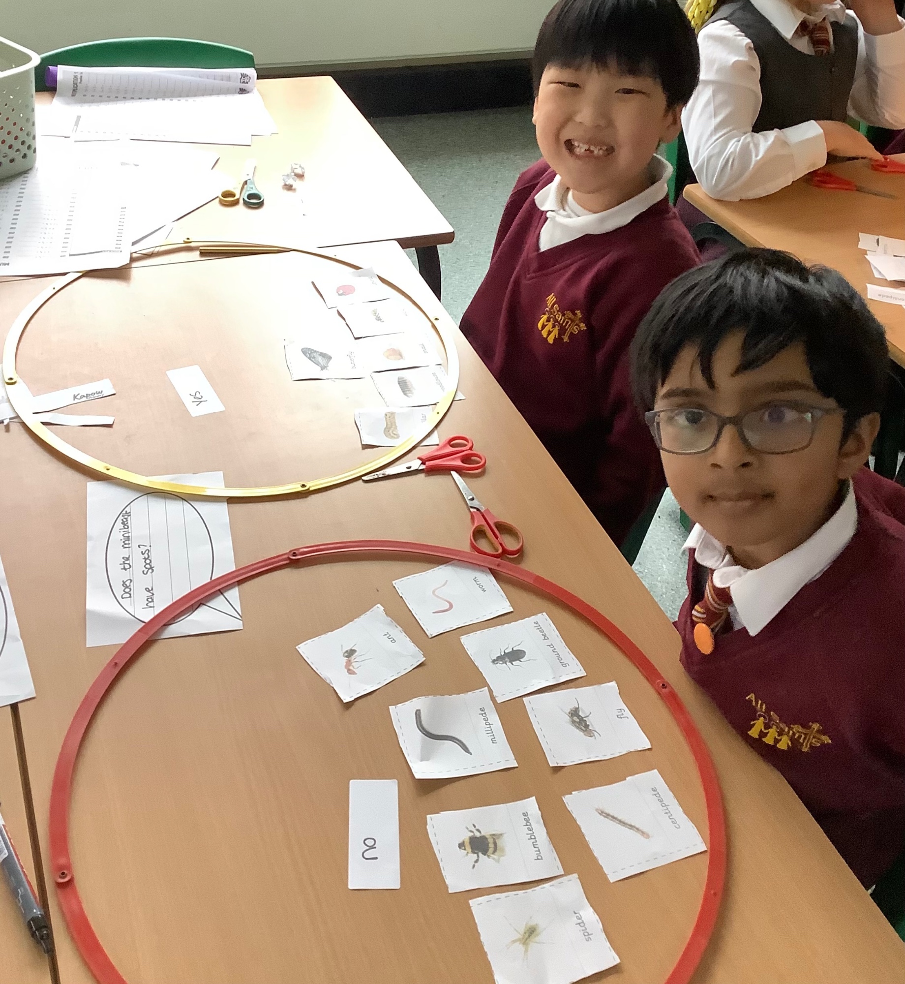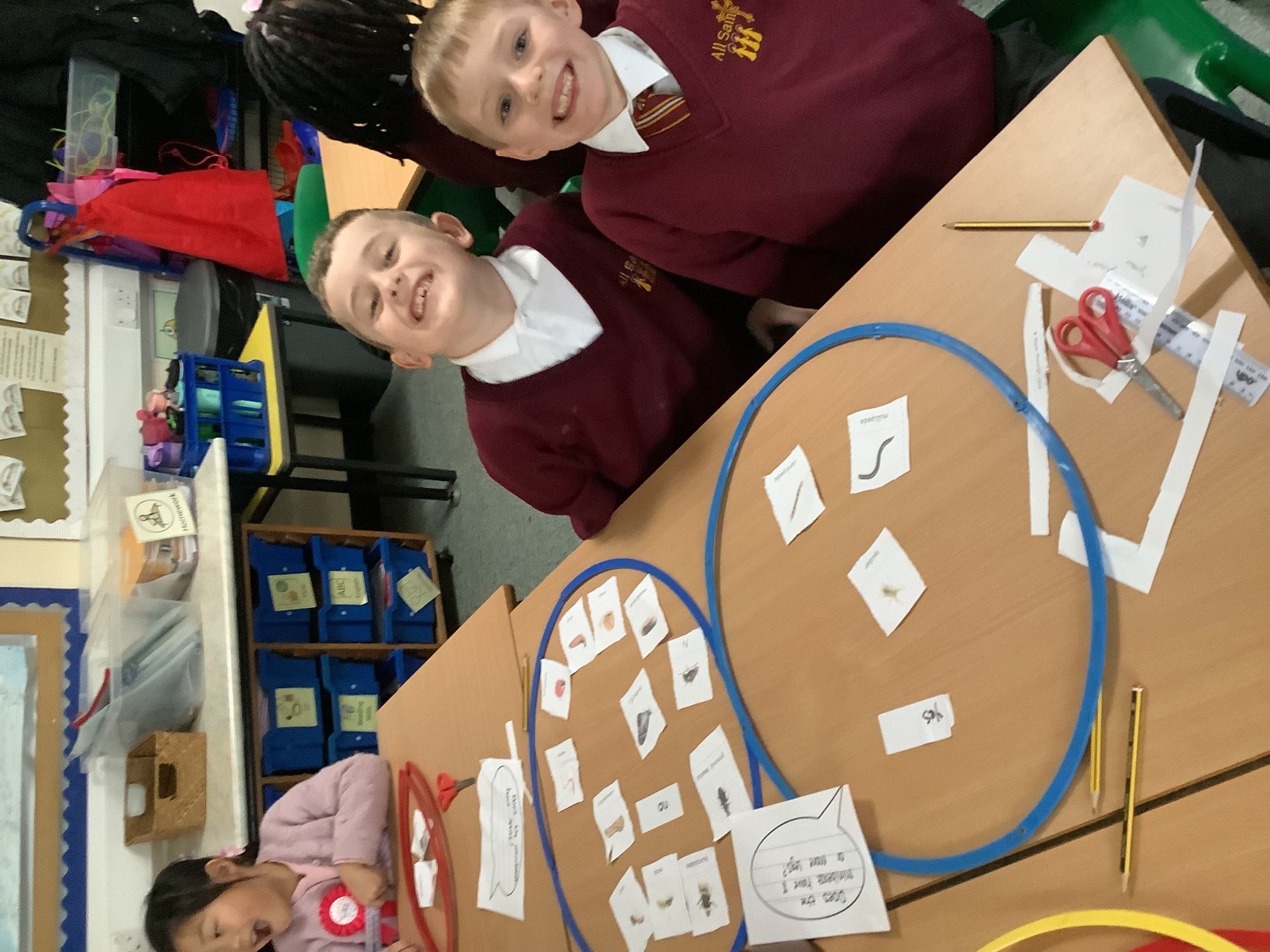The children explore the school grounds for minibeast habitats. They had to use observation and classifying skills to identify the different minibeasts they found.