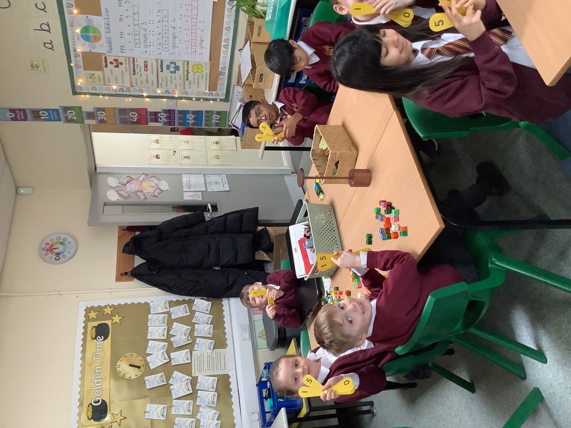 The children learnt about the 5 times-table and represented it using a variety of concrete resources. The children quizzed their partner on 5 times-table facts.