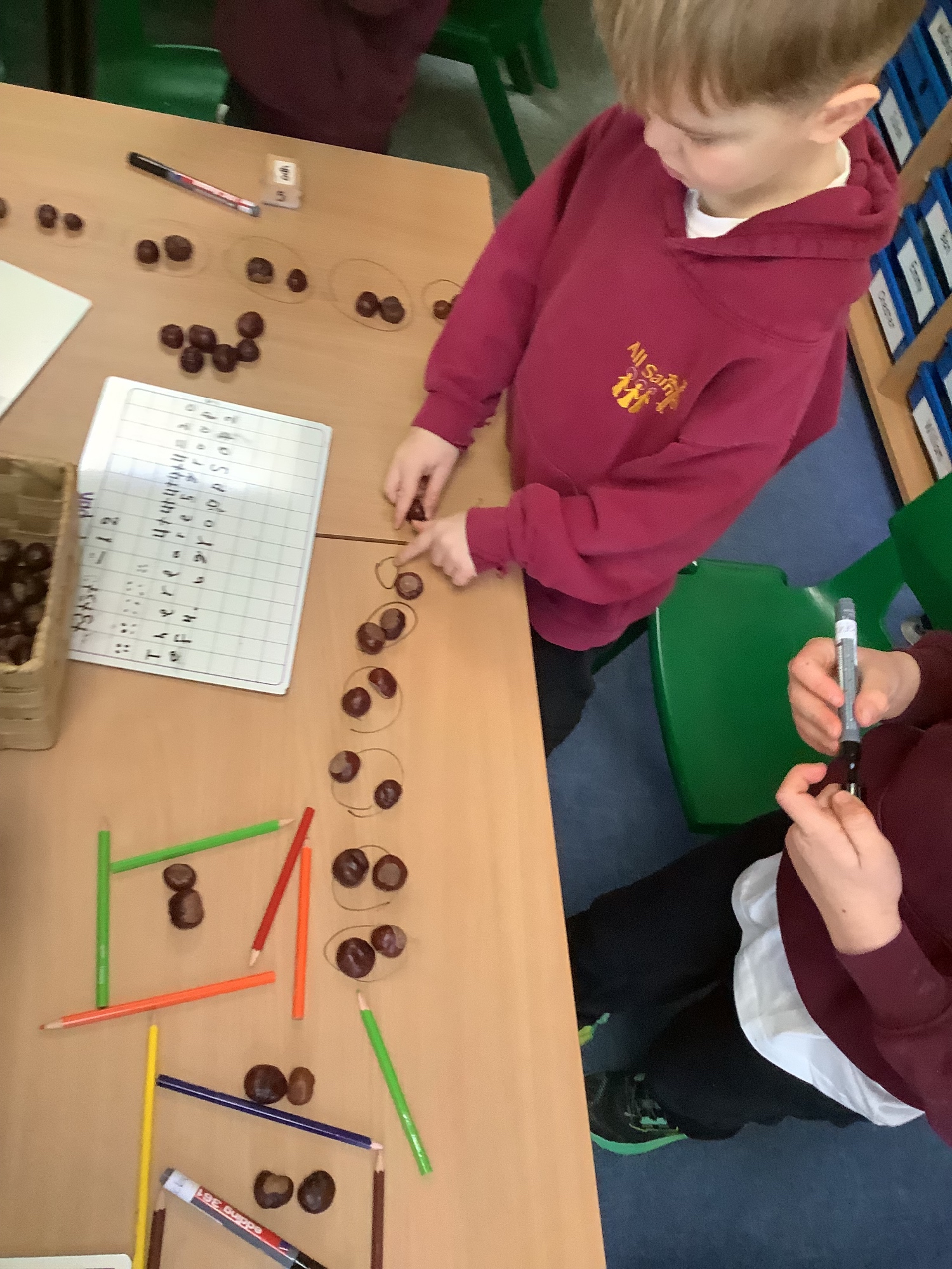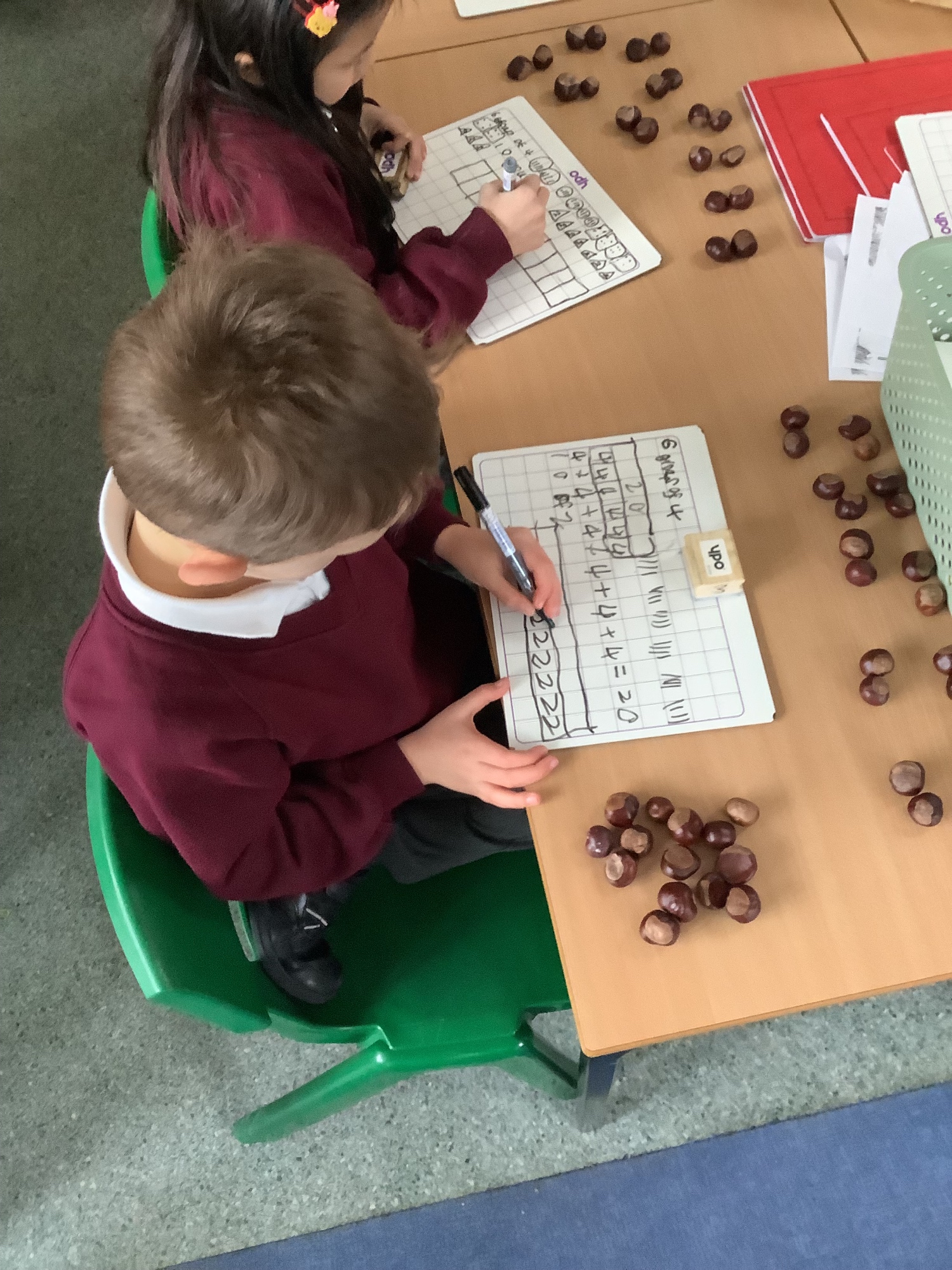 The children have been learning about repeated addition in maths and how this links to multiplication. They explored how adding the same number again and again can be written more efficiently as a multiplication sentence. Practical resources such as counters, cubes, and conkers were used to support understanding and help the children visualise equal groups. Throughout the lessons, the children demonstrated strong engagement and used a wide range of correct mathematical language, including terms such as groups of, altogether, times and equals, to explain their thinking clearly and confidently.