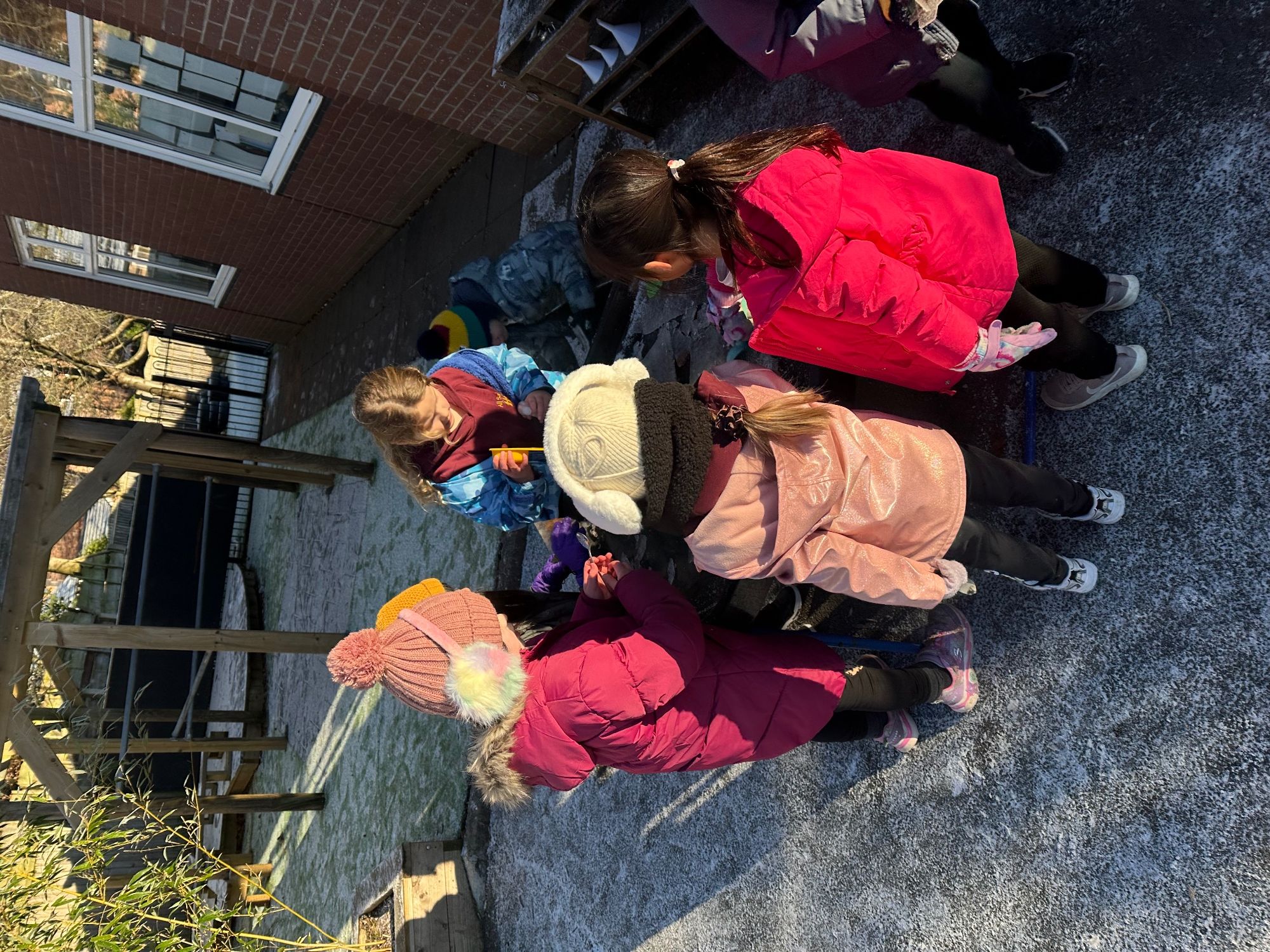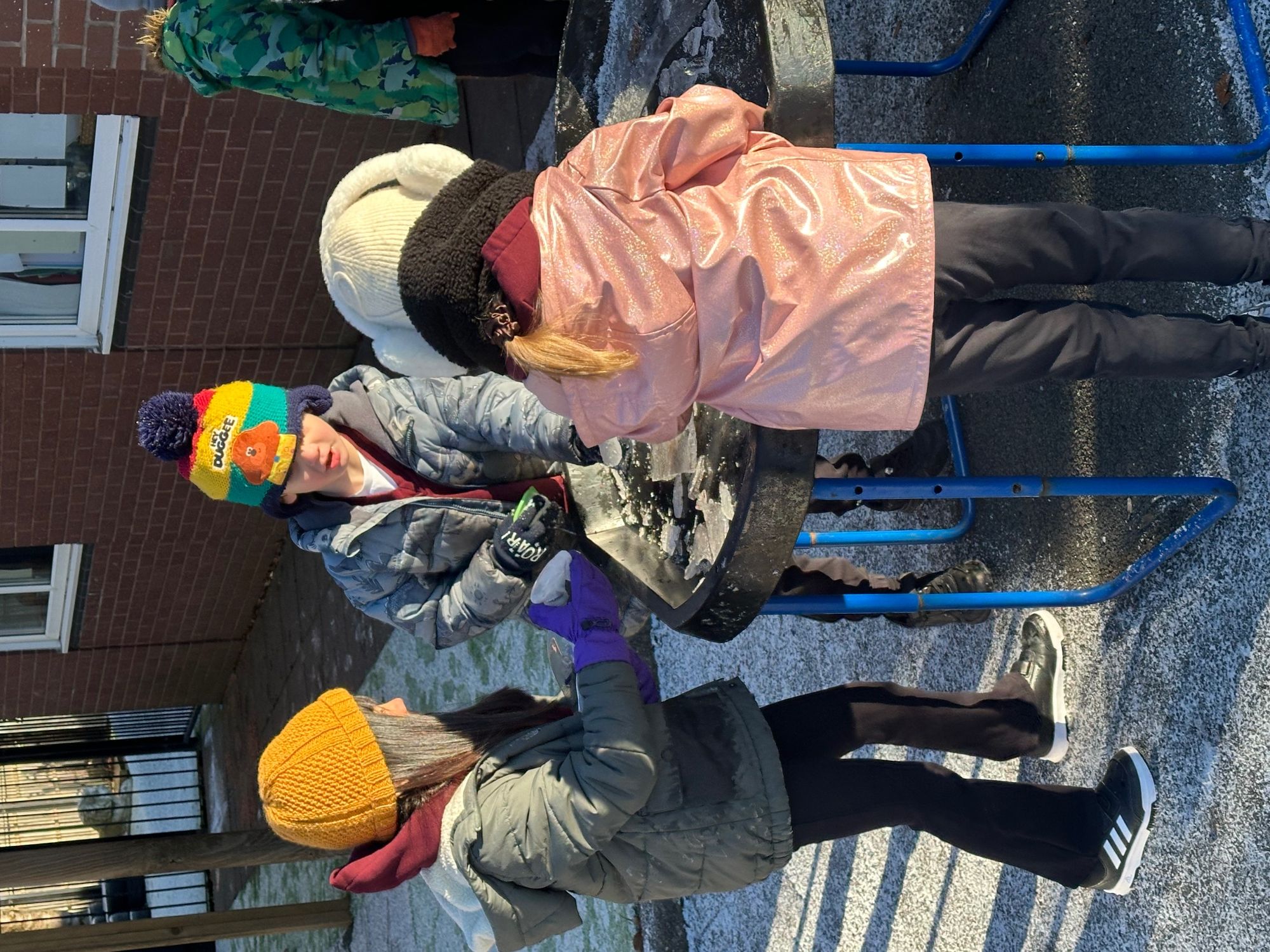 The children had a wonderful time exploring the wintery outdoors, delighting in the soft, sparkling snow. Our mud kitchen was quickly transformed into a “snow kitchen,” sparking imaginative play as they mixed, scooped, and created snowy concoctions. Laughter filled the air as they experimented and played together, enjoying the simple magic of snow and the endless possibilities for creative fun.