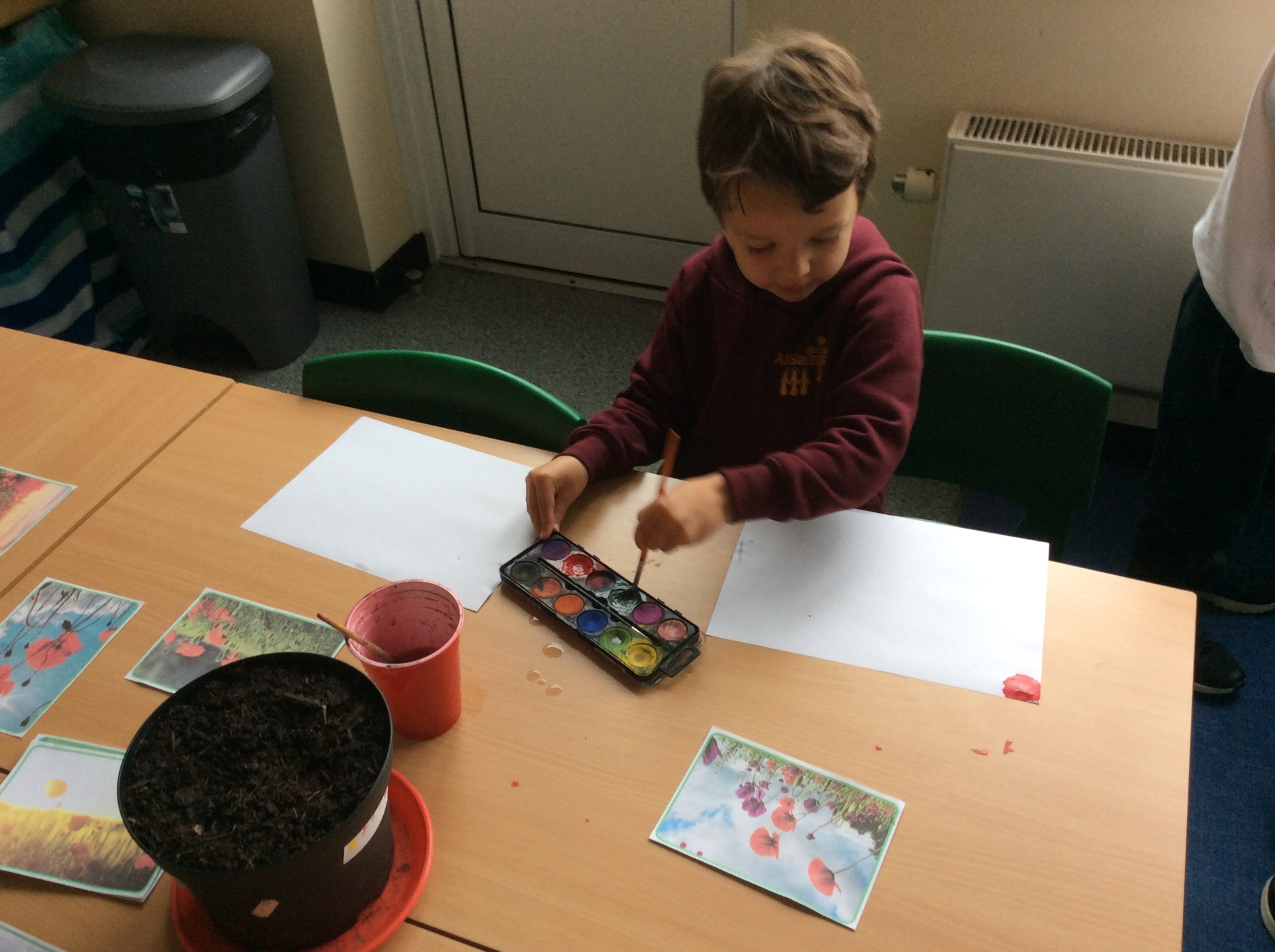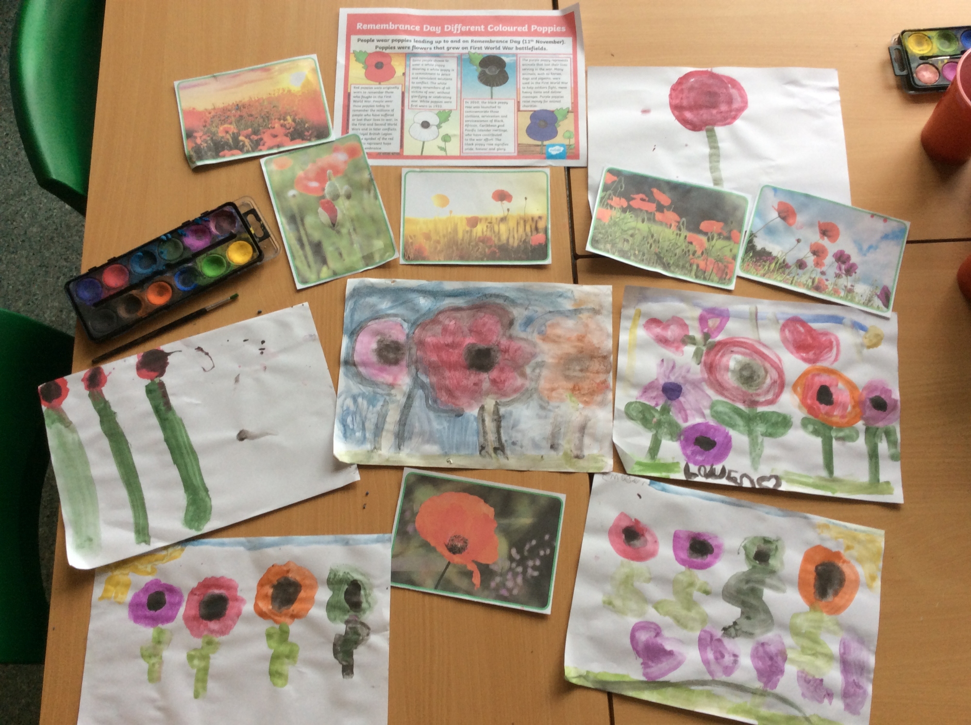 We held a two-minute silence to remember those we have lost in the war. We enjoyed using water colours to paint beautiful pictures of poppies.