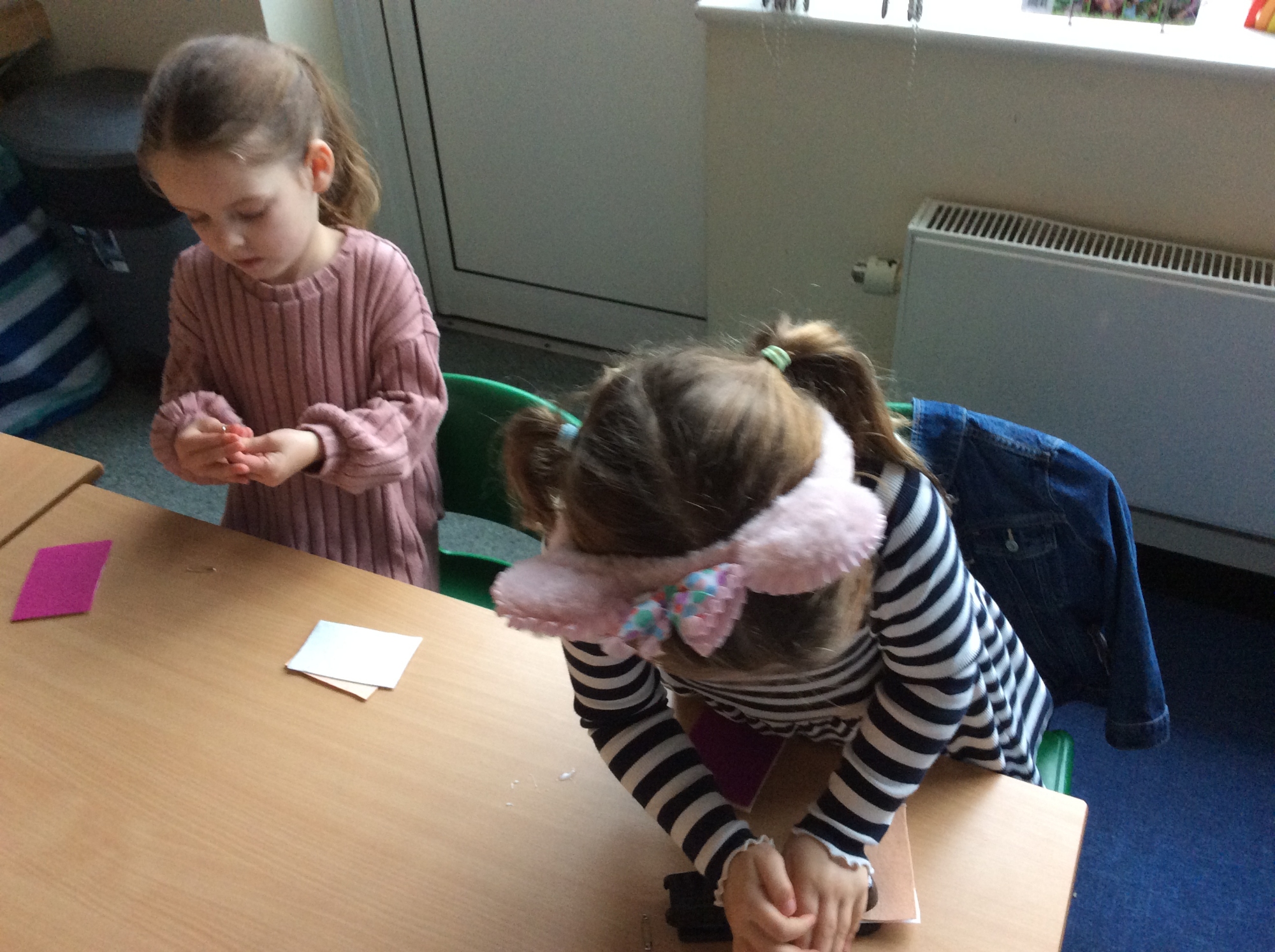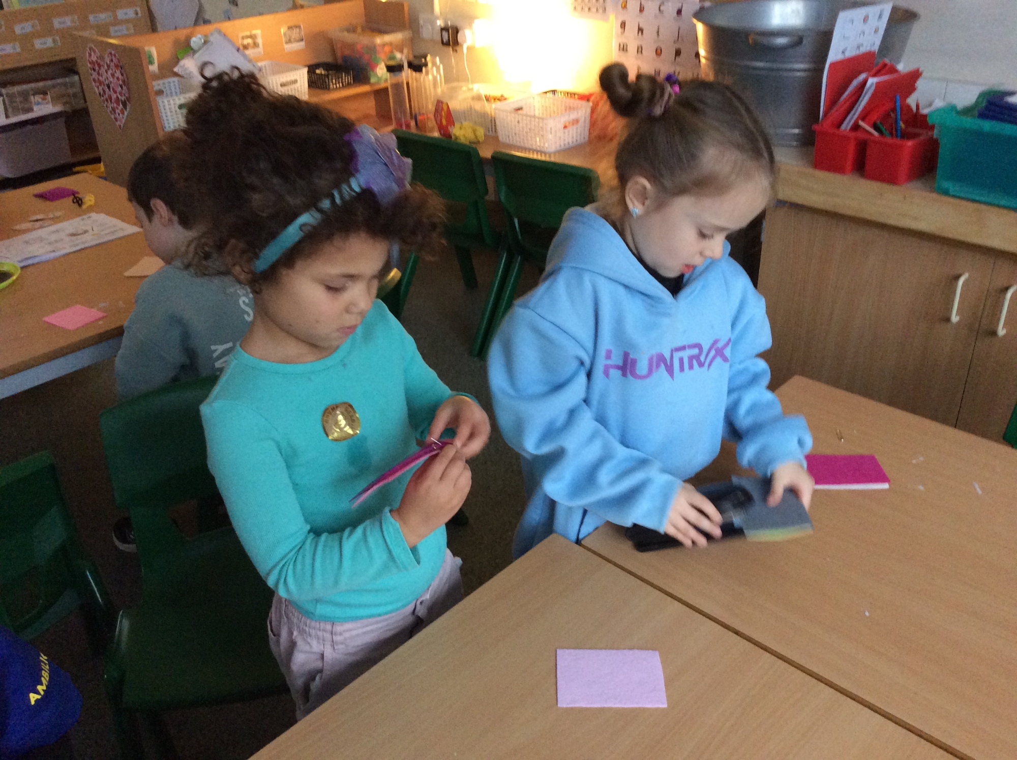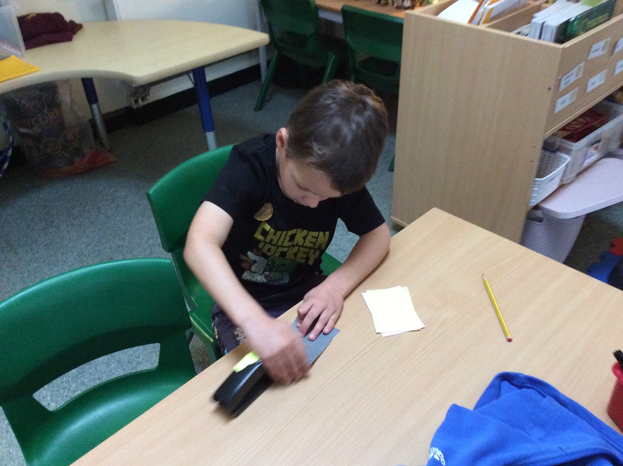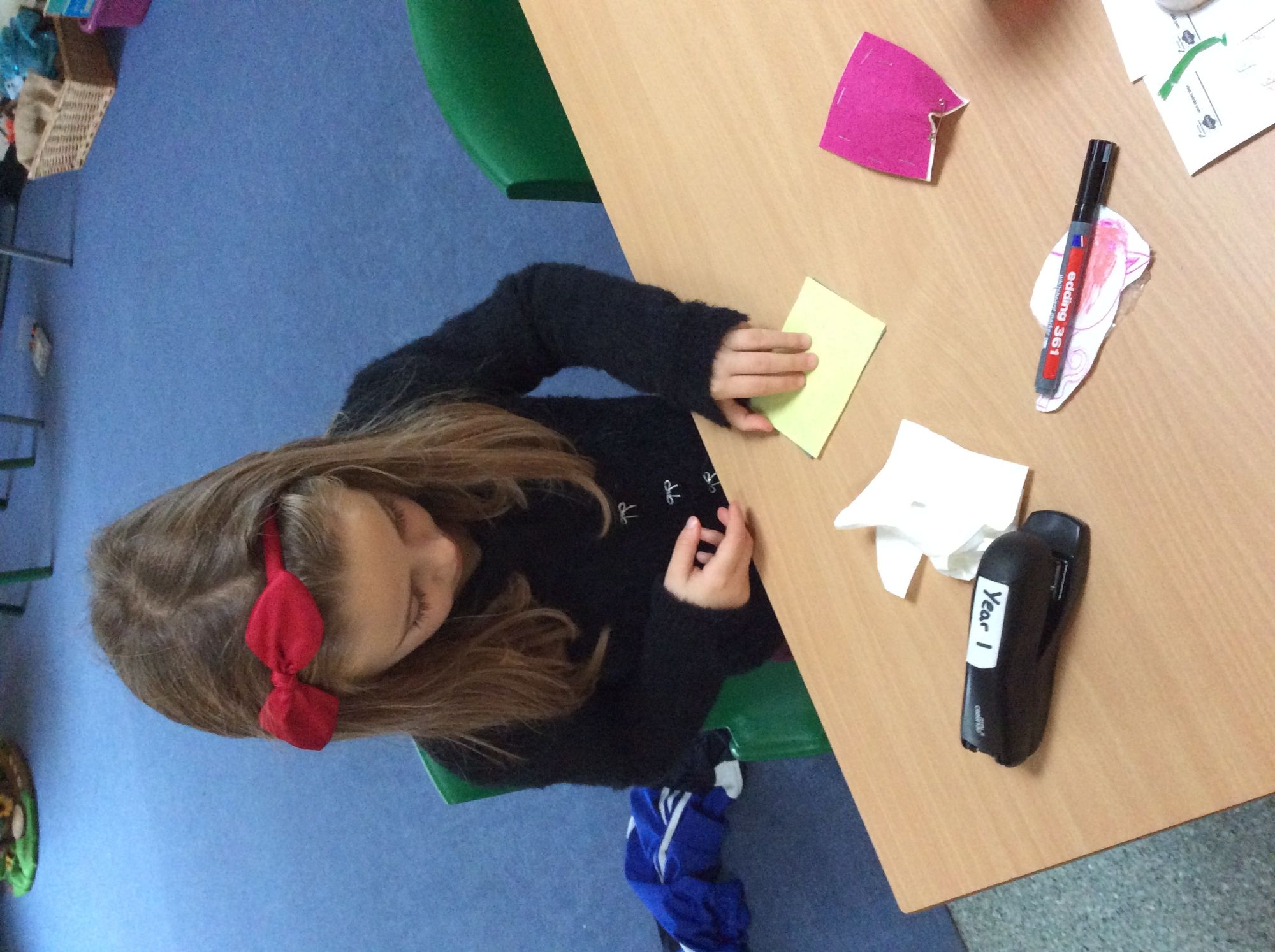 We have been learning about different methods to attach materials together. We tried stapling, glueing and using safety pins. We evaluated our findings and voted that safety pins and staples were the best.