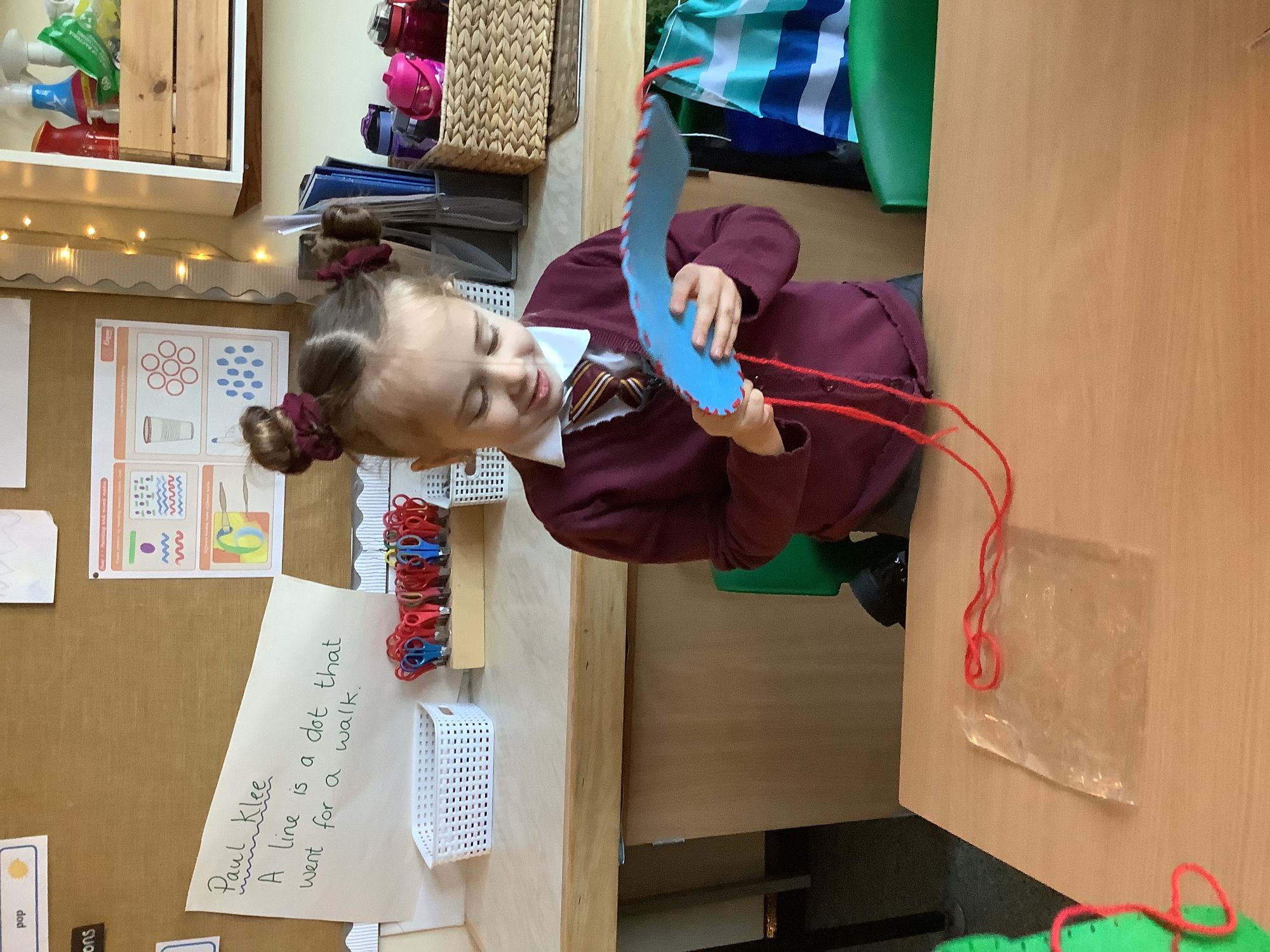 We have been looking at different types of lines in Art. We learnt about an artist, Paul Klee who listens to music and when creating his artwork. Today the children listened to four very different pieces of music and created their own artwork using different types of lines and media. A lovely calm afternoon with everyone focused and enjoying their learning whilst listening to music.