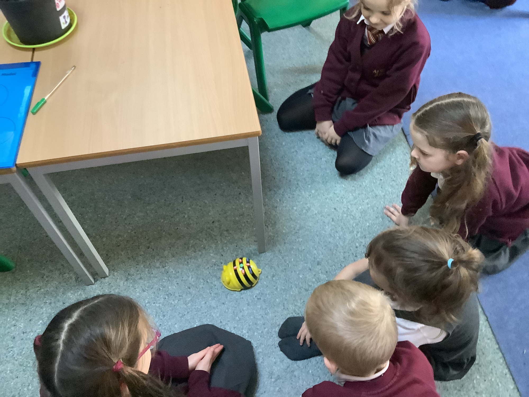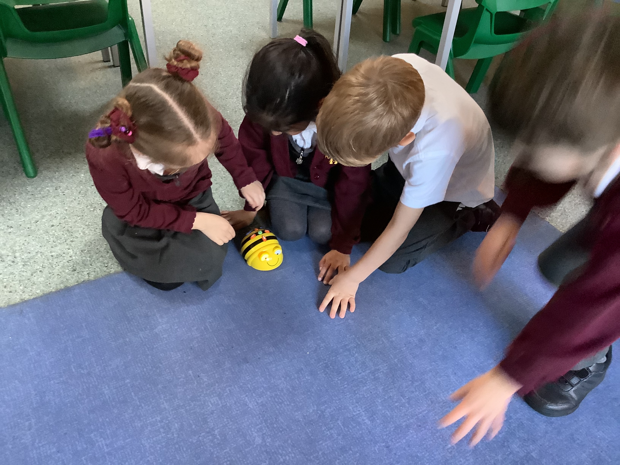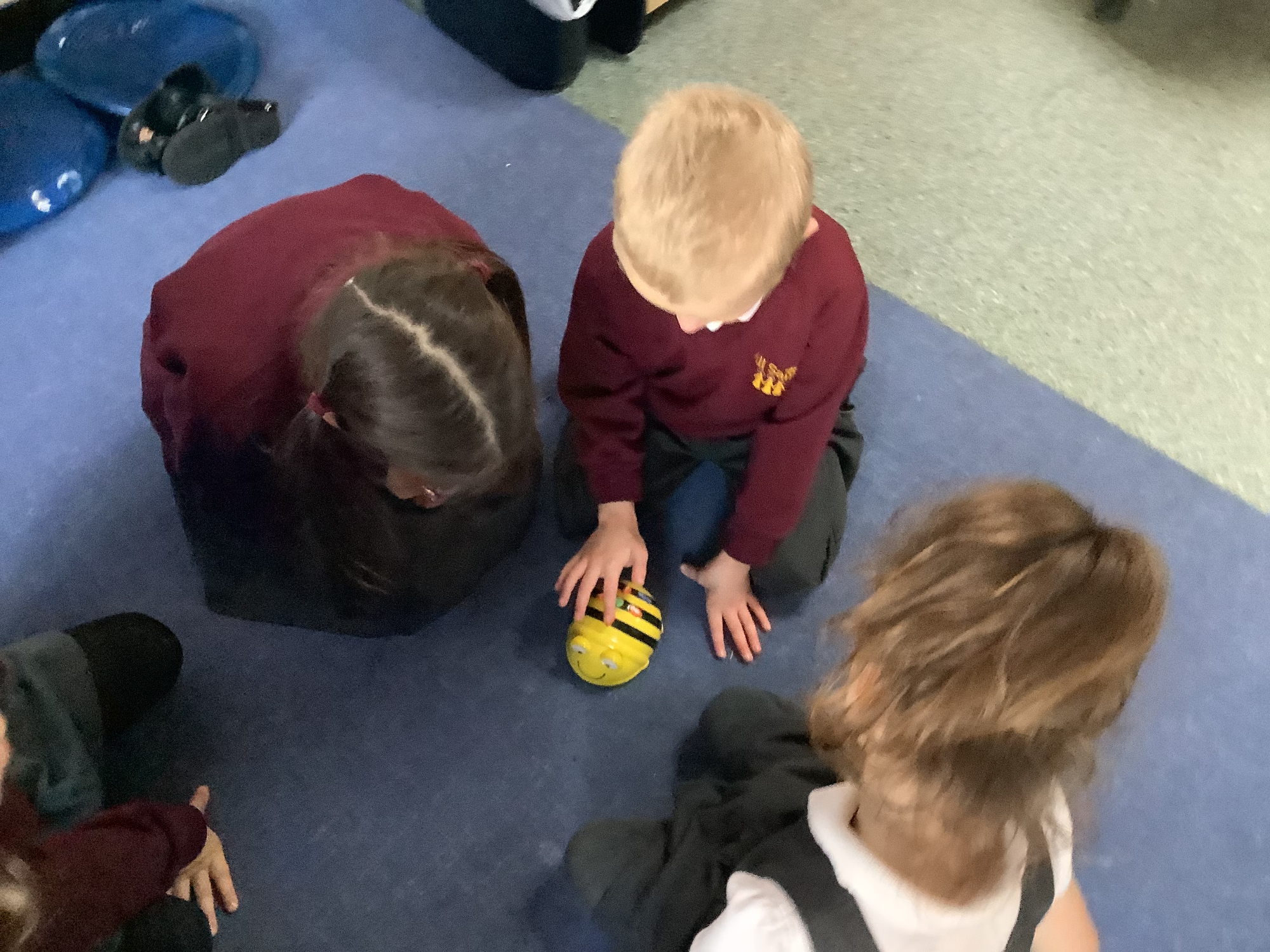 We learnt about Beebots, how they work, what directions they can move in, how we can programme them to follow a set of instructions, creating an algorithm. We followed different challenges and took turns with our friends.