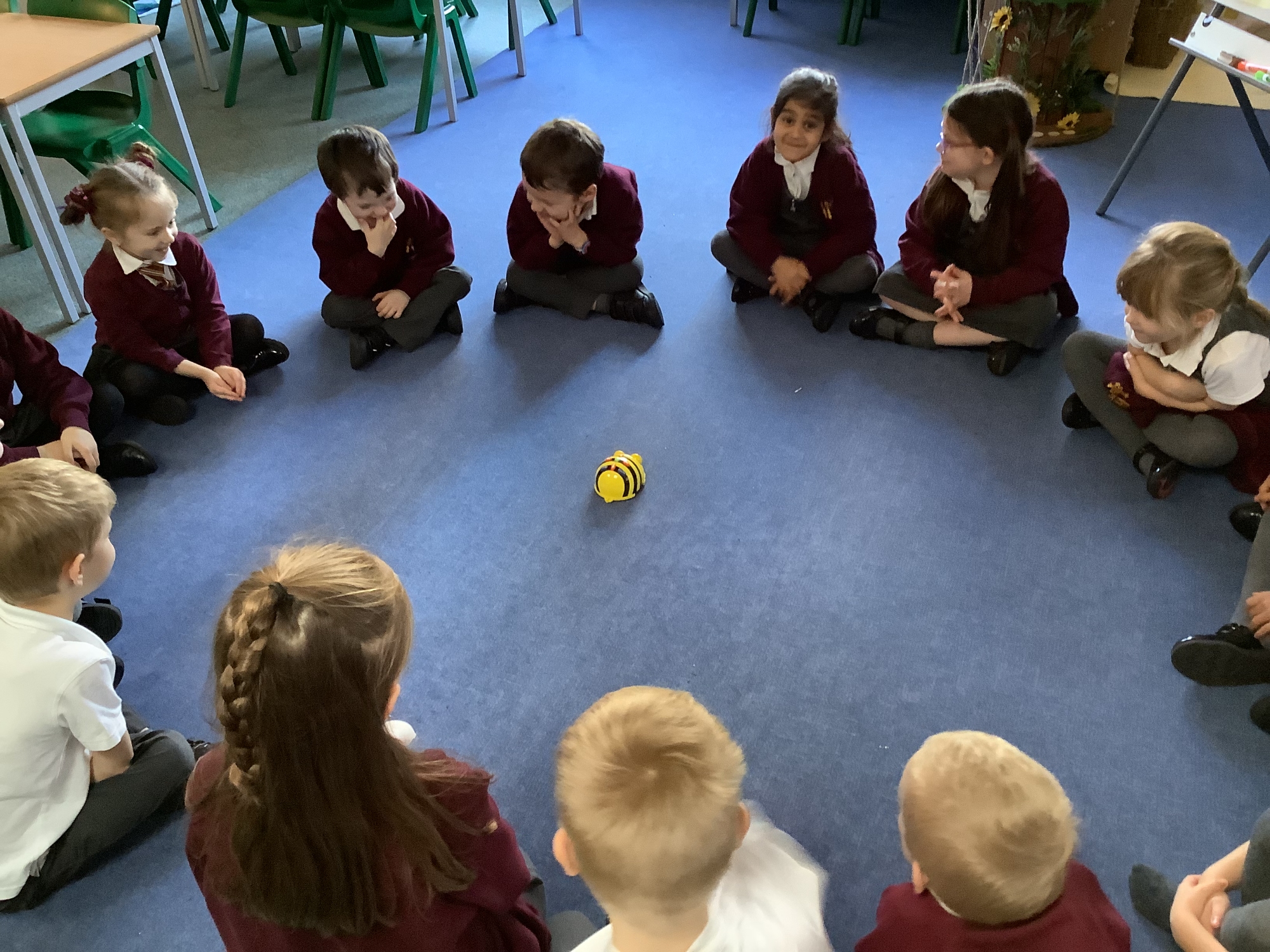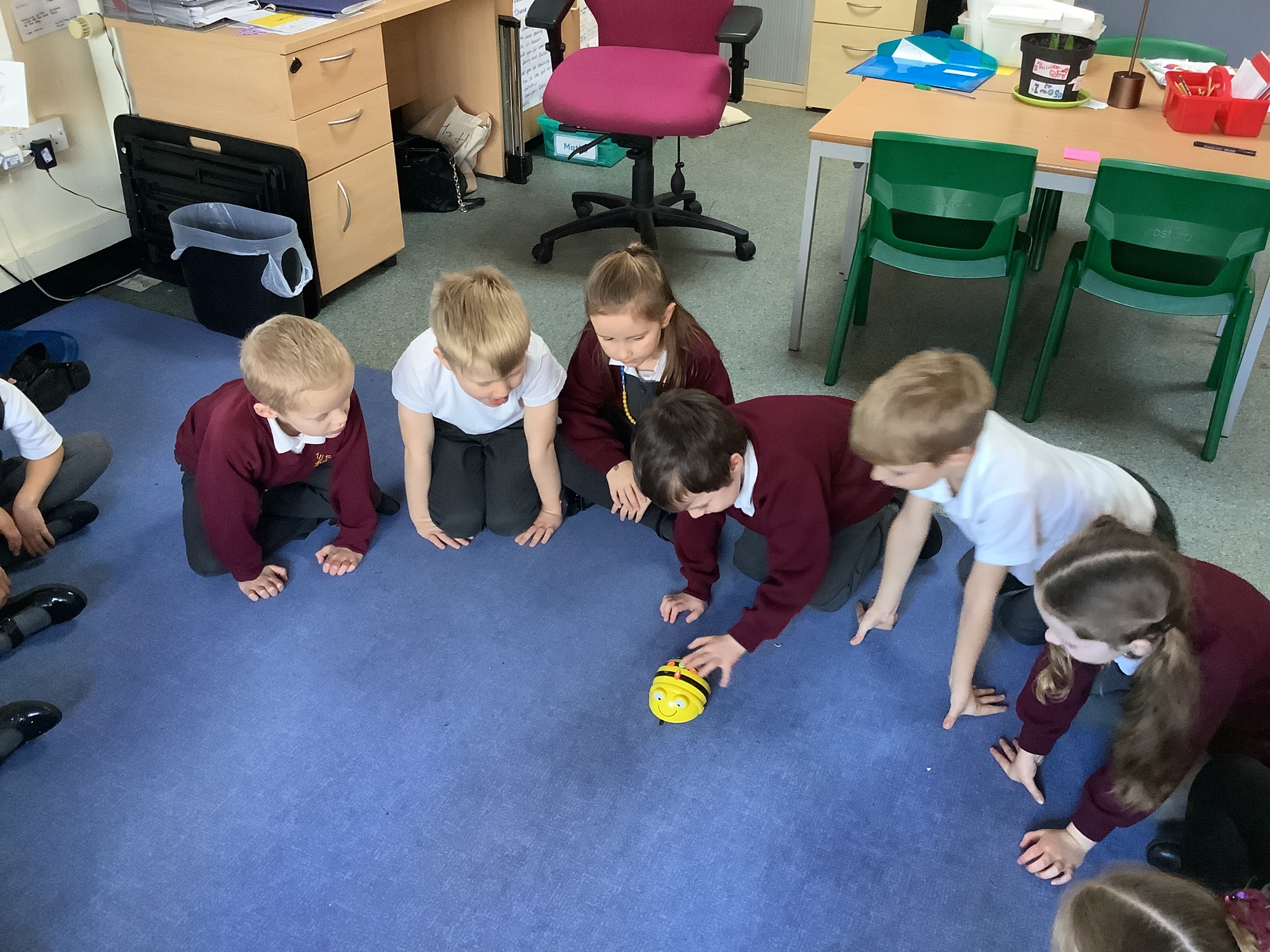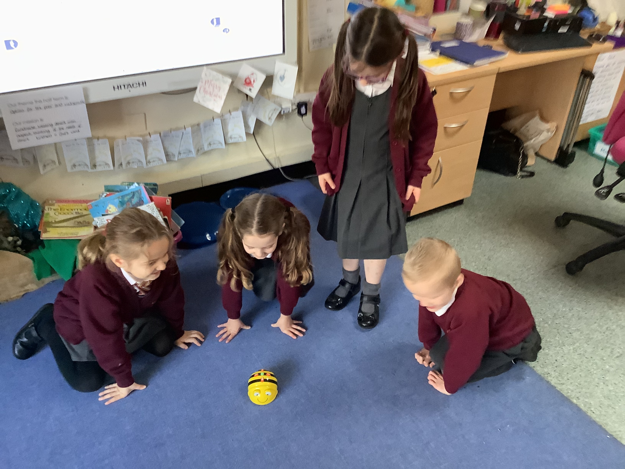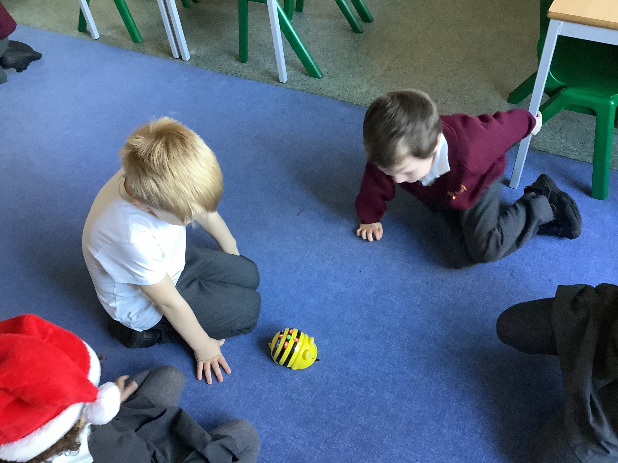 We learnt about Beebots, how they work, what directions they can move in, how we can programme them to follow a set of instructions, creating an algorithm. We followed different challenges and took turns with our friends.