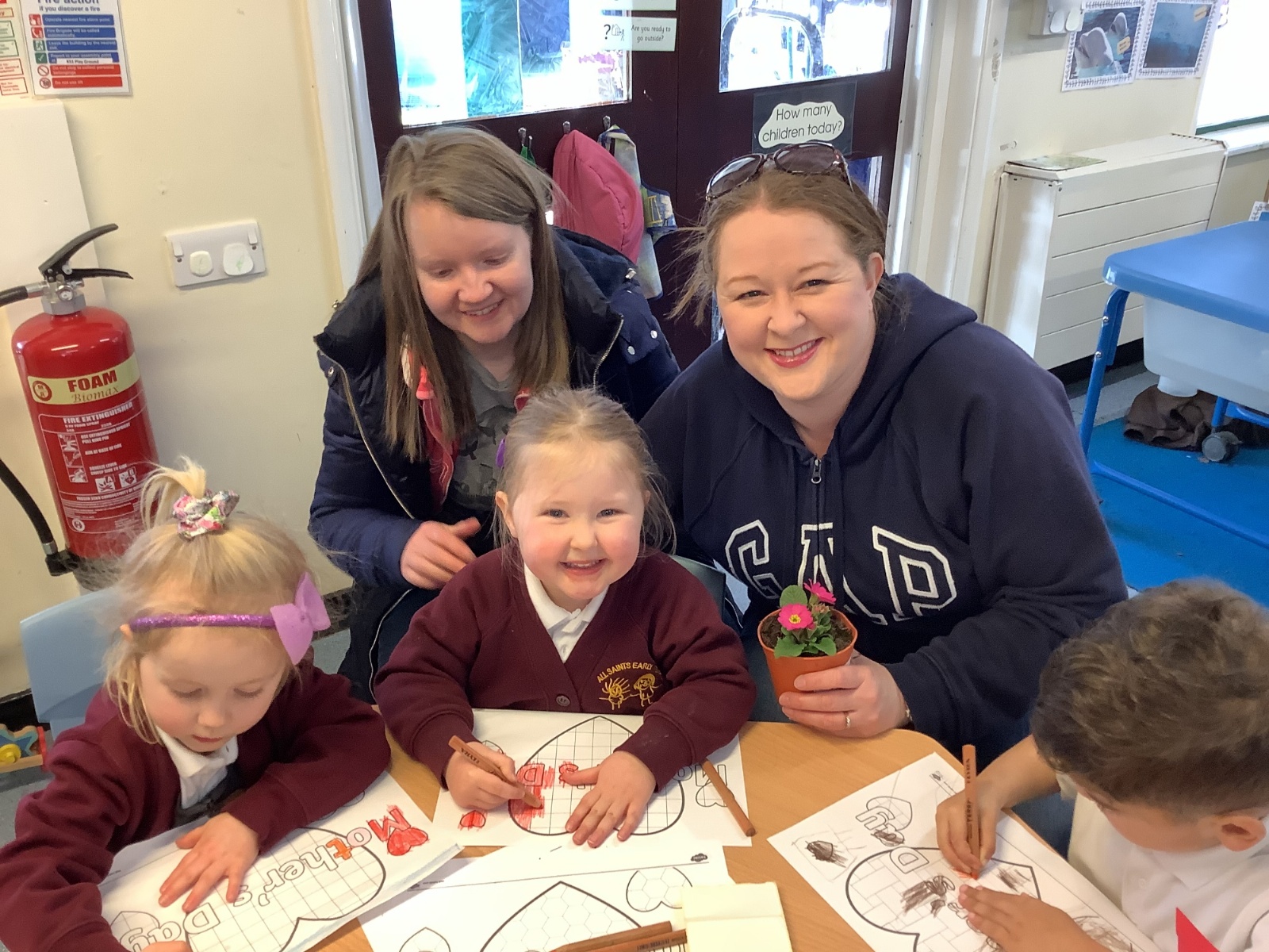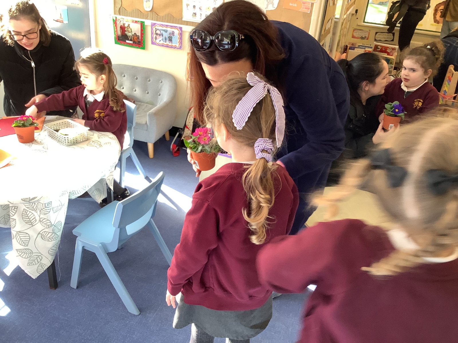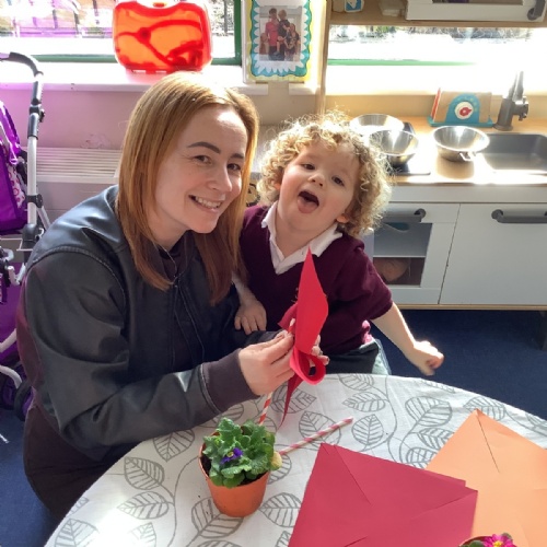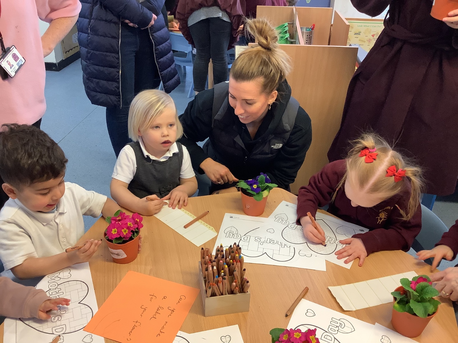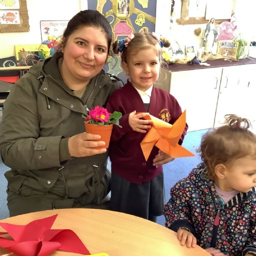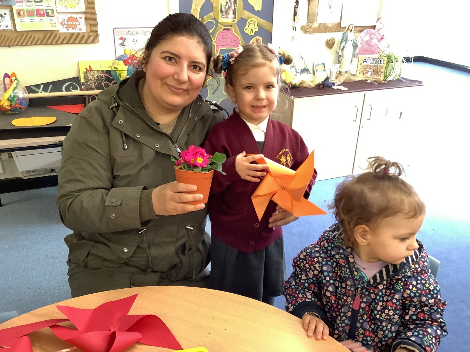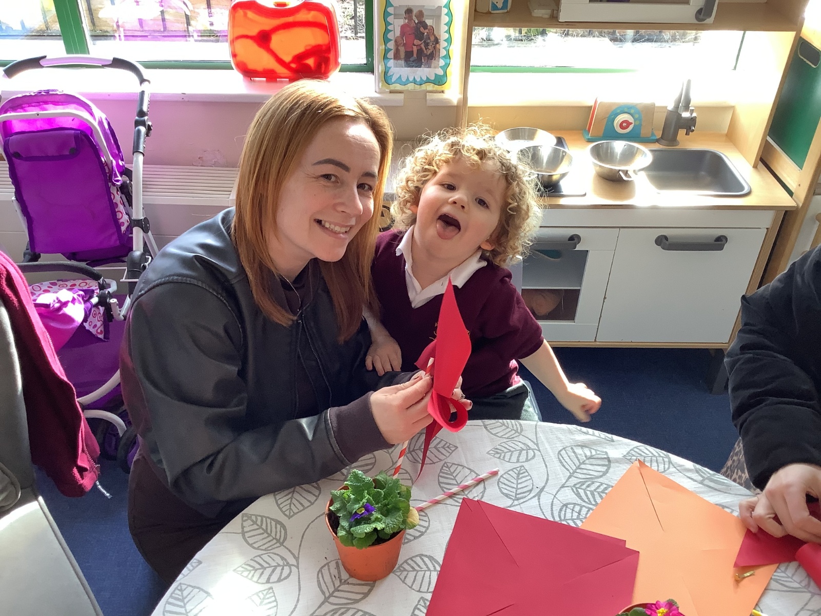The nursery children were very excited to welcome their mummies into nursery for our Mother’s Day afternoon. We sang the songs “My God is So Big” and “Love Is Something If You Give It Away” together. The children had painted portraits of their mummies which were displayed on the window, and the mummies enjoyed trying to guess which one was theirs! The children also gave their mummies a flower they had planted themselves, and everyone enjoyed making a colourful windmill together. It was a lovely afternoon celebrating our mummies. 🌸