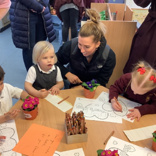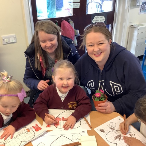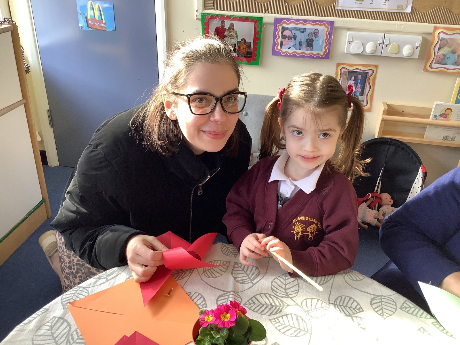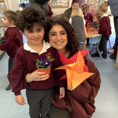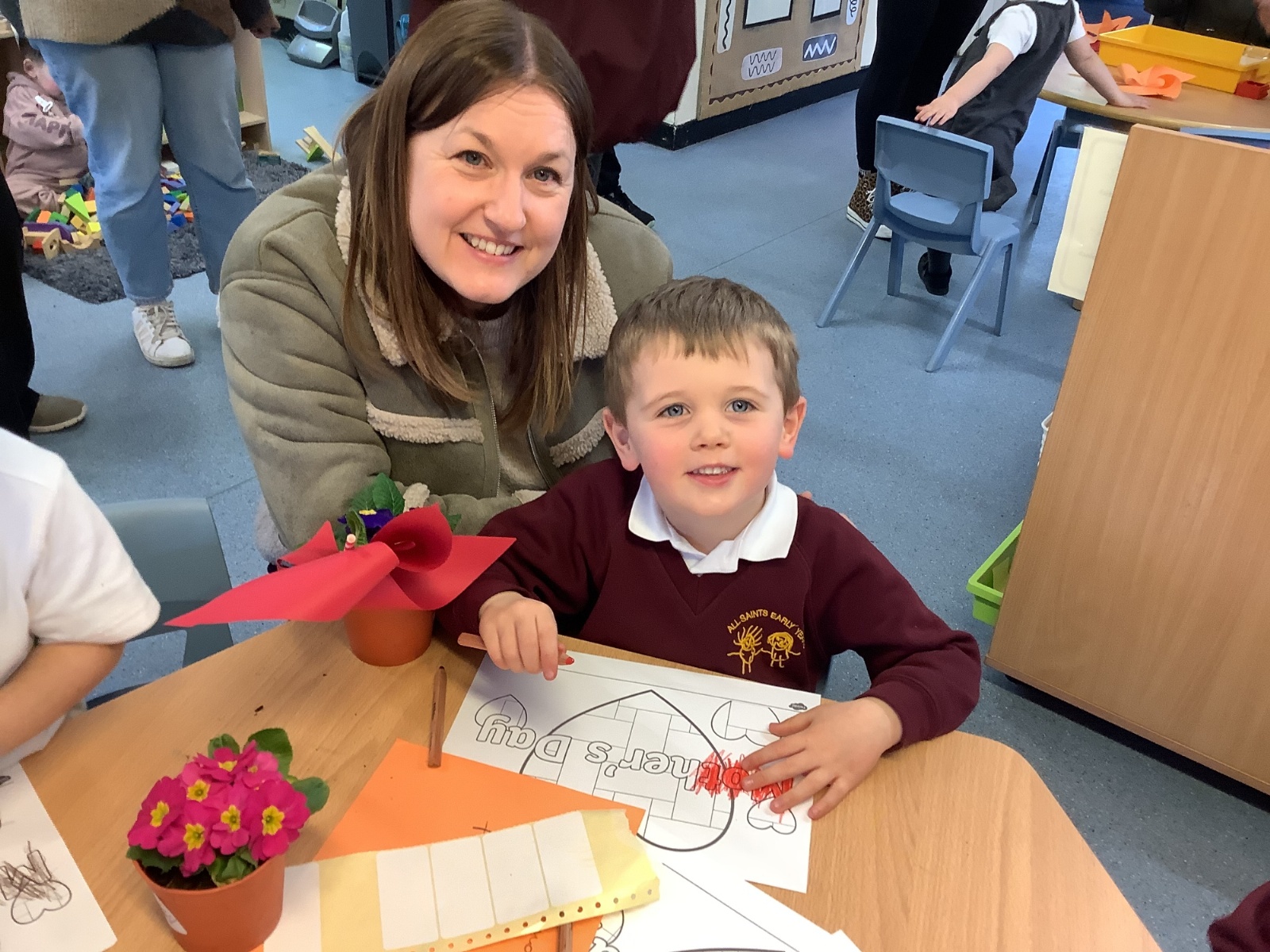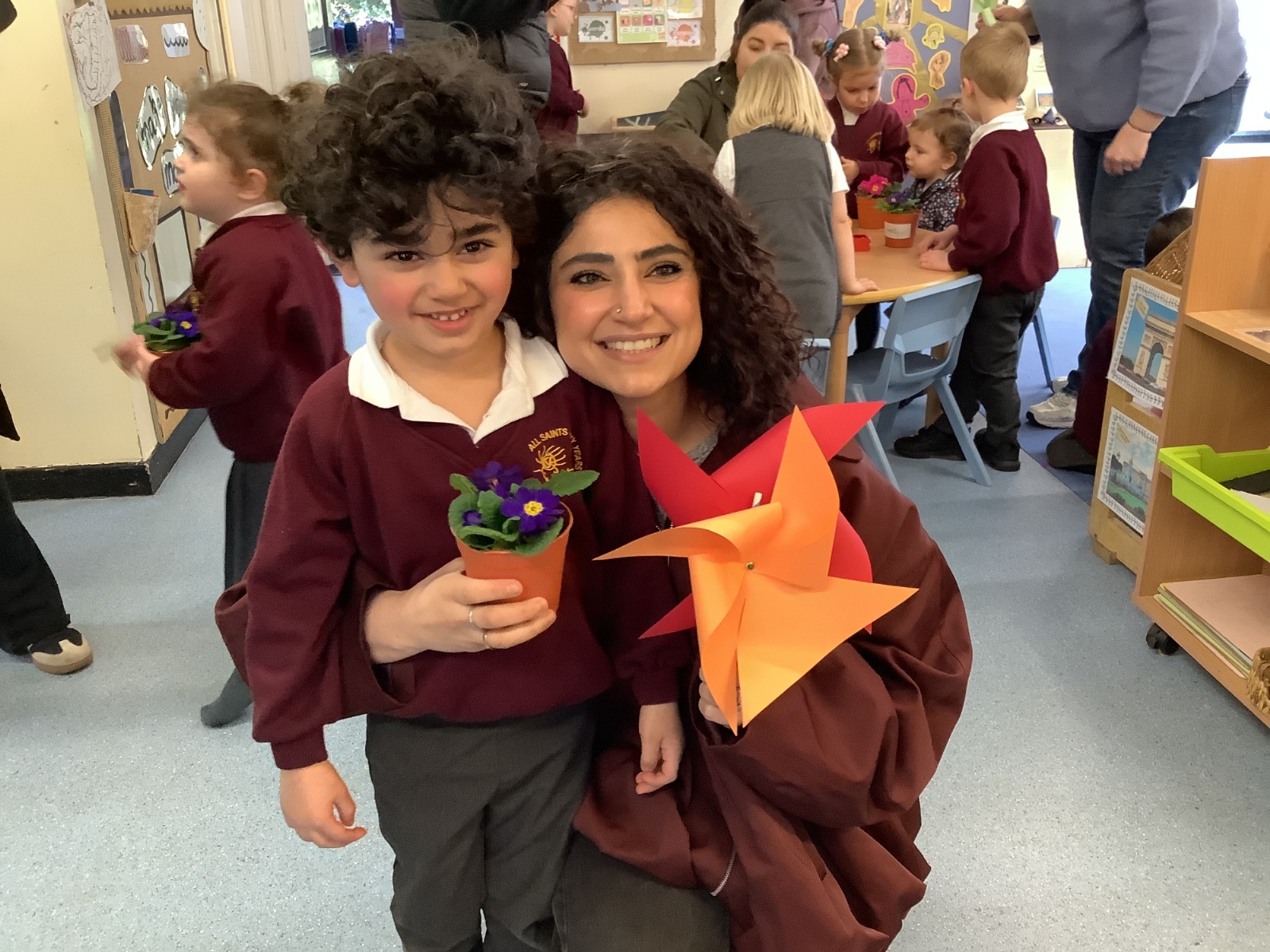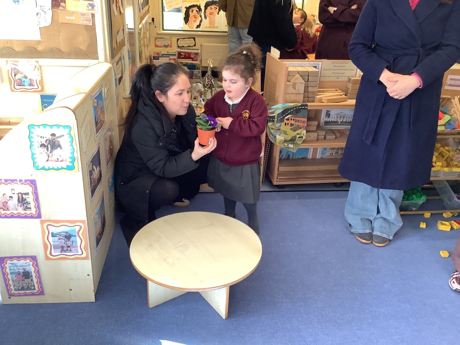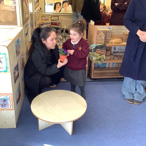 The nursery children were very excited to welcome their mummies into nursery for our Mother’s Day afternoon. We sang the songs “My God is So Big” and “Love Is Something If You Give It Away” together. The children had painted portraits of their mummies which were displayed on the window, and the mummies enjoyed trying to guess which one was theirs! The children also gave their mummies a flower they had planted themselves, and everyone enjoyed making a colourful windmill together. It was a lovely afternoon celebrating our mummies. 🌸