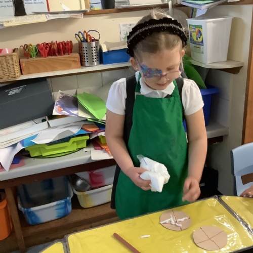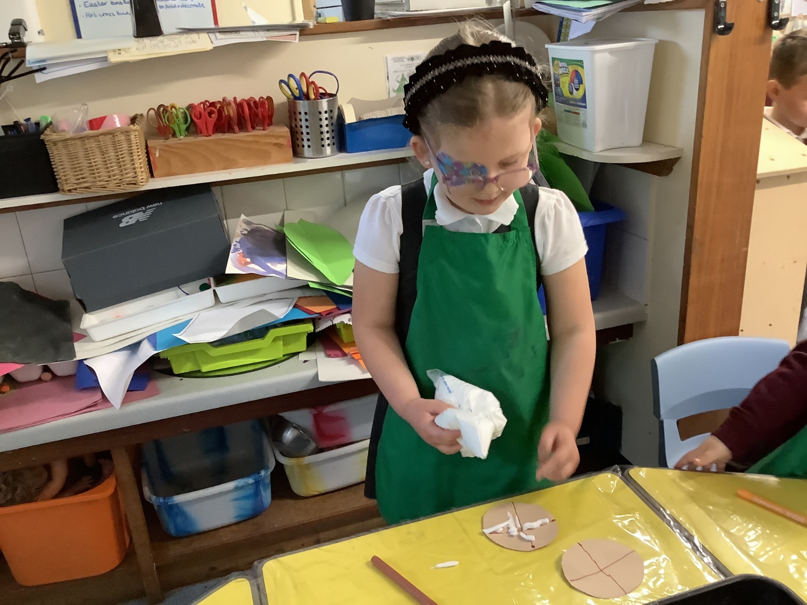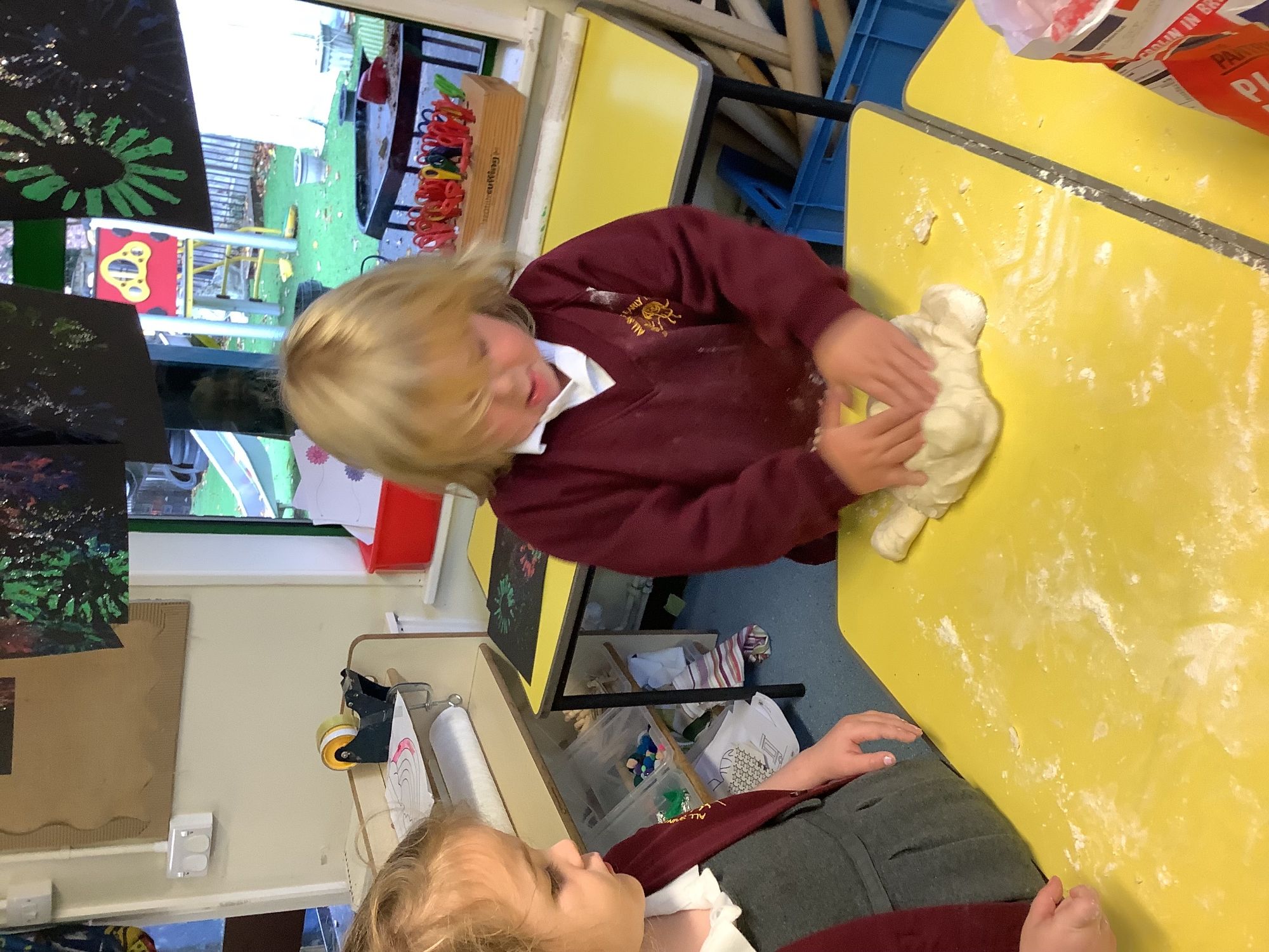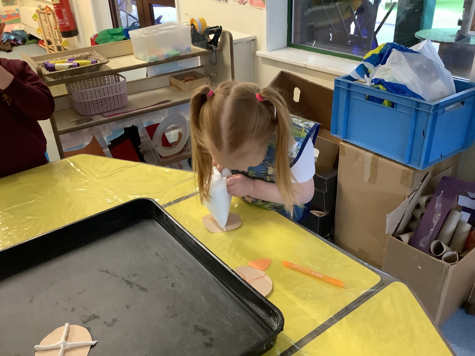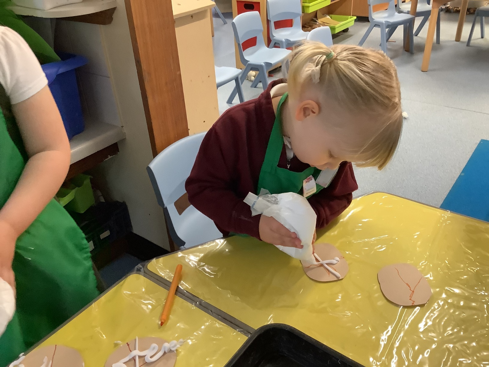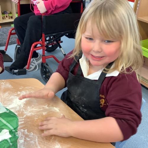 This week in Nursery we had great fun making our own hot cross buns! The children enjoyed helping to mix the ingredients, shape the dough and add the special cross on the top. As we baked, we talked about why hot cross buns have a cross and how it reminds Christians of Jesus dying on the cross for us at Easter. The children were very excited to see their buns come out of the oven, and they loved tasting the delicious treats they had made together! We even had a practice at making crosses on paper using shaving foam, which the children loved exploring with their hands.