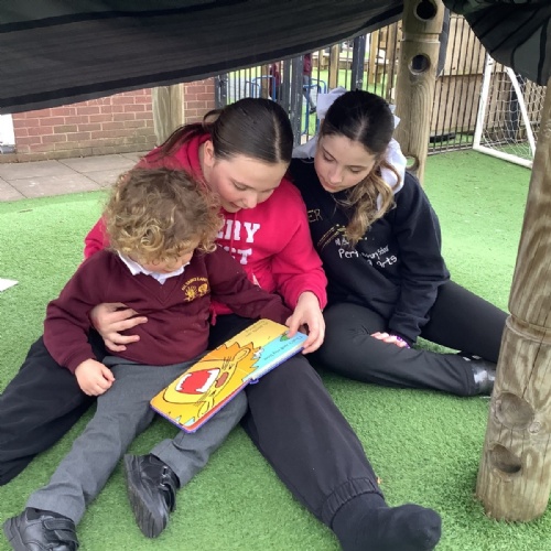 We love welcoming our Year 6 prefects into Nursery to spend time with us. They are always so kind, helpful and caring towards the younger children, making them feel supported and included. The children really enjoy these visits. Our prefects are always such fantastic role models, demonstrating kindness, patience, and responsibility in all they do.