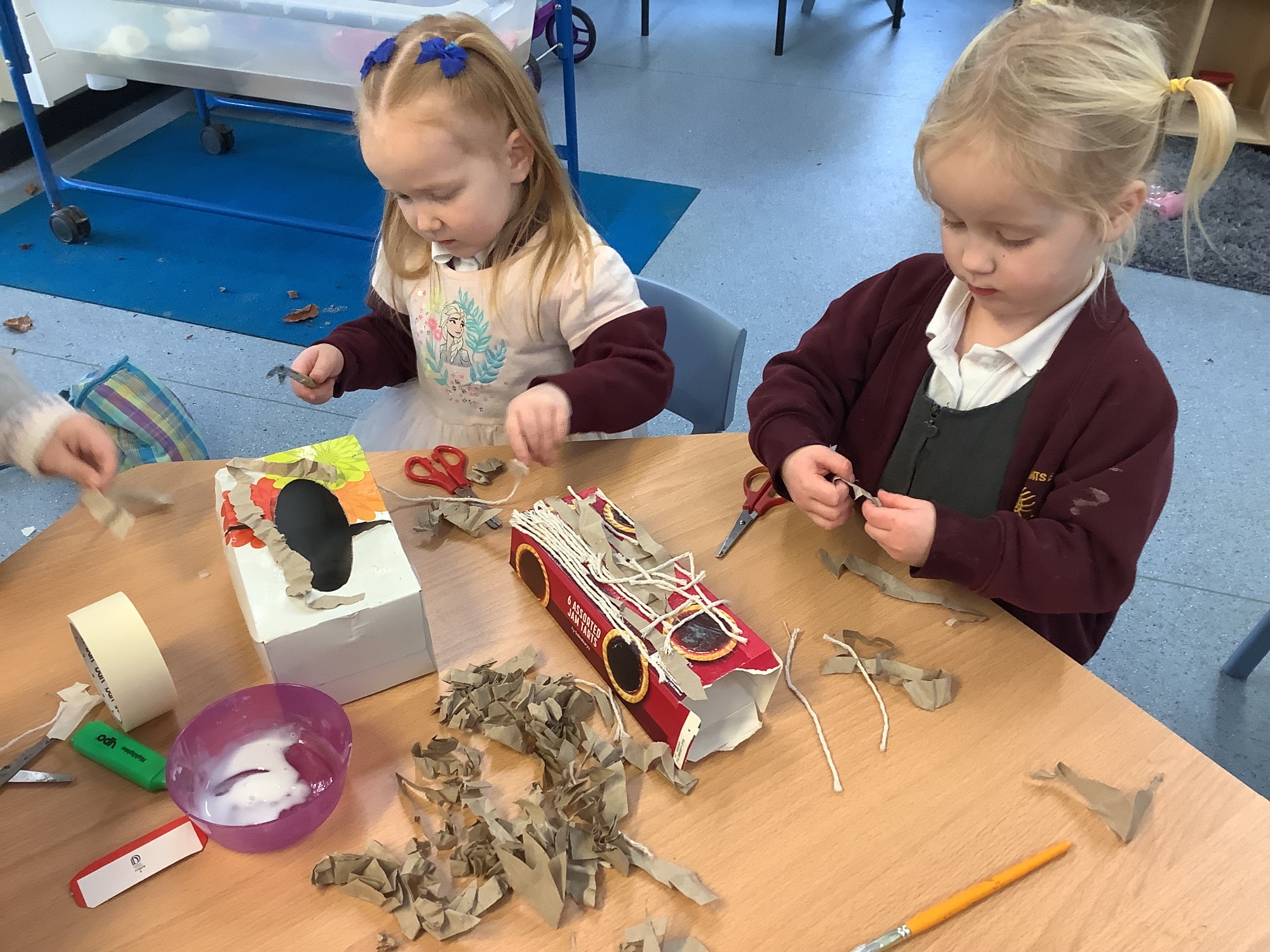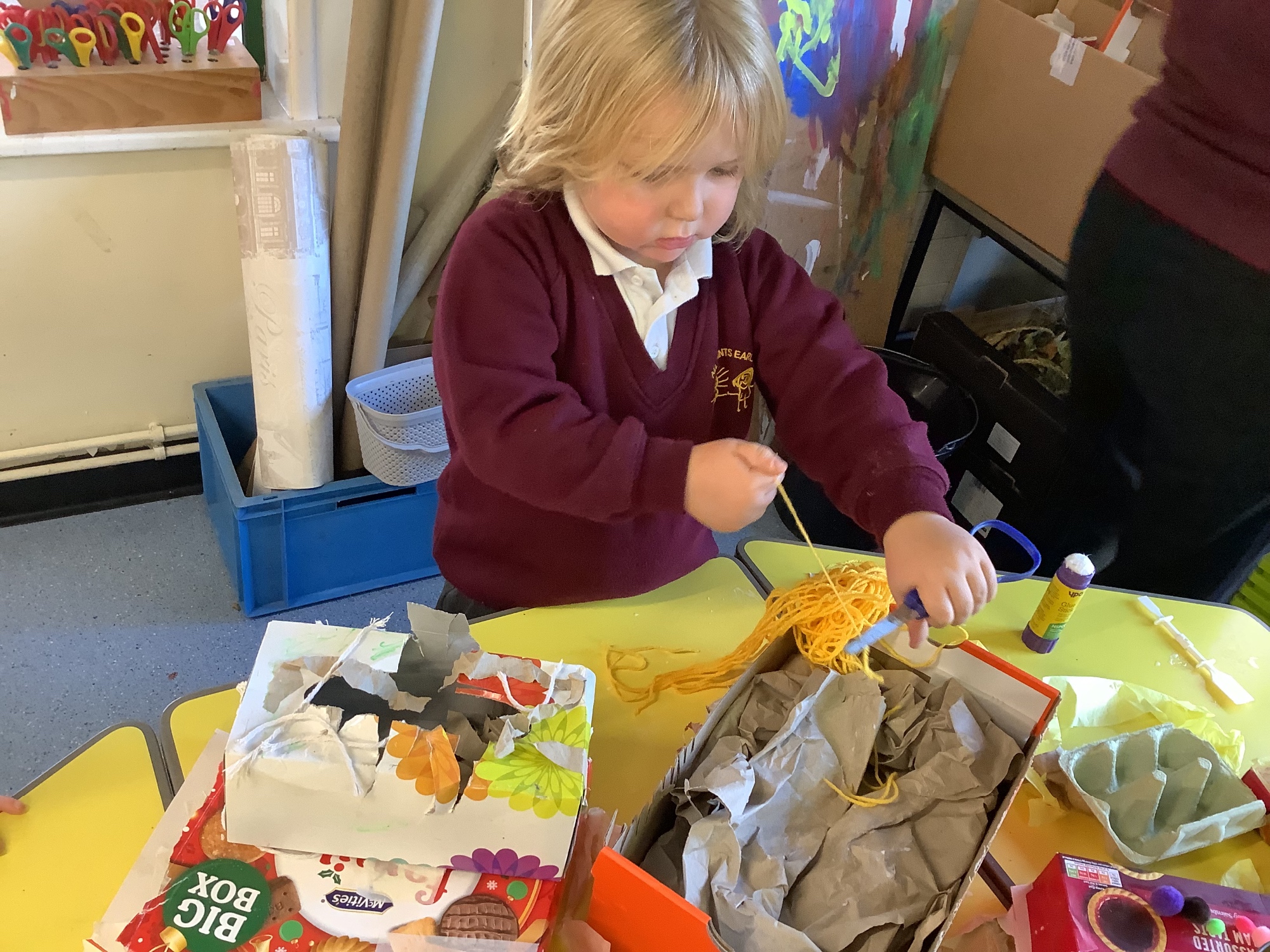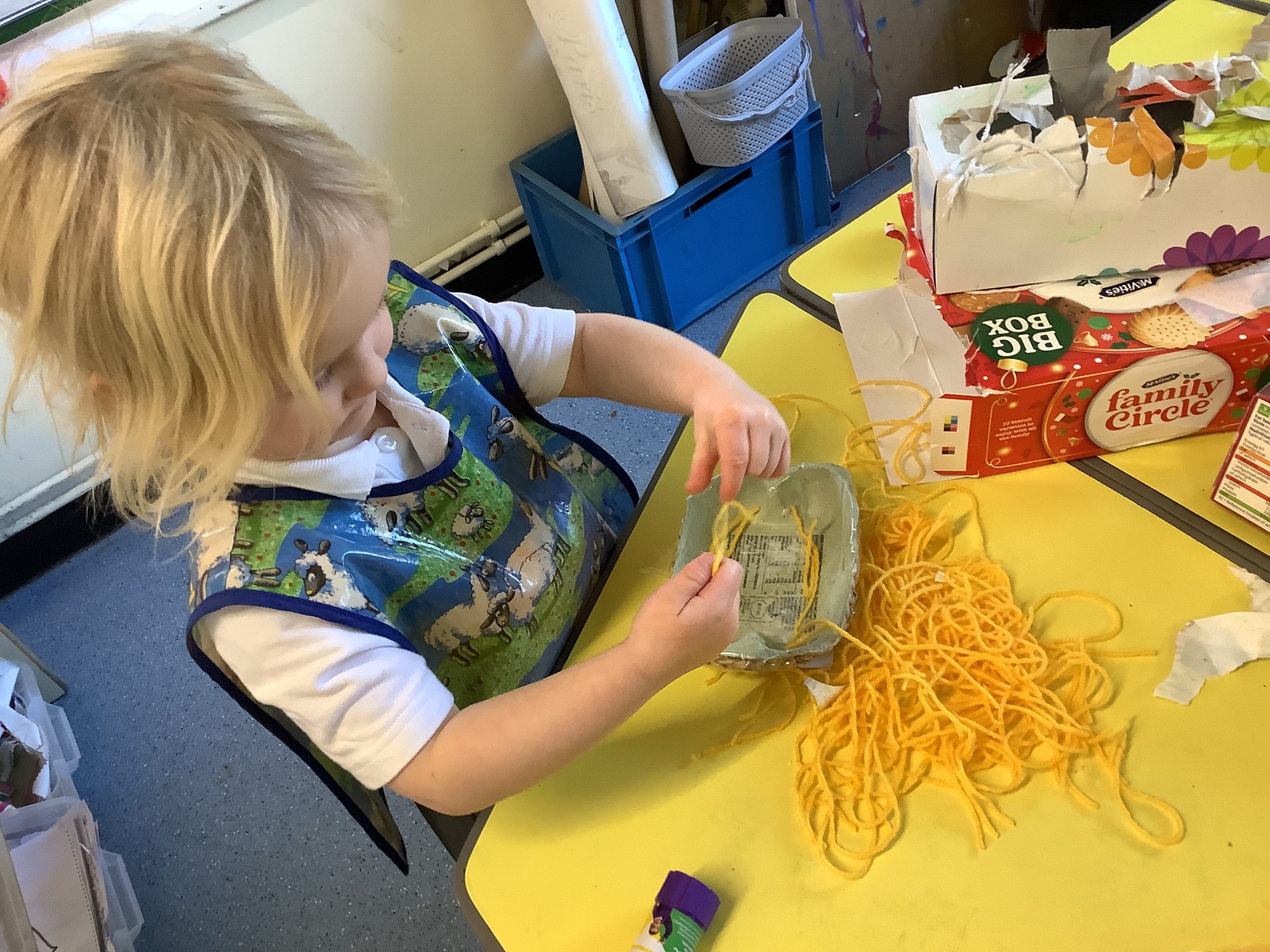 We talked about the special crib that baby Jesus would have lay in and wondered whether it would have been comfortable filled with soft straw. We compared it to what babies sleep in today and talked about the differences. The children worked together to make a class crib, adding different materials to make it more stable and cosy. Some children then wanted to create their own individual cribs and we were delighted to see so many wonderful and imaginative designs.