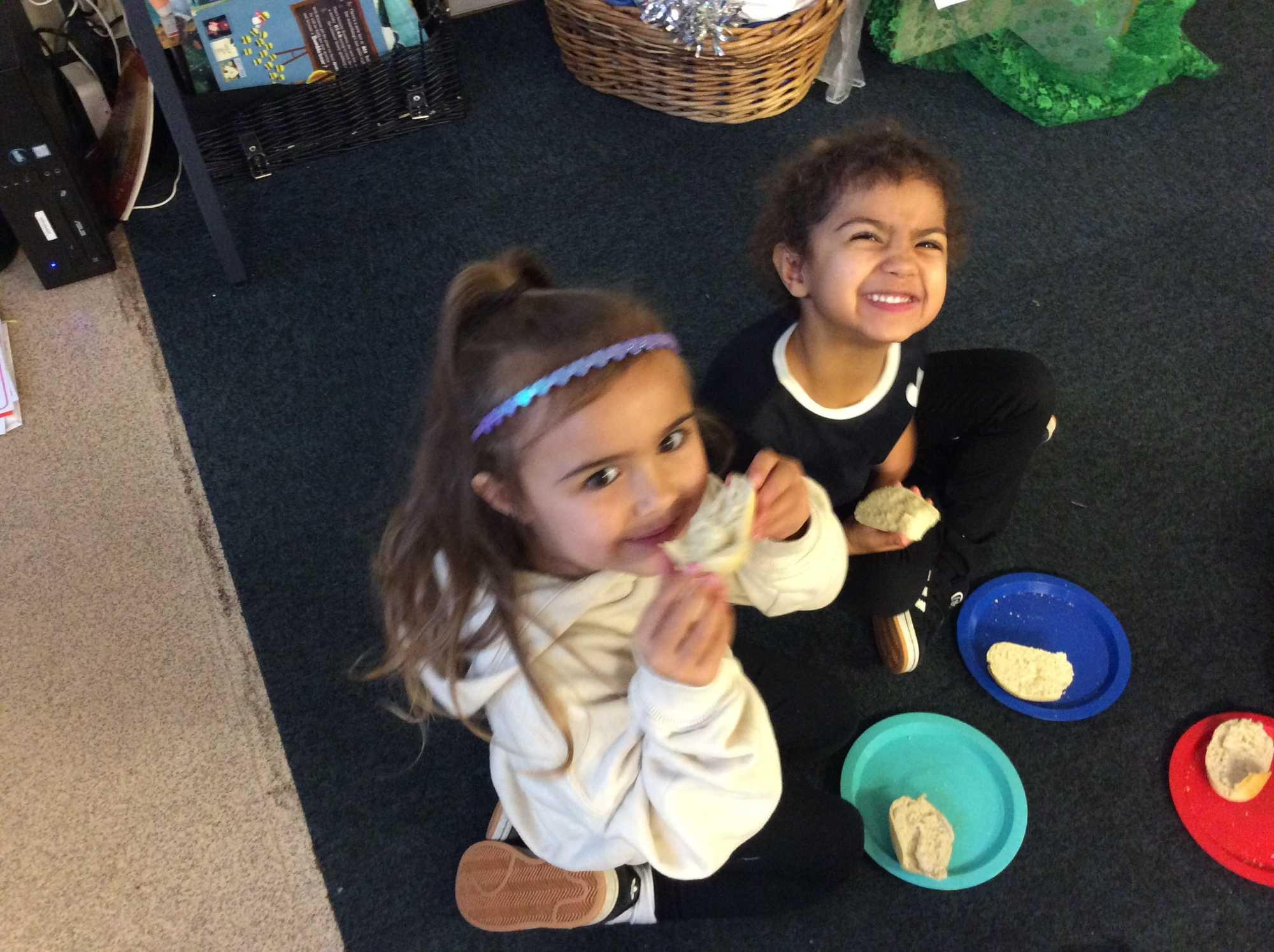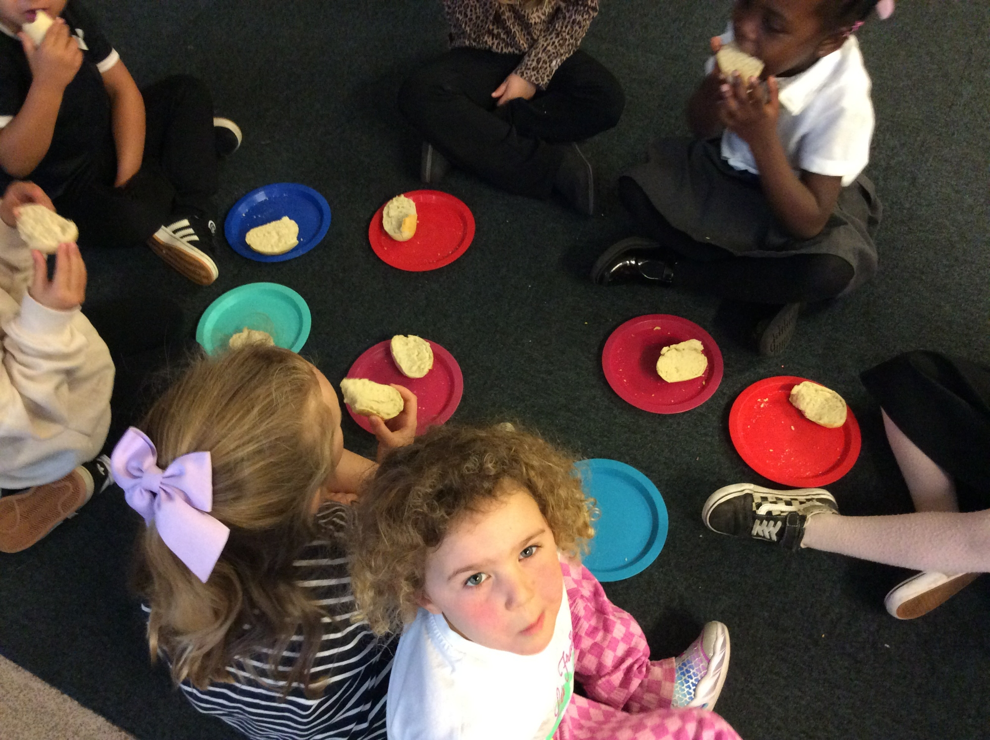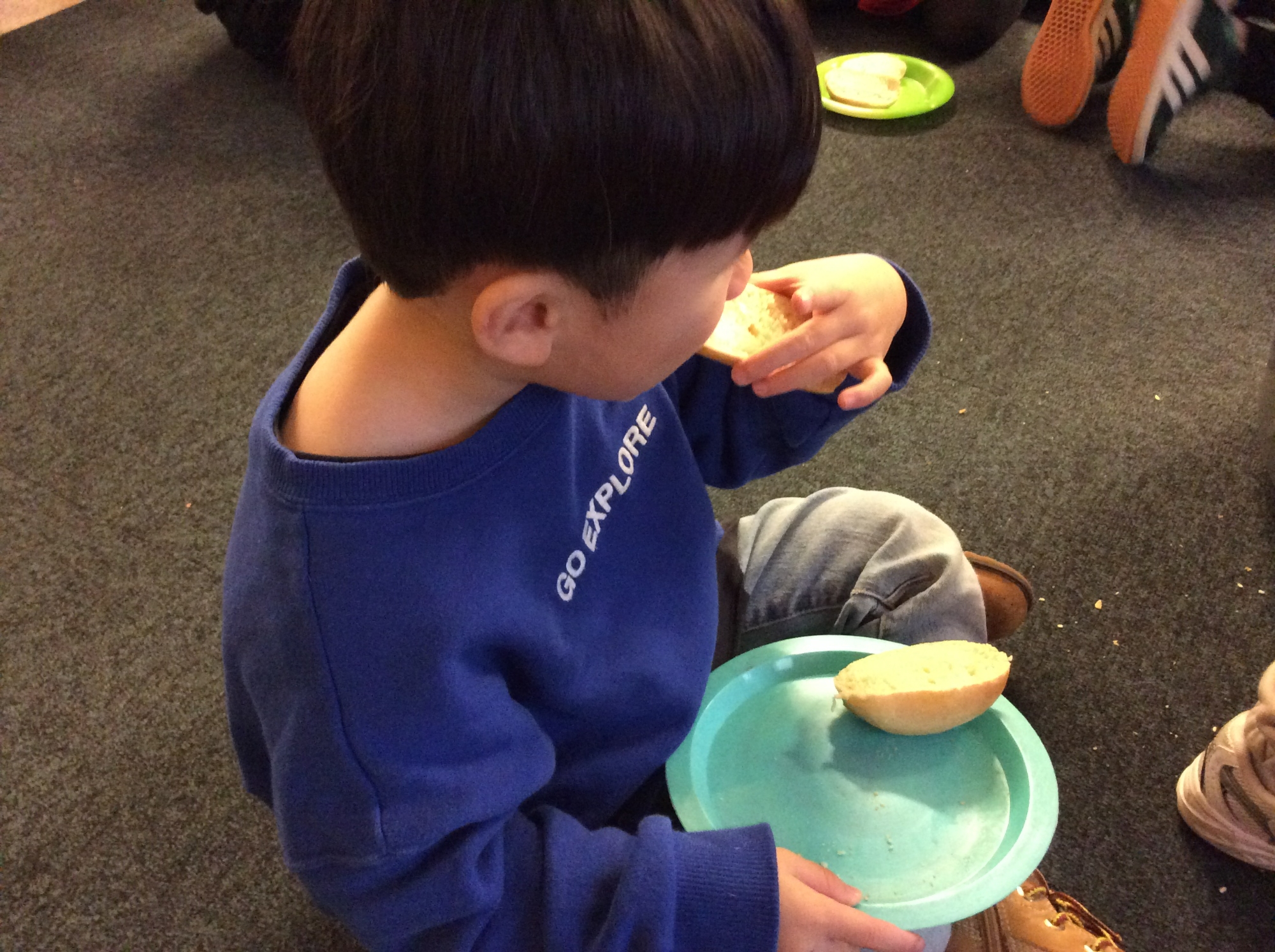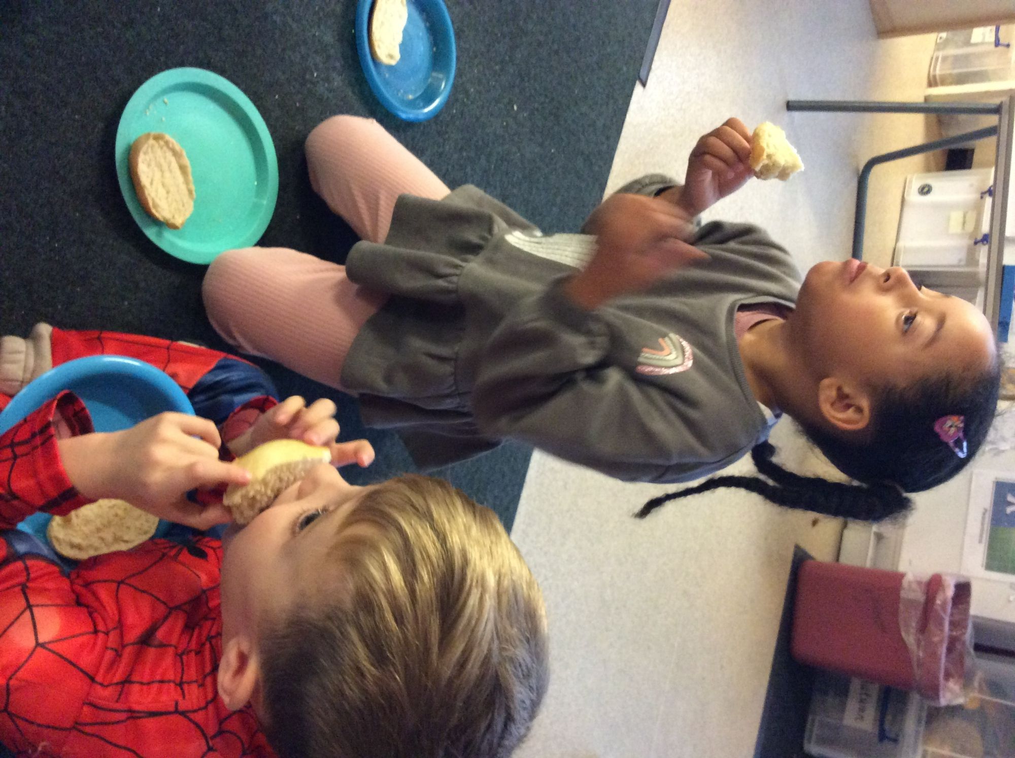 This week we have been listening to the story of the Little Red Hen. We have been re-telling the story using actions and pictures. Today we had warm bread just like the hen in our story. It was delicious.