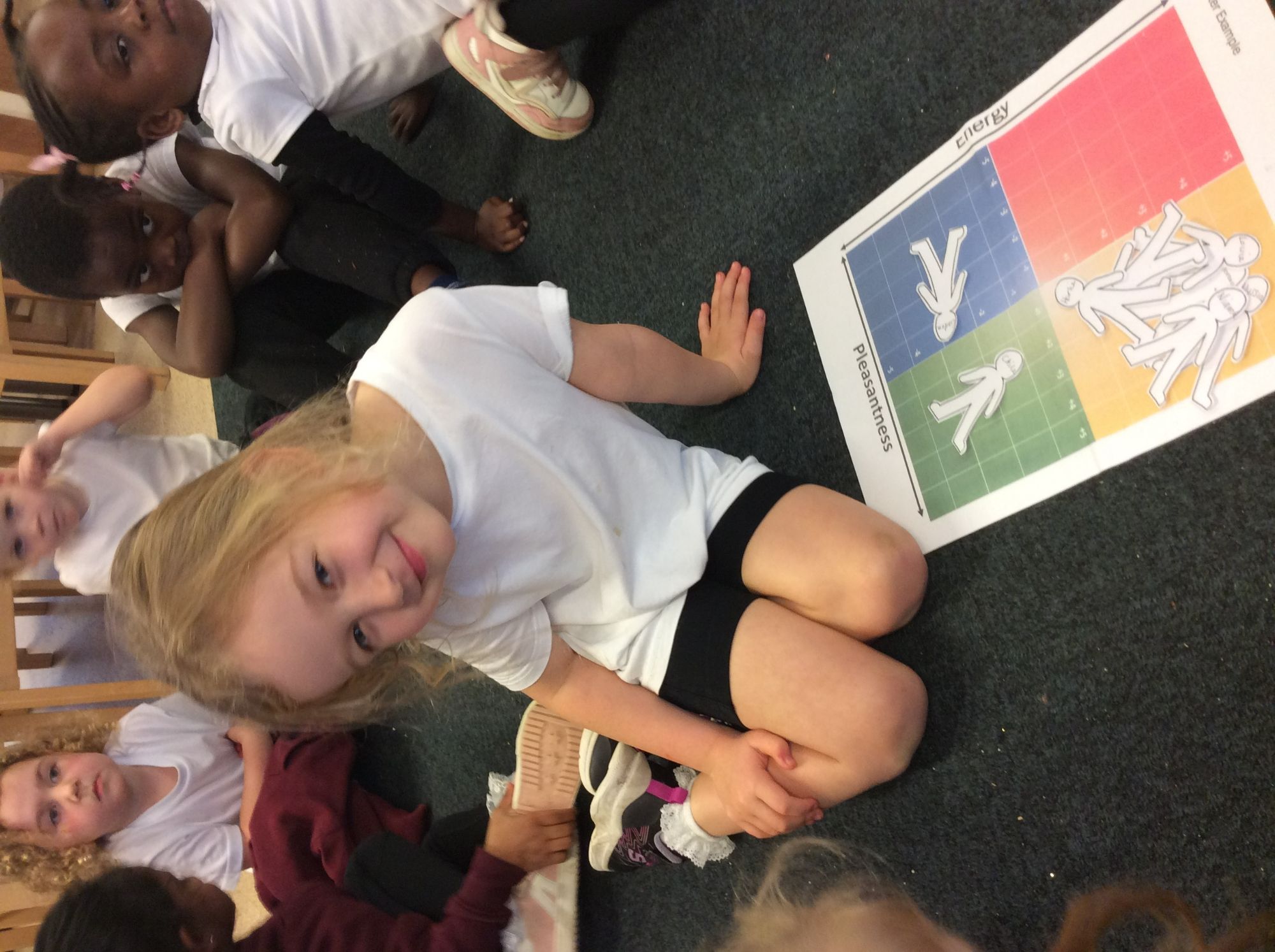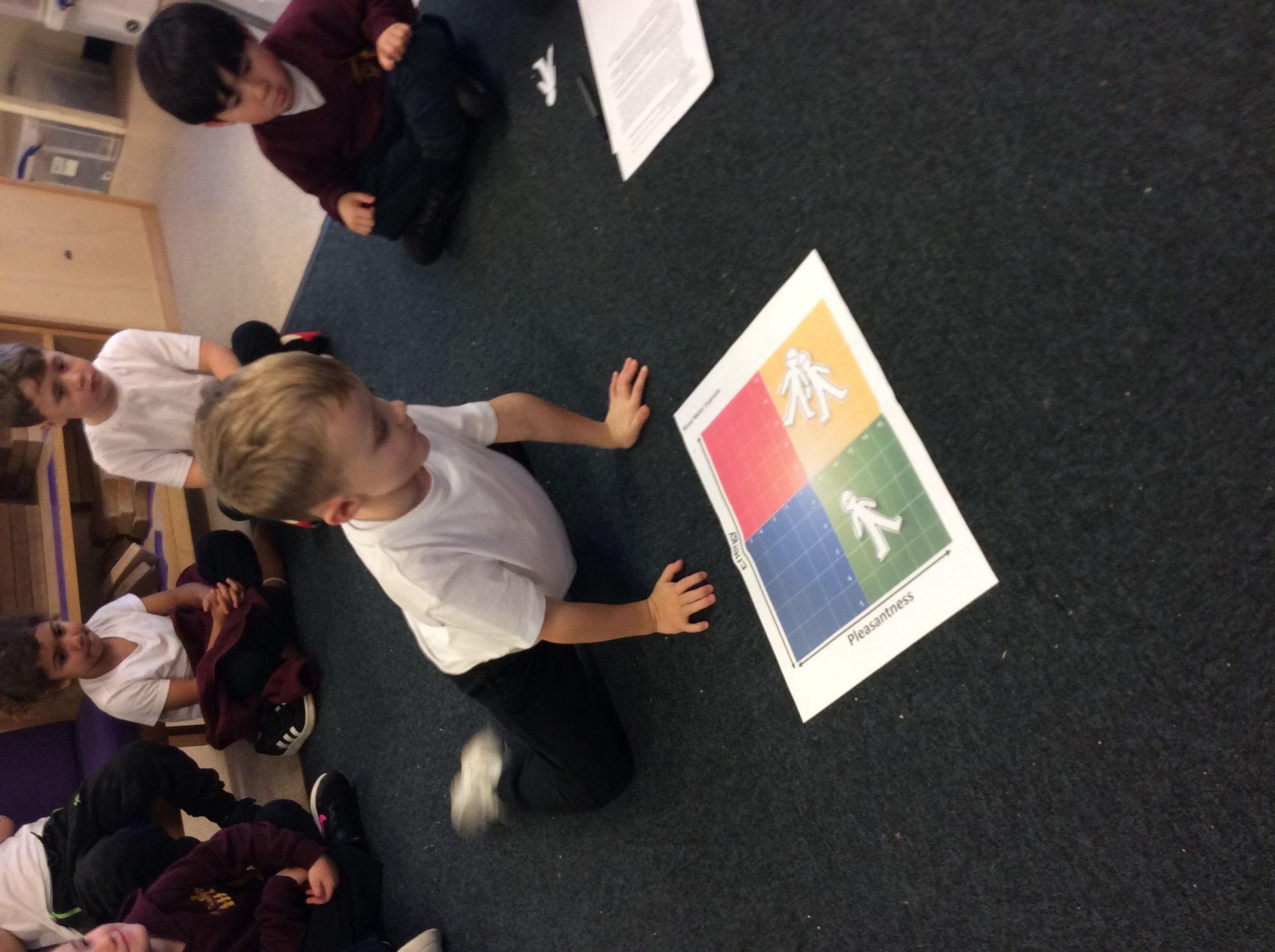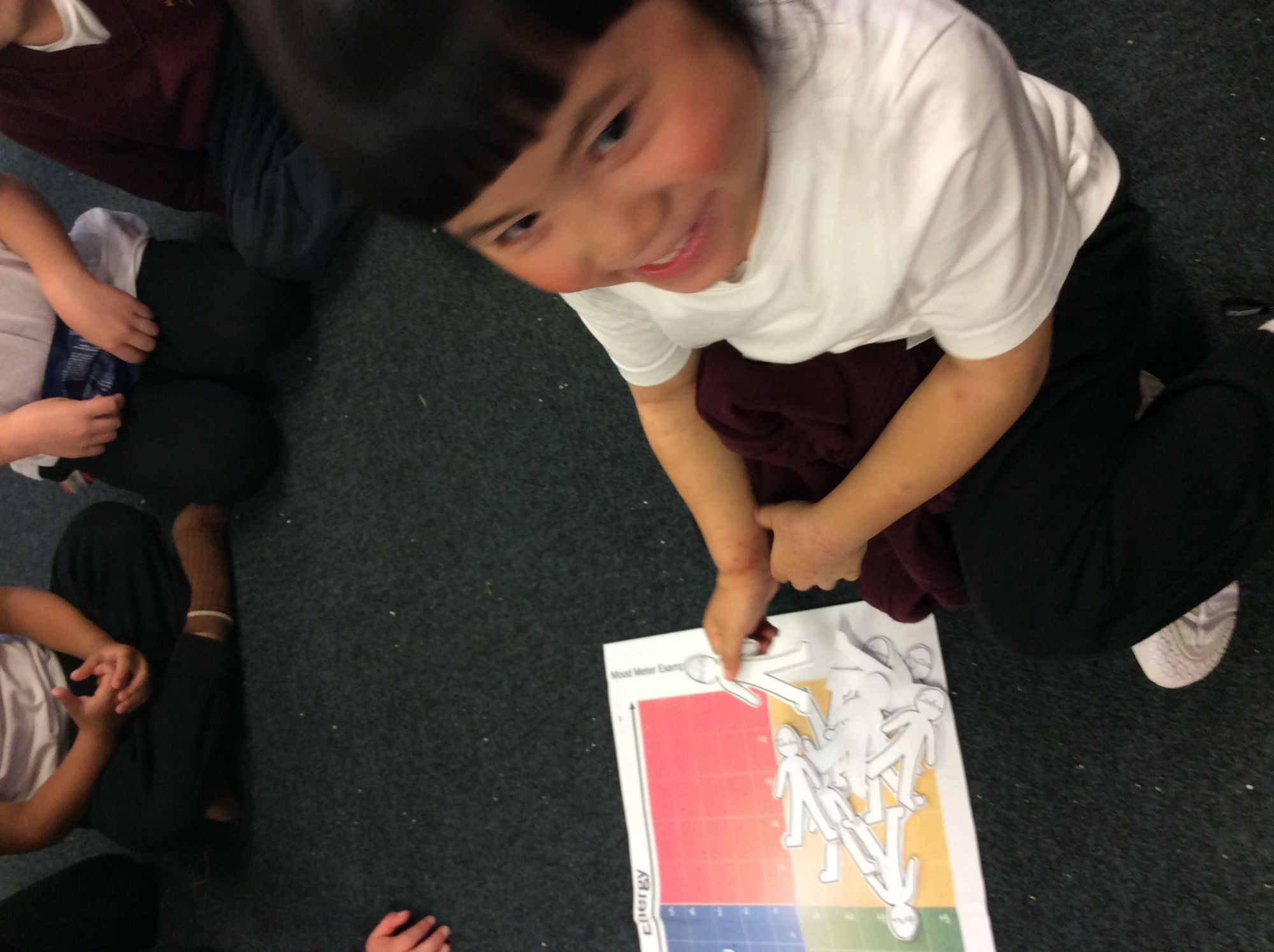 We have been looking at emotions in PSHE. We have talked about how our bodies and voices can change when we feel different emotions and that these feelings can come and go. We have been linking different feelings to different colours. Red is anger, green is calm, yellow is happy and blue is sad. We used the "Mood Meter" to identify the emotions.