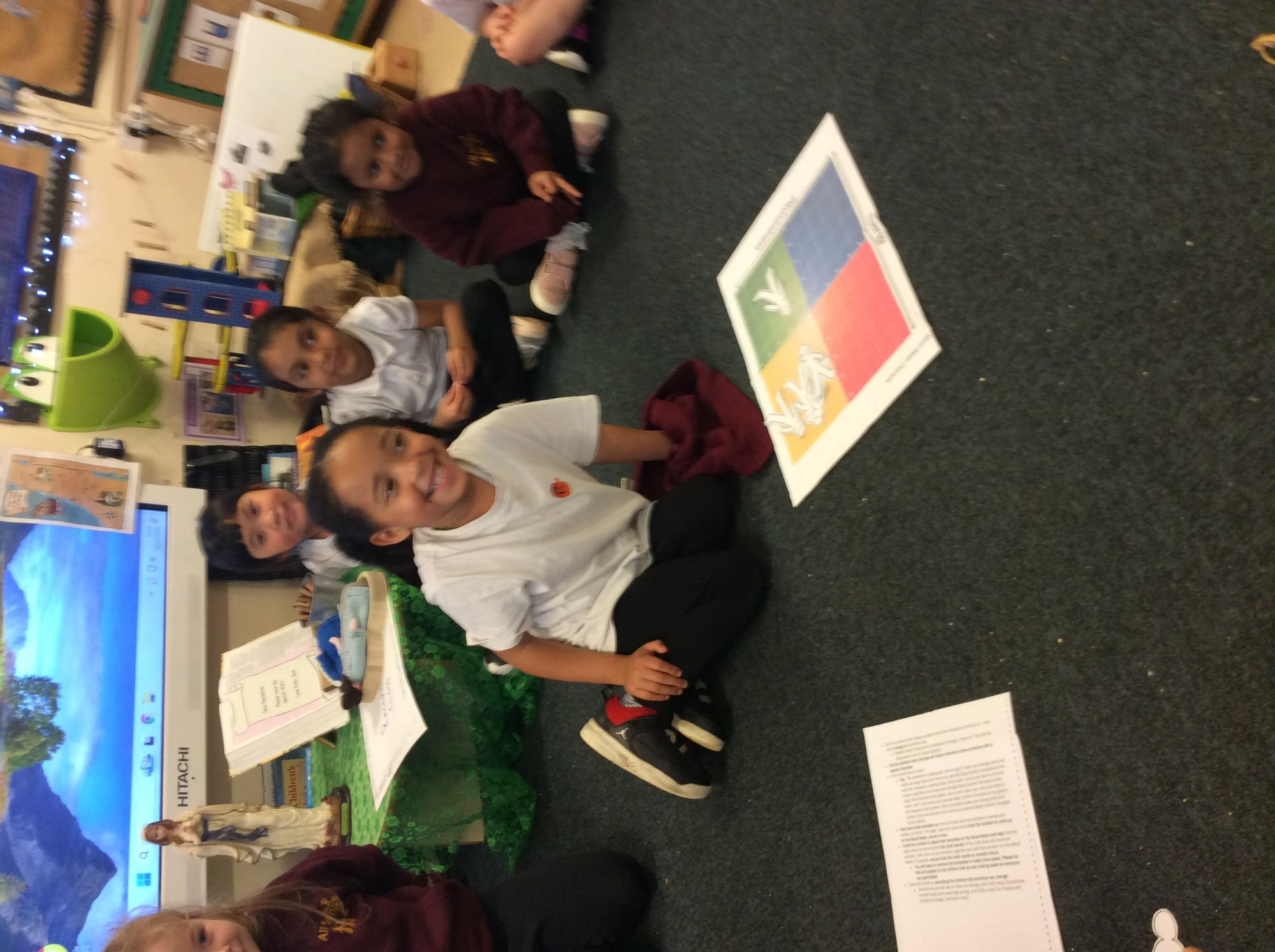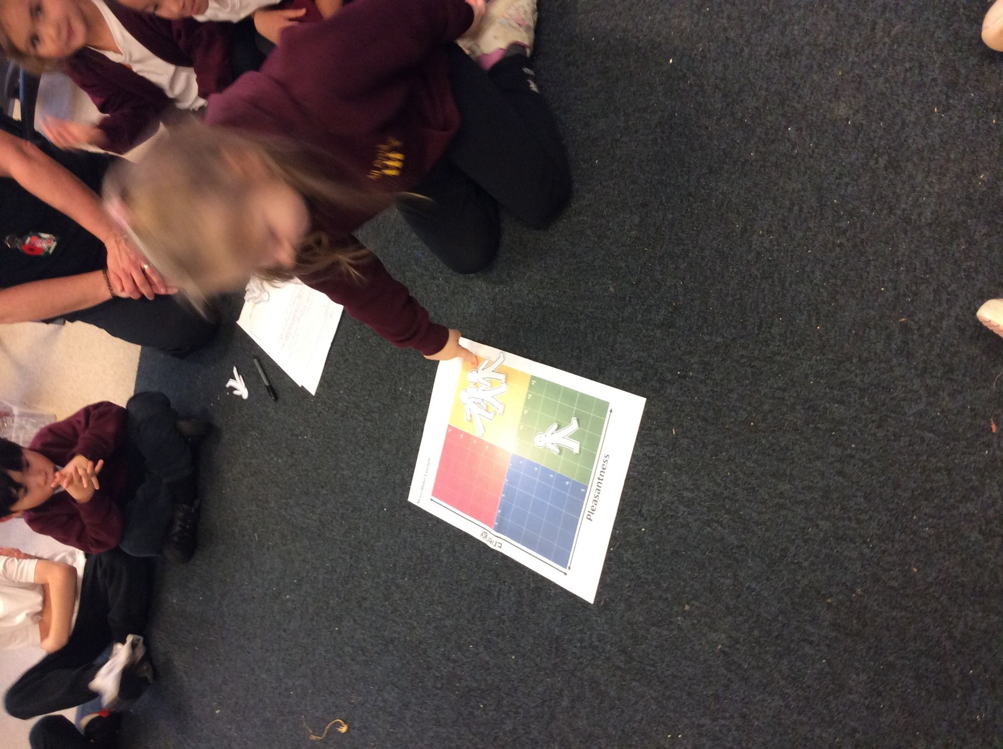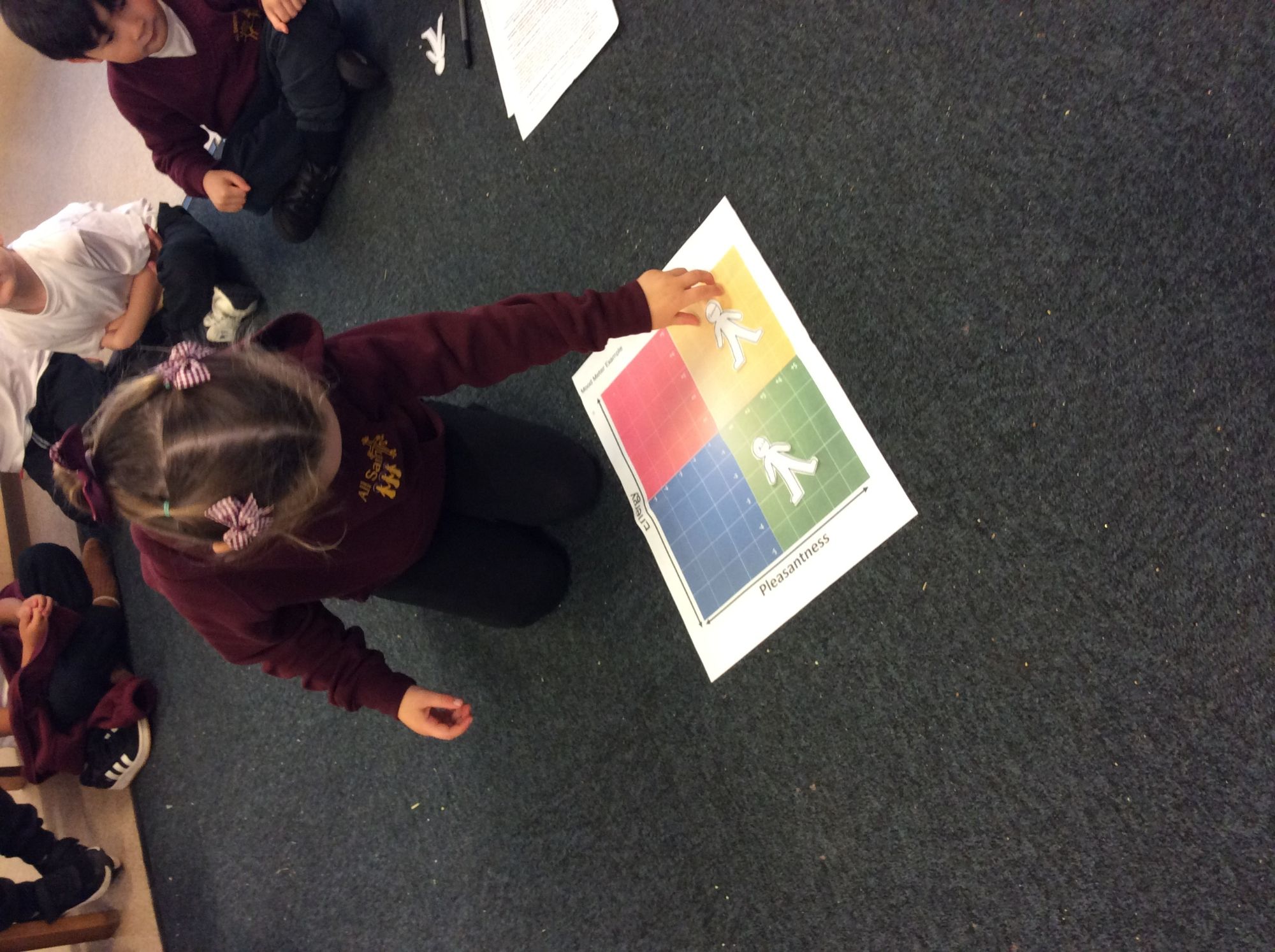 We have been looking at emotions in PSHE. We have talked about how our bodies and voices can change when we feel different emotions and that these feelings can come and go. We have been linking different feelings to different colours. Red is anger, green is calm, yellow is happy and blue is sad. We used the "Mood Meter" to identify the emotions.