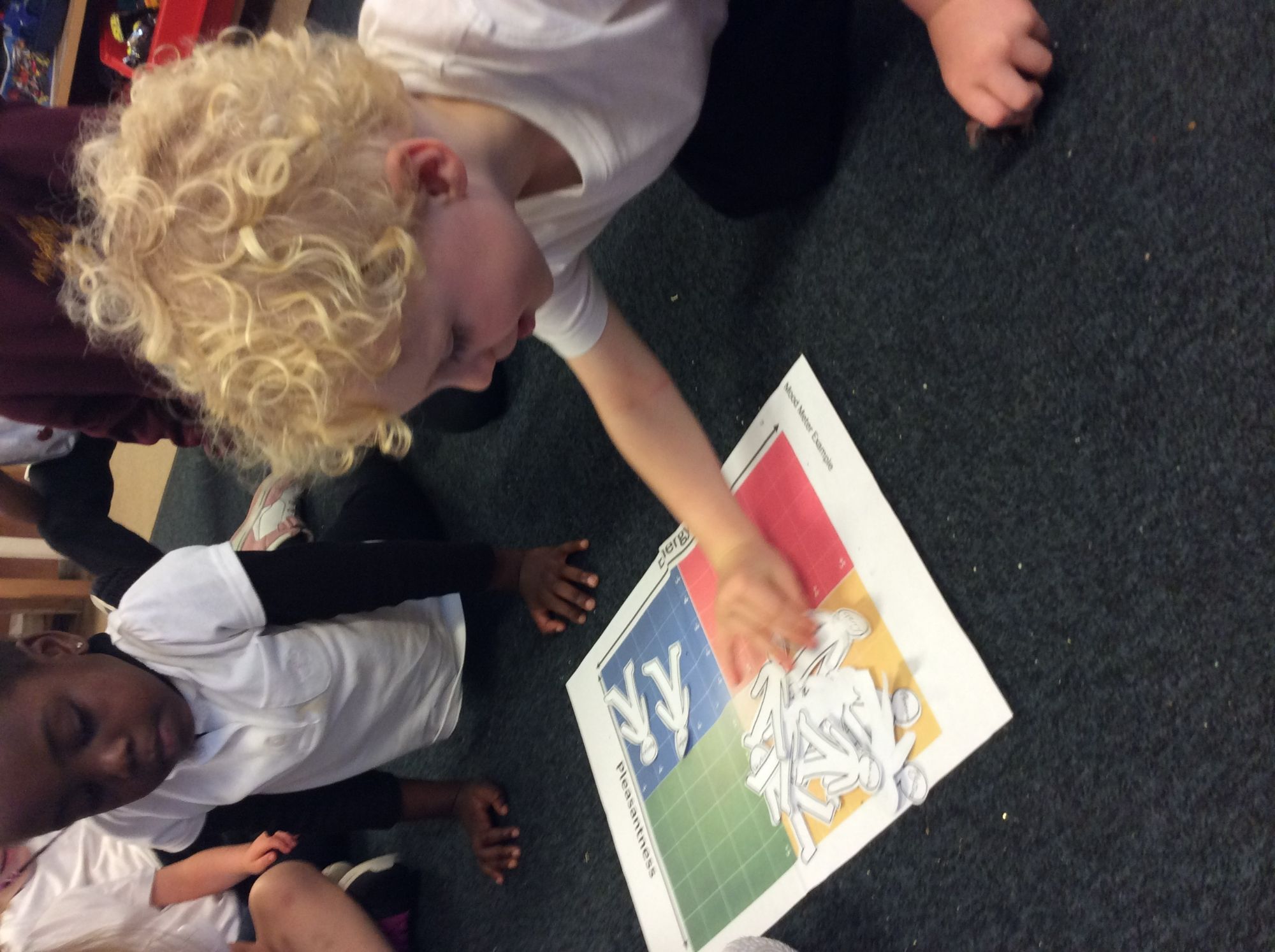 In Maths, we have been using our counting stick to practise 1:1 correspondence.