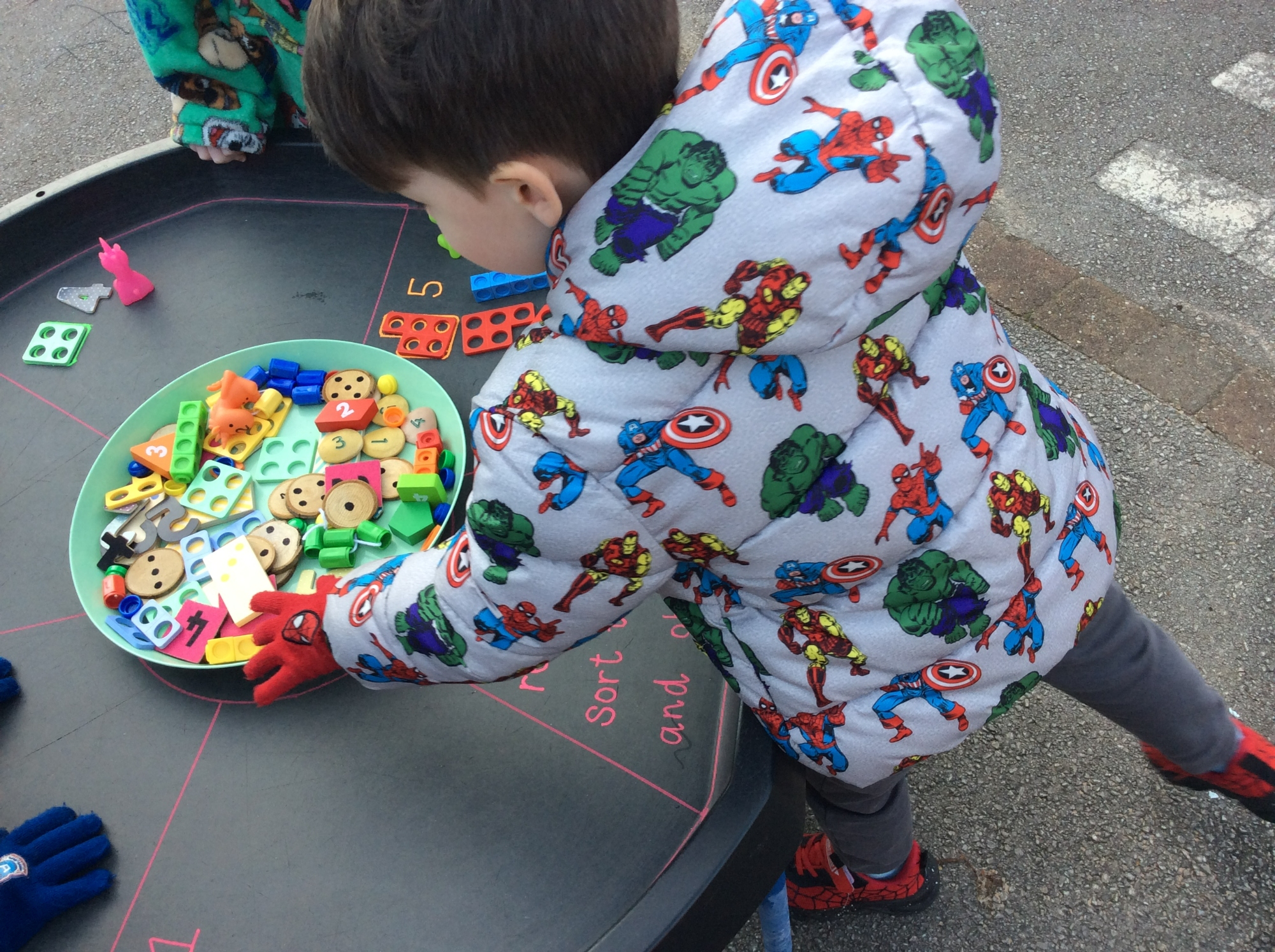 We have been comparing two sets of objects and saying which is more than and which is fewer than. We were able to understand why it was more – "I know because 3 is bigger than 2" or why it was fewer. " 8 comes before 9. 9 is a bit bigger than 8."