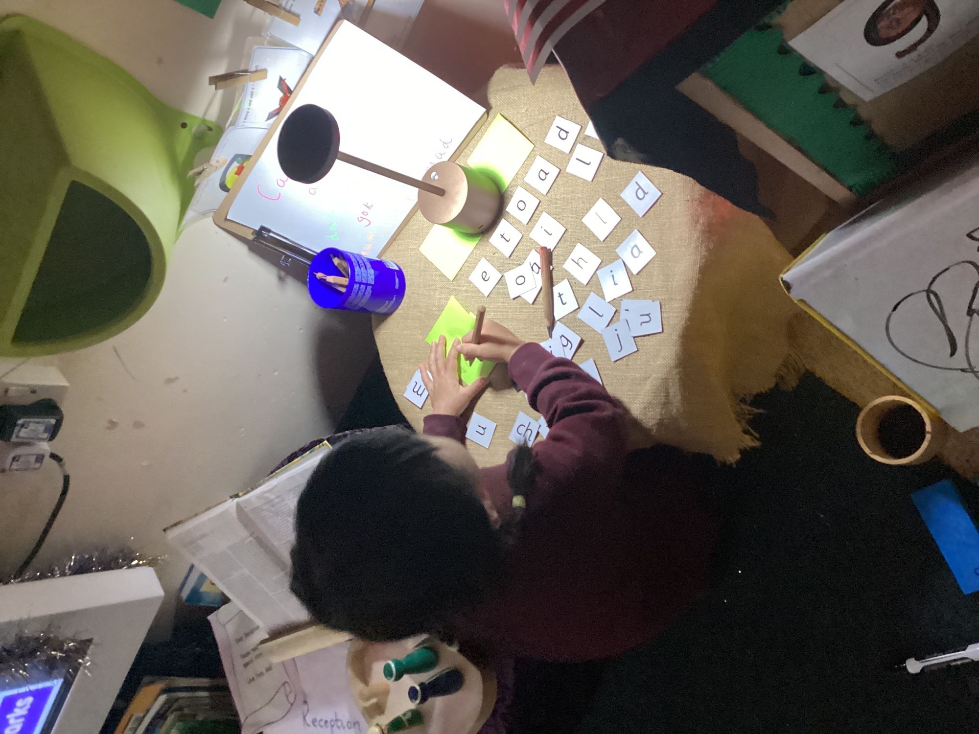 ‘Squiggle whilst we wiggle’ is where we use dance and large movements to help us develop the fine muscle control we need for writing. We learn a new gross motor movement to a piece of music. We dance using this movement and use it to make marks. This could be in foam, on paper or in sand. These sessions are great fun but most importantly, help us to be confident mark makers.