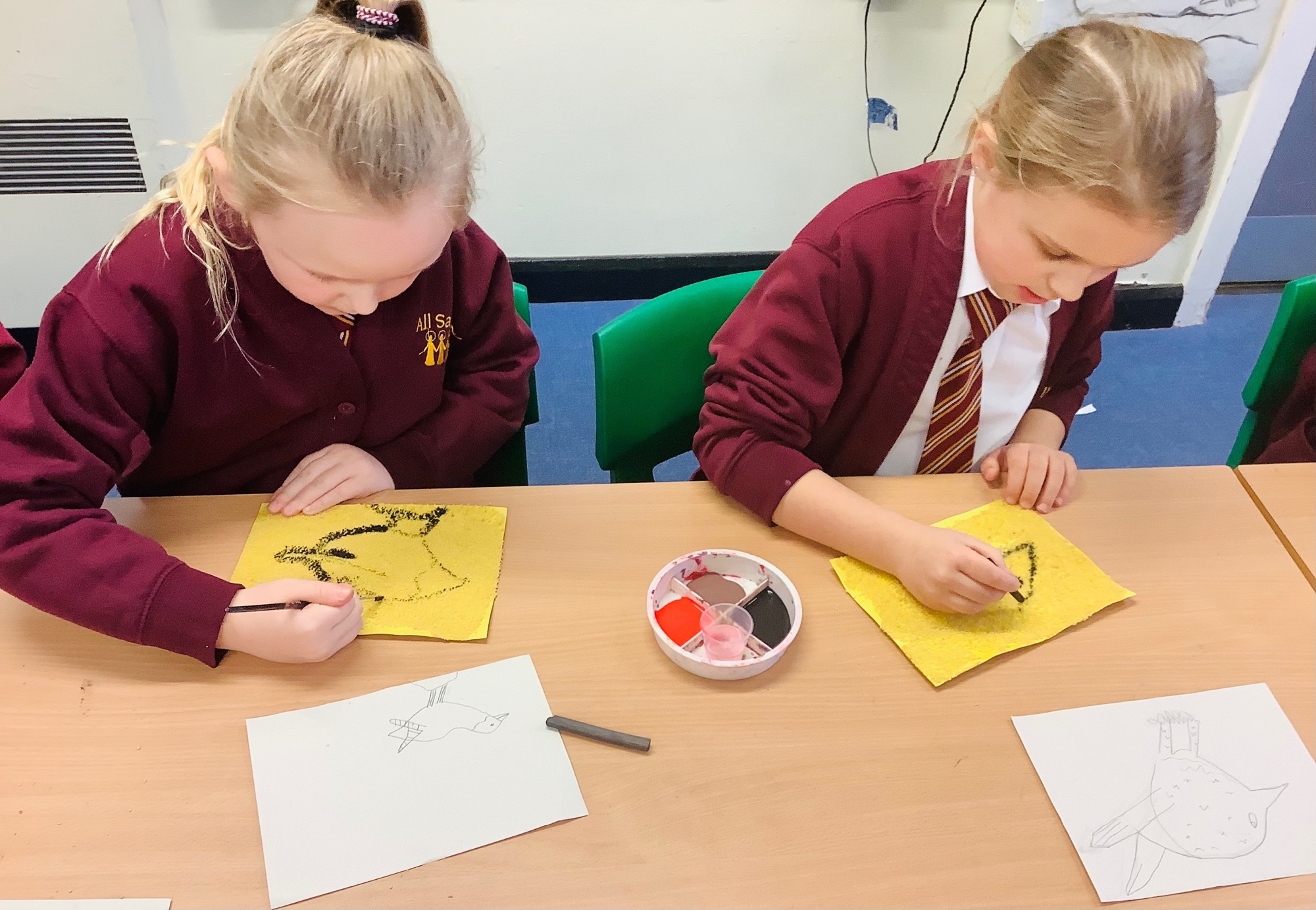 In art this term, we have been exploring prehistoric cave art inspired by the Stone Age. The children have used materials such as charcoal and natural pigments, experimented with colour mixing, and created large-scale artworks. This creative work has helped to develop their artistic skills while also linking closely to their learning in history.