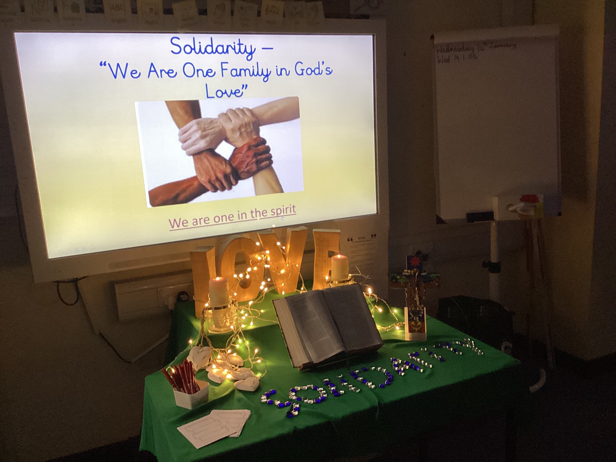Year 4 led a prayer service focused on the theme Solidarity – We Are One Family in God’s Love. Through prayer and reflection, the students explored how we are called to love and support one another as one family in Christ. The service was inspired by the Bible quote John 13:34, reminding us of Jesus’ command to love one another as He loves us.