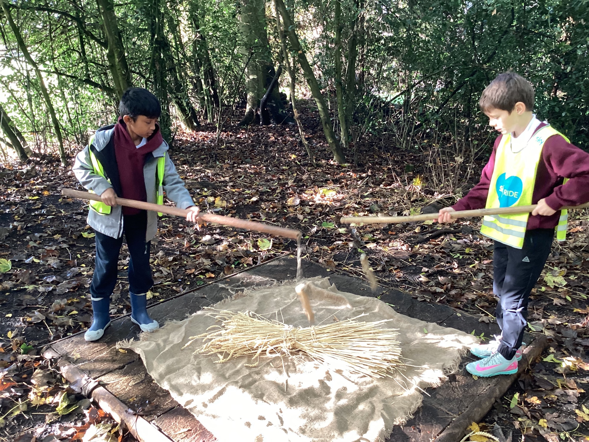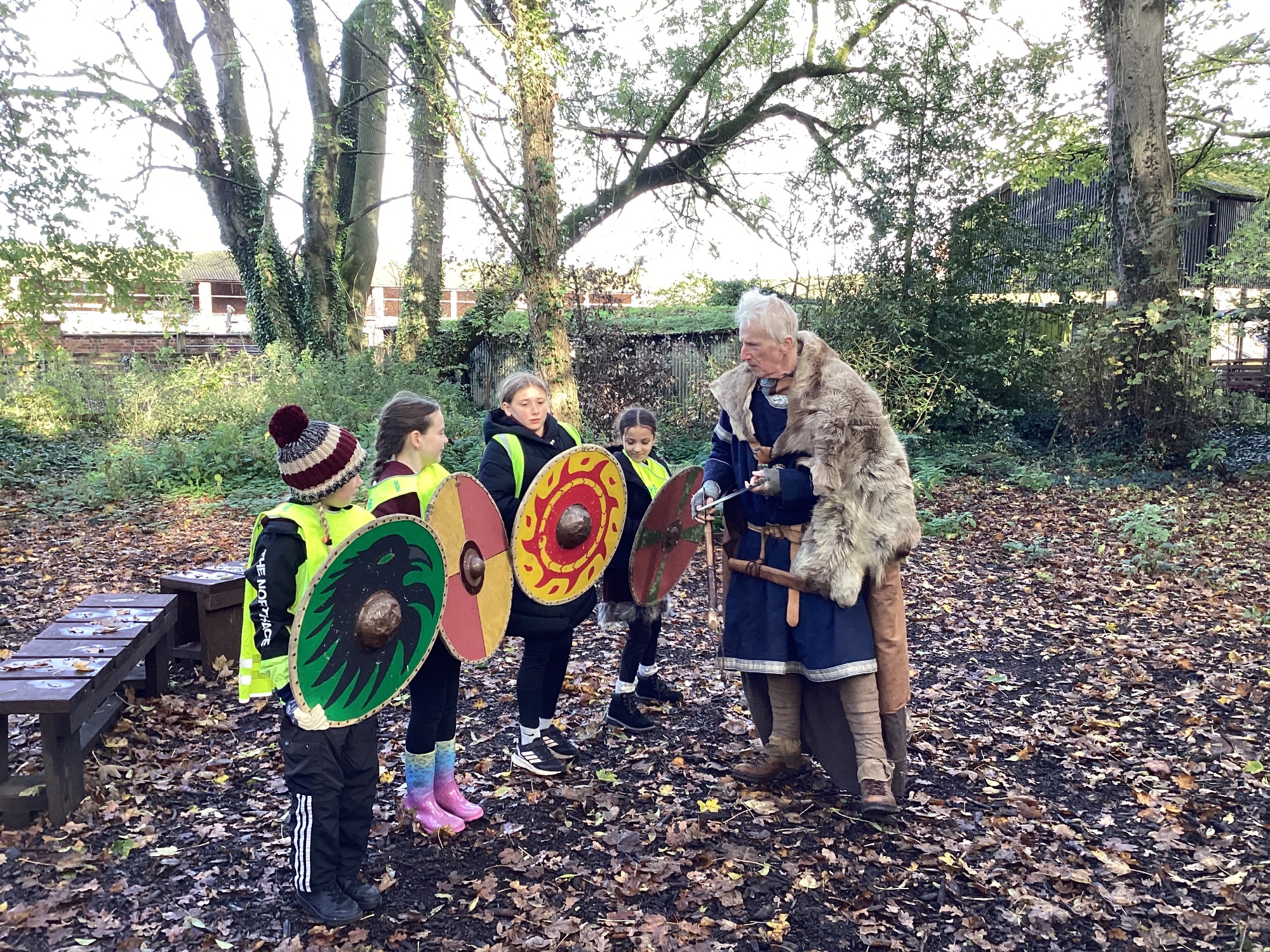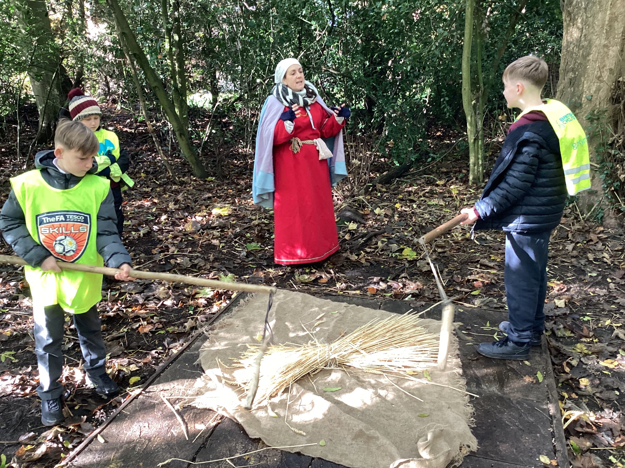 As part of this half-term's topic of Anglo-Saxons and Vikings, Year 5 visited Tatton Park where we were greeted by Harold Bloodaxe who put us through our paces with beginners Viking training. We also helped to thresh the wheat and grind it into flour and made some colourful braids to trade with the Vikings.