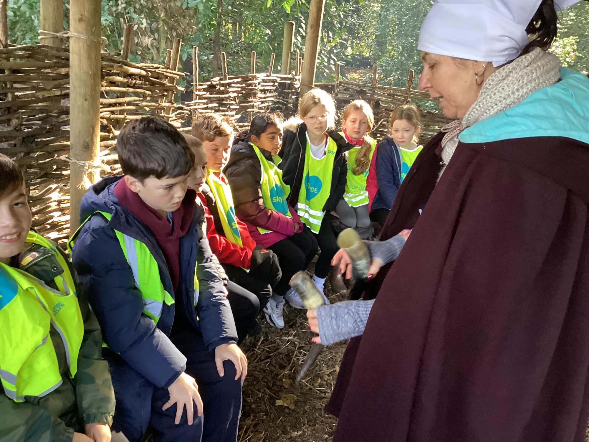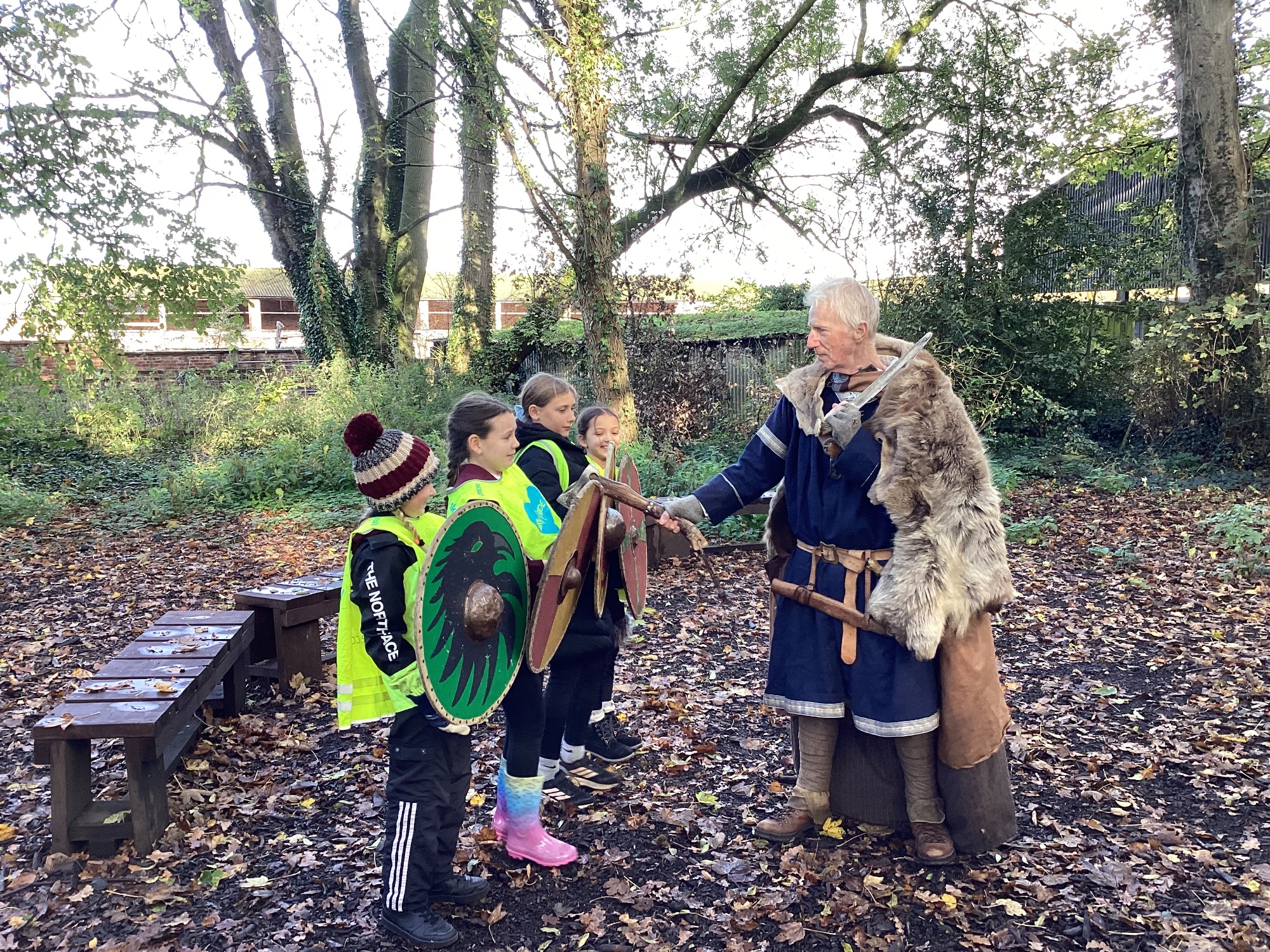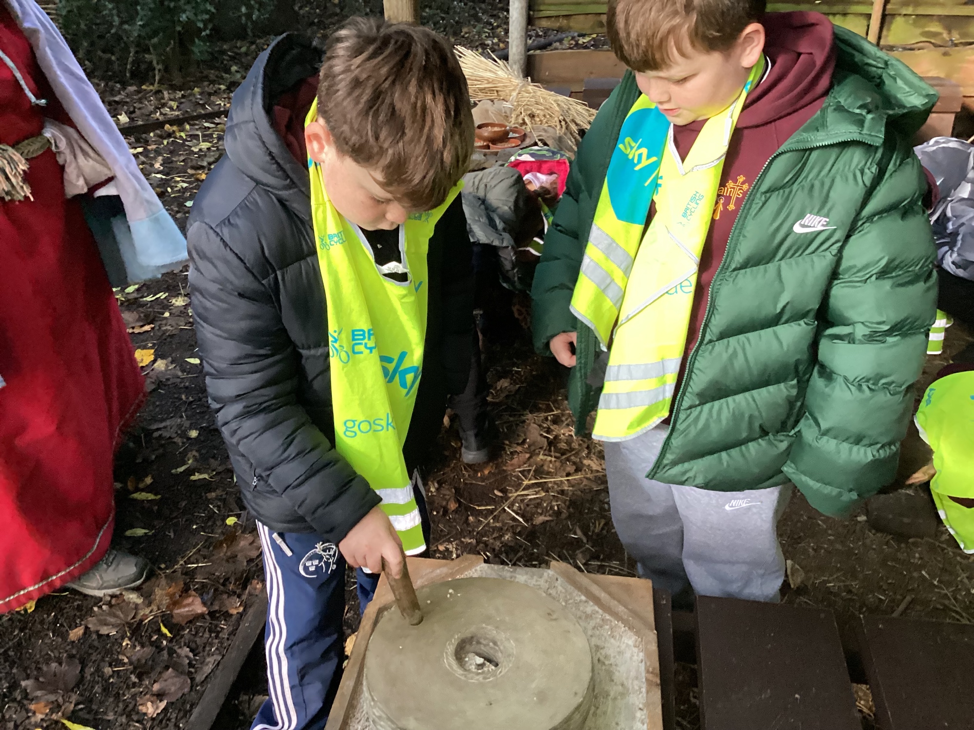As part of this half-term's topic of Anglo-Saxons and Vikings, Year 5 visited Tatton Park where we were greeted by Harold Bloodaxe who put us through our paces with beginners Viking training. We also helped to thresh the wheat and grind it into flour and made some colourful braids to trade with the Vikings.