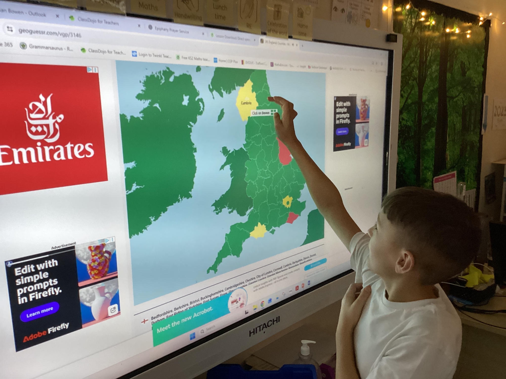 This term, we have been learning about the important cities of the United Kingdom and where they are located in relation to one another. Today, we explored the counties of the United Kingdom. We used the eight compass points to help us identify and describe where the different counties are located.