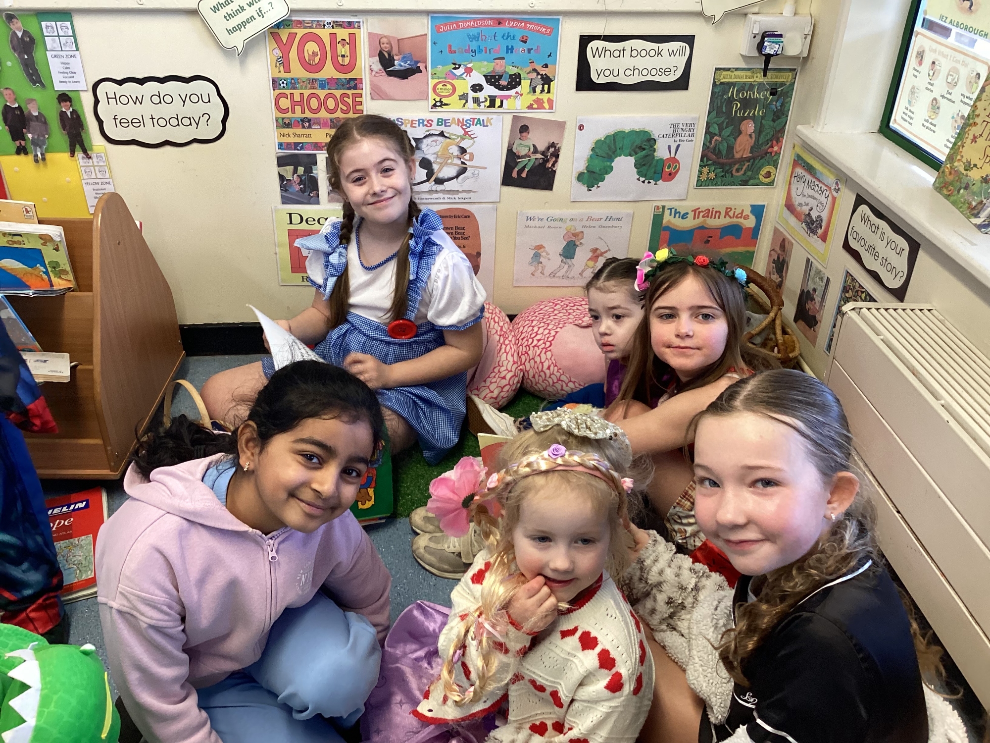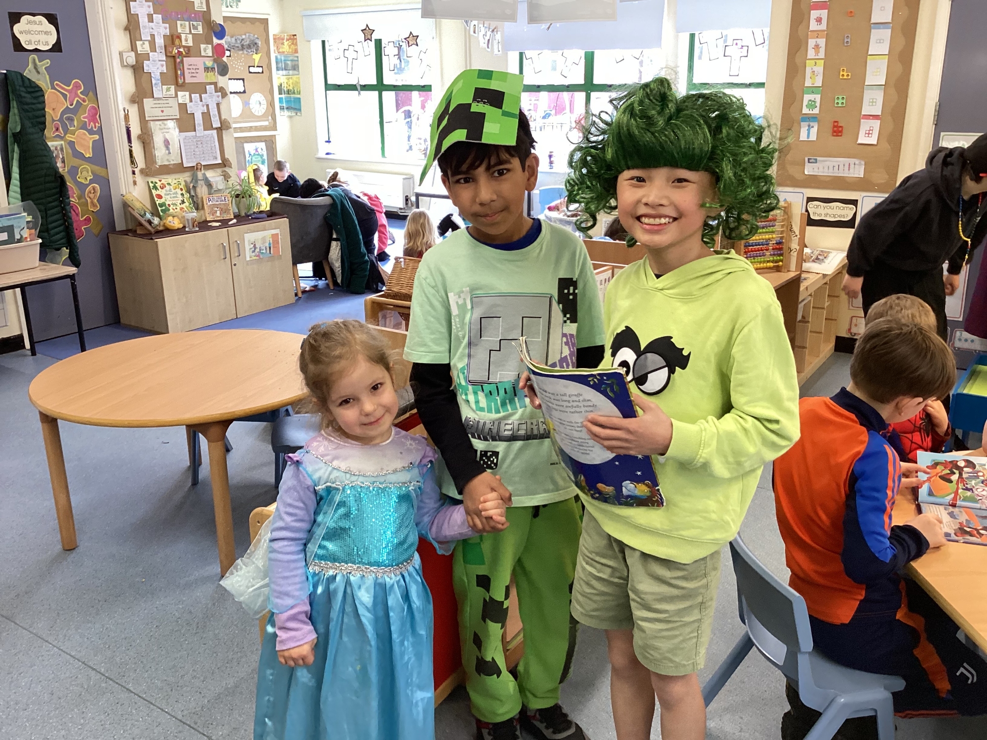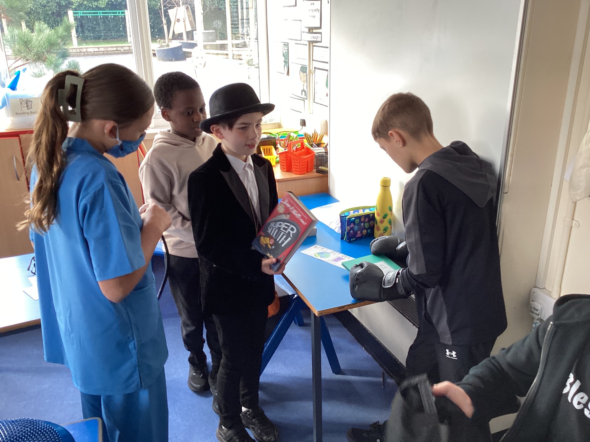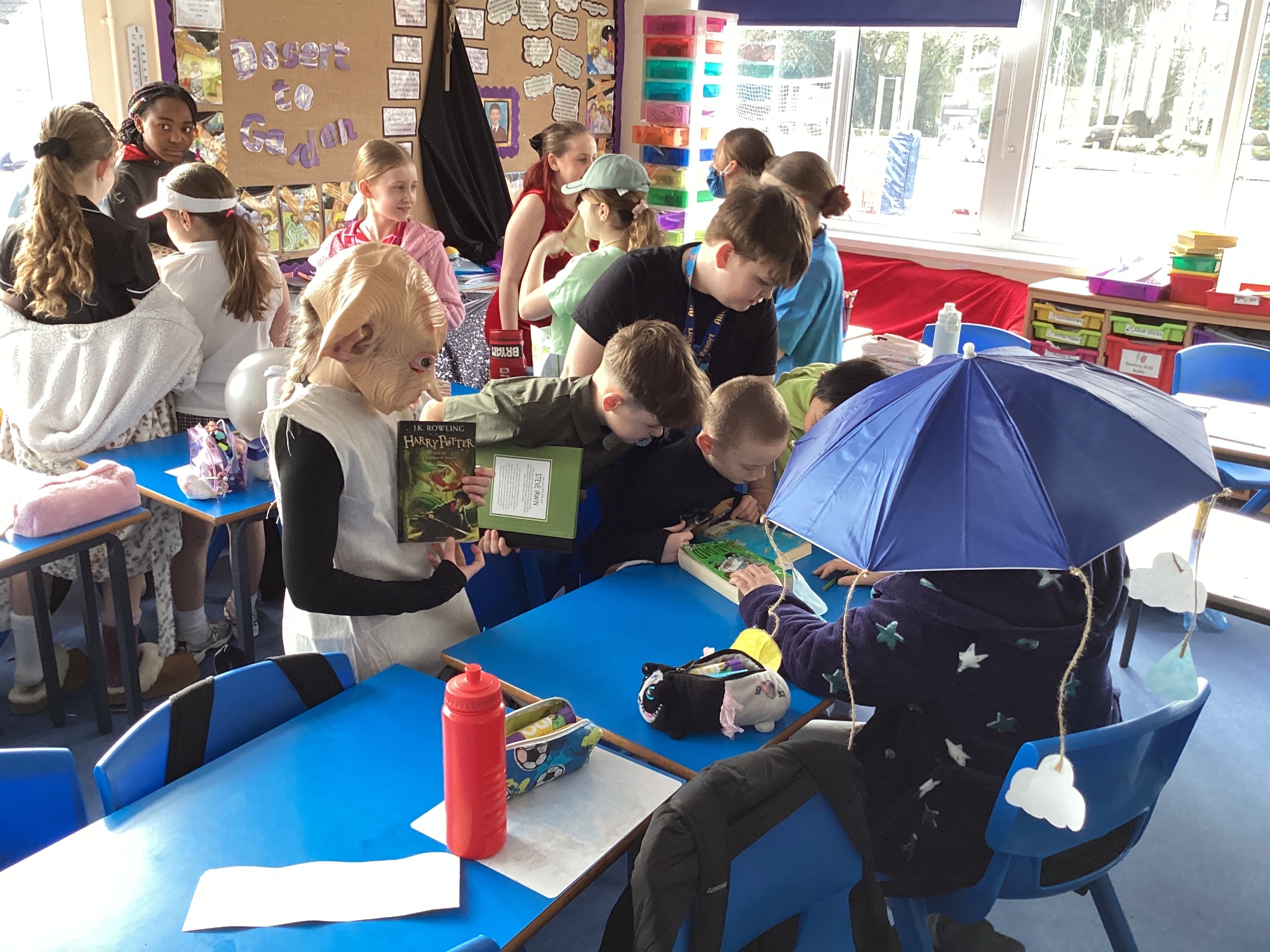 Today Y5 wore some magnificent costumes to celebrate World Book Day. We shared our books with Y5 and Nursery and joined in with a whole school parade.