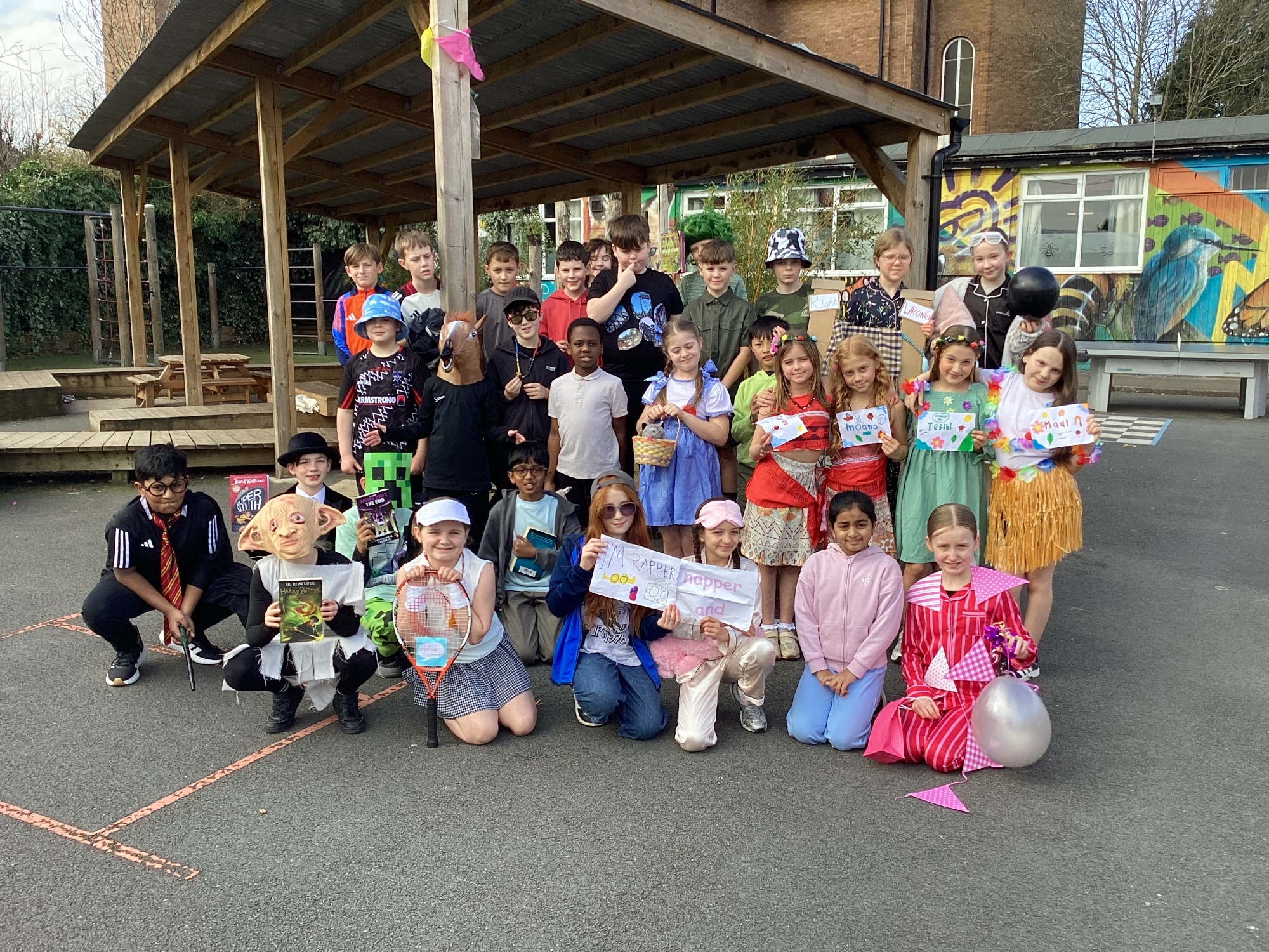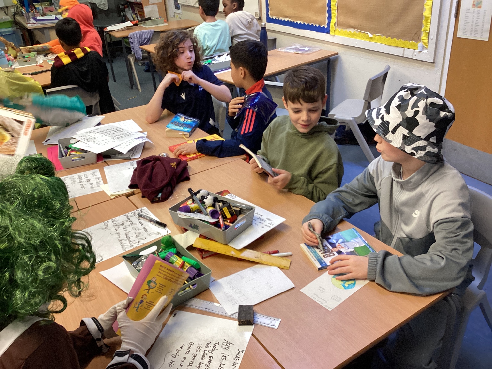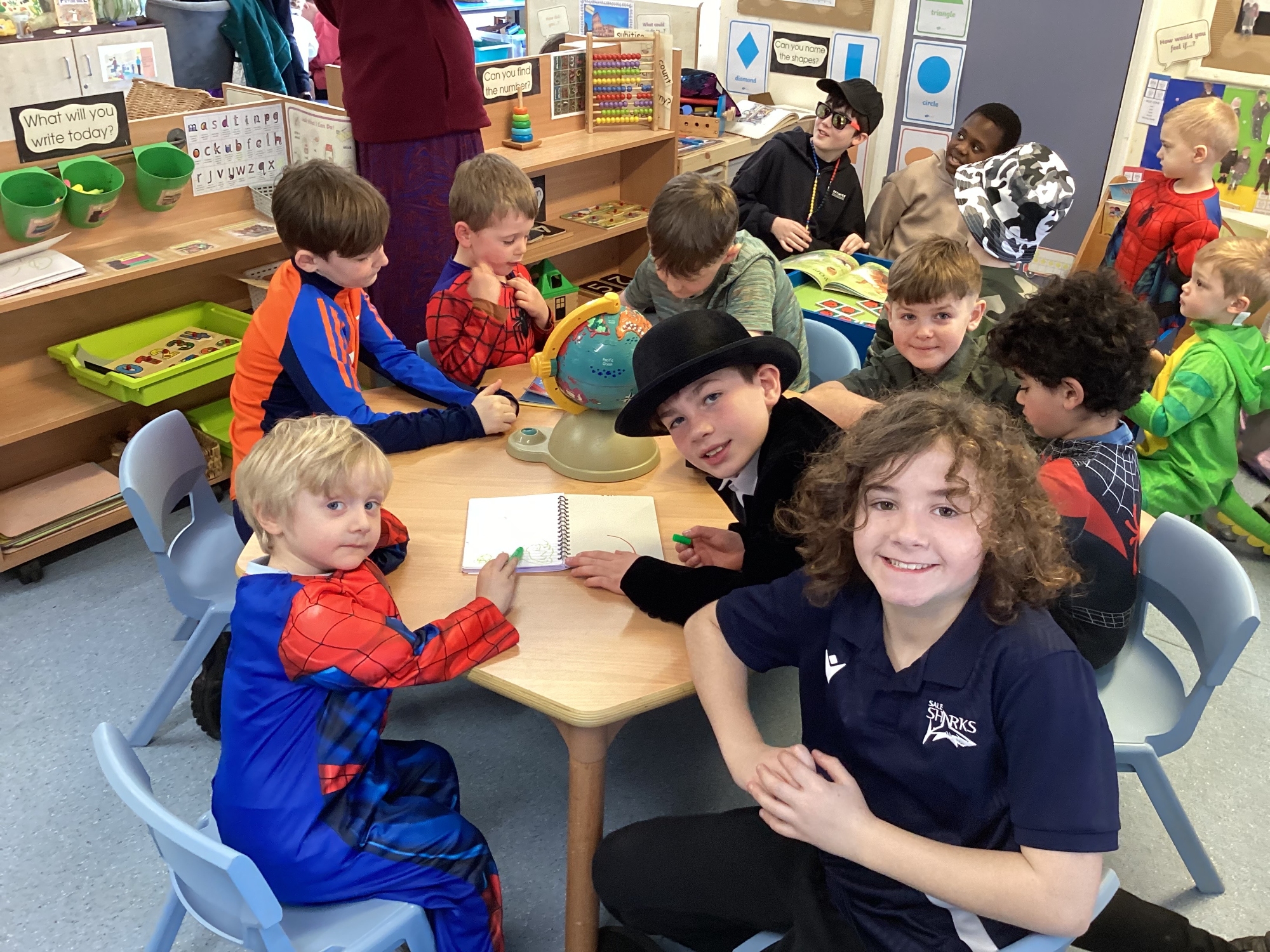 Today Y5 wore some magnificent costumes to celebrate World Book Day. We shared our books with Y5 and Nursery and joined in with a whole school parade.