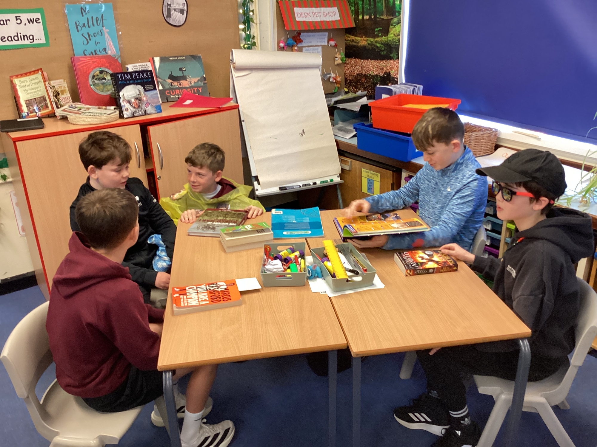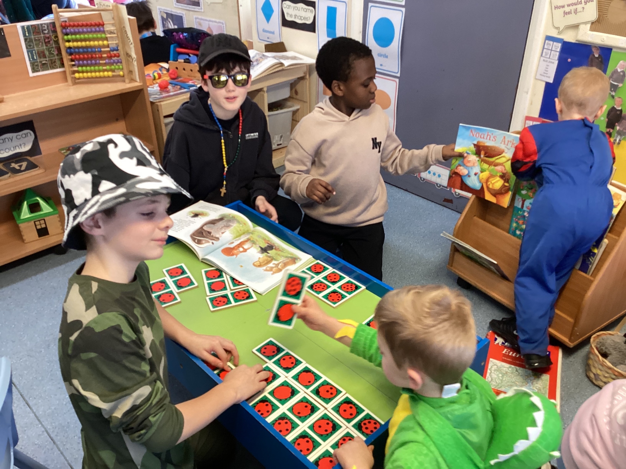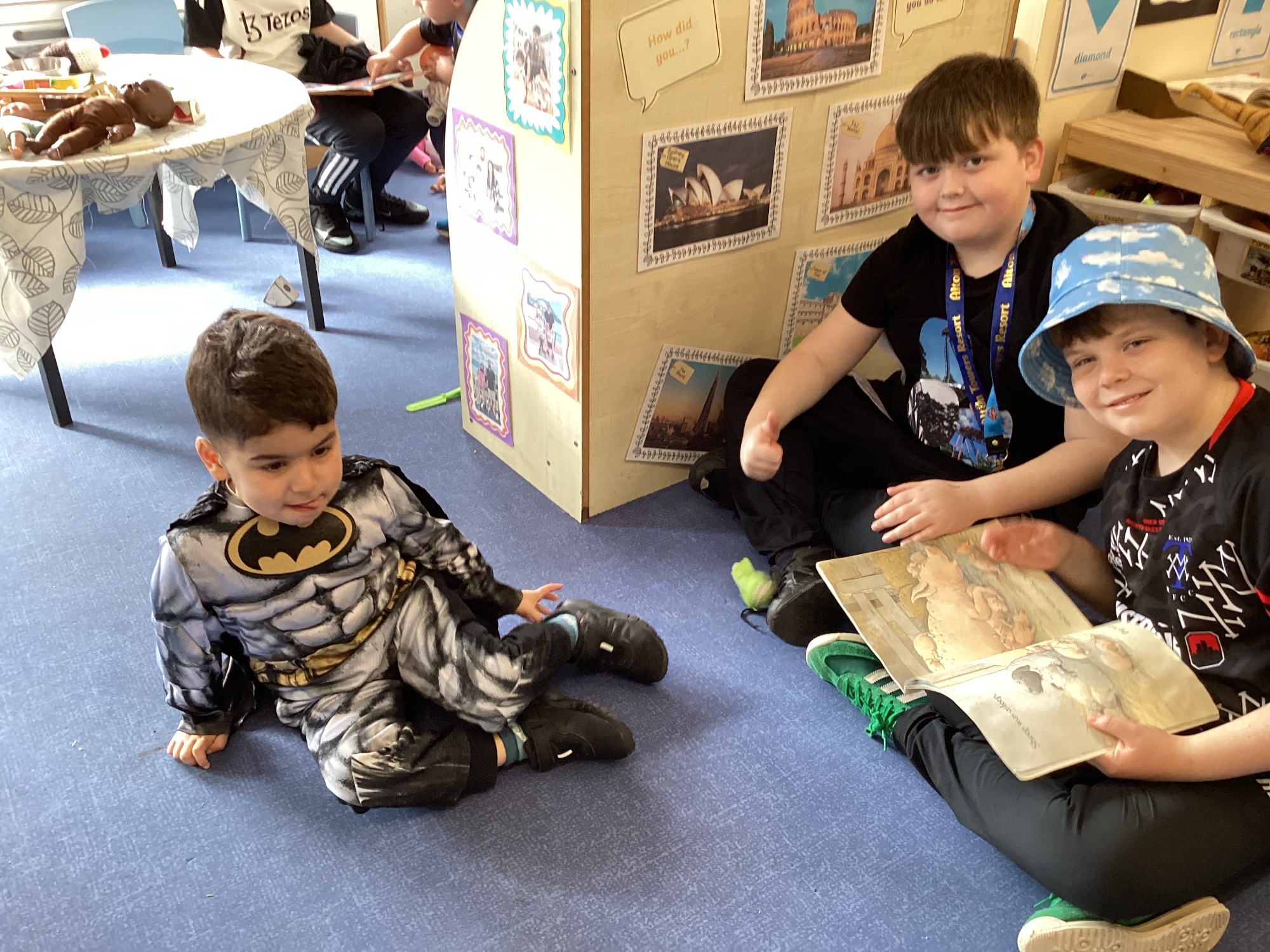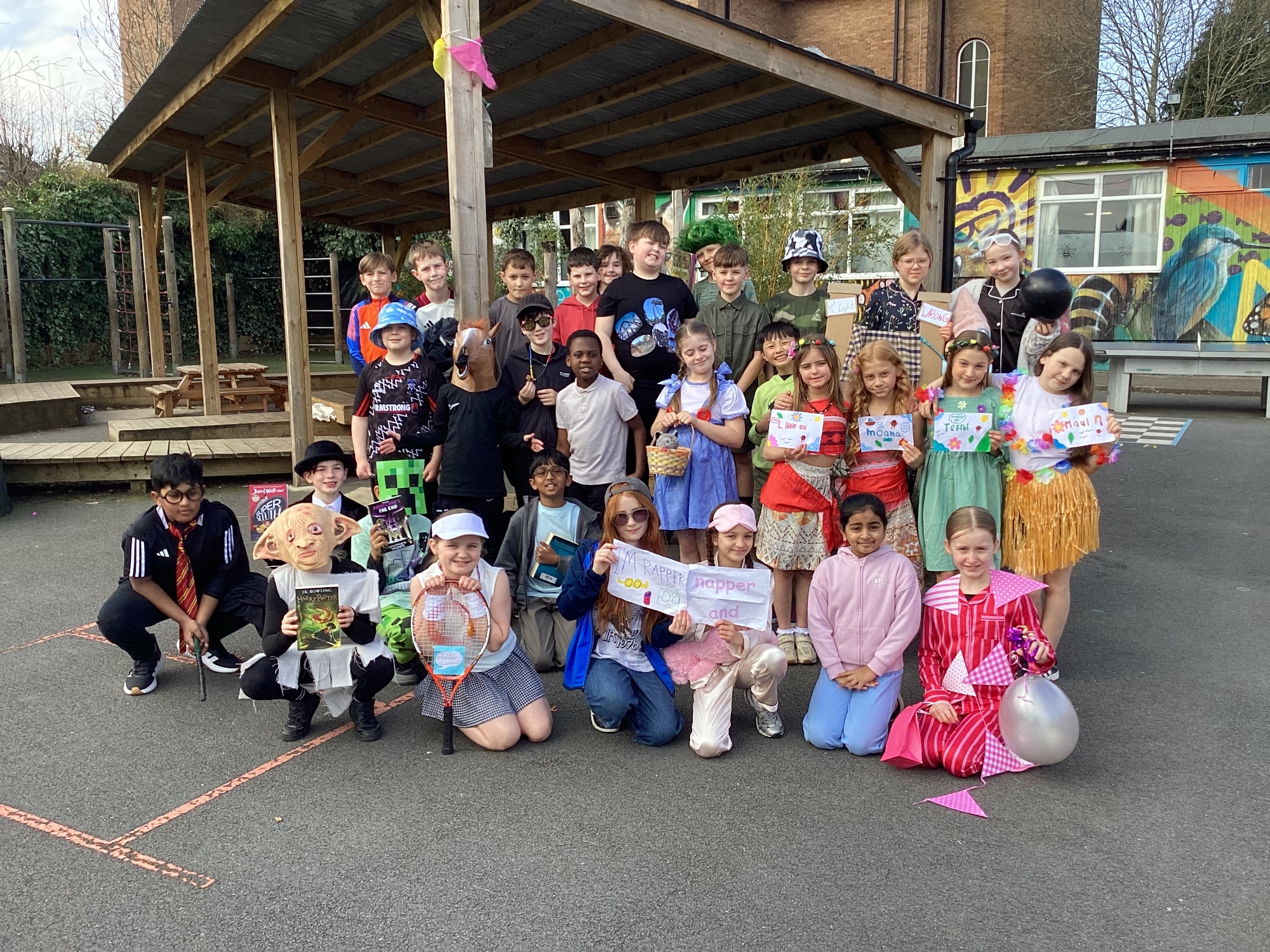 Today Y5 wore some magnificent costumes to celebrate World Book Day. We shared our books with Y5 and Nursery and joined in with a whole school parade.