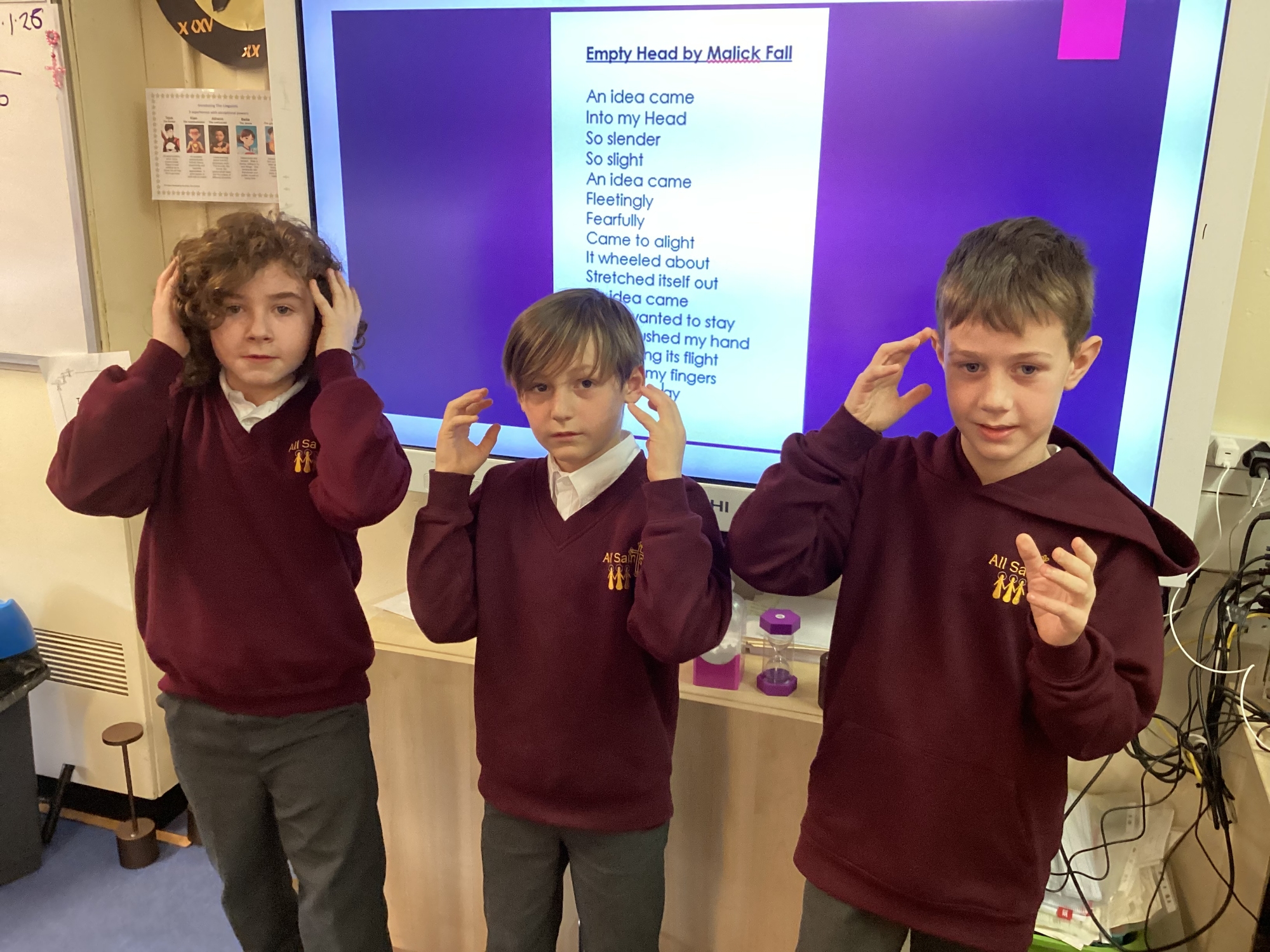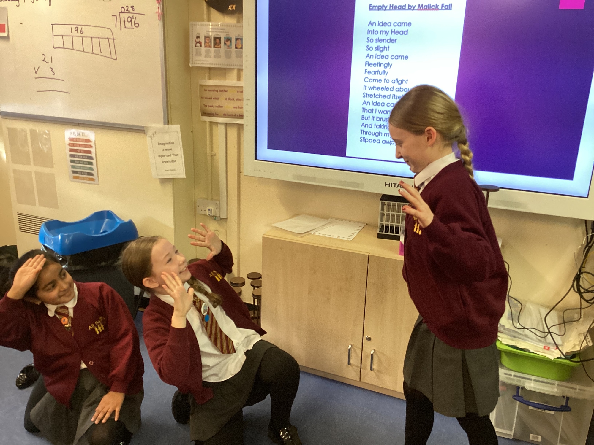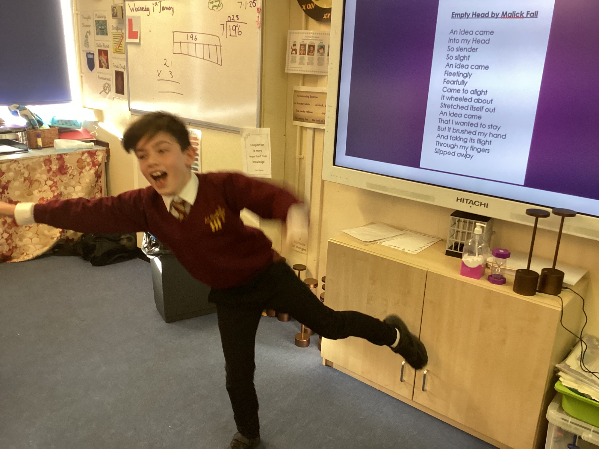 We are learning about performance poetry. We performed the poem 'Empty Head' by Malick Fall.