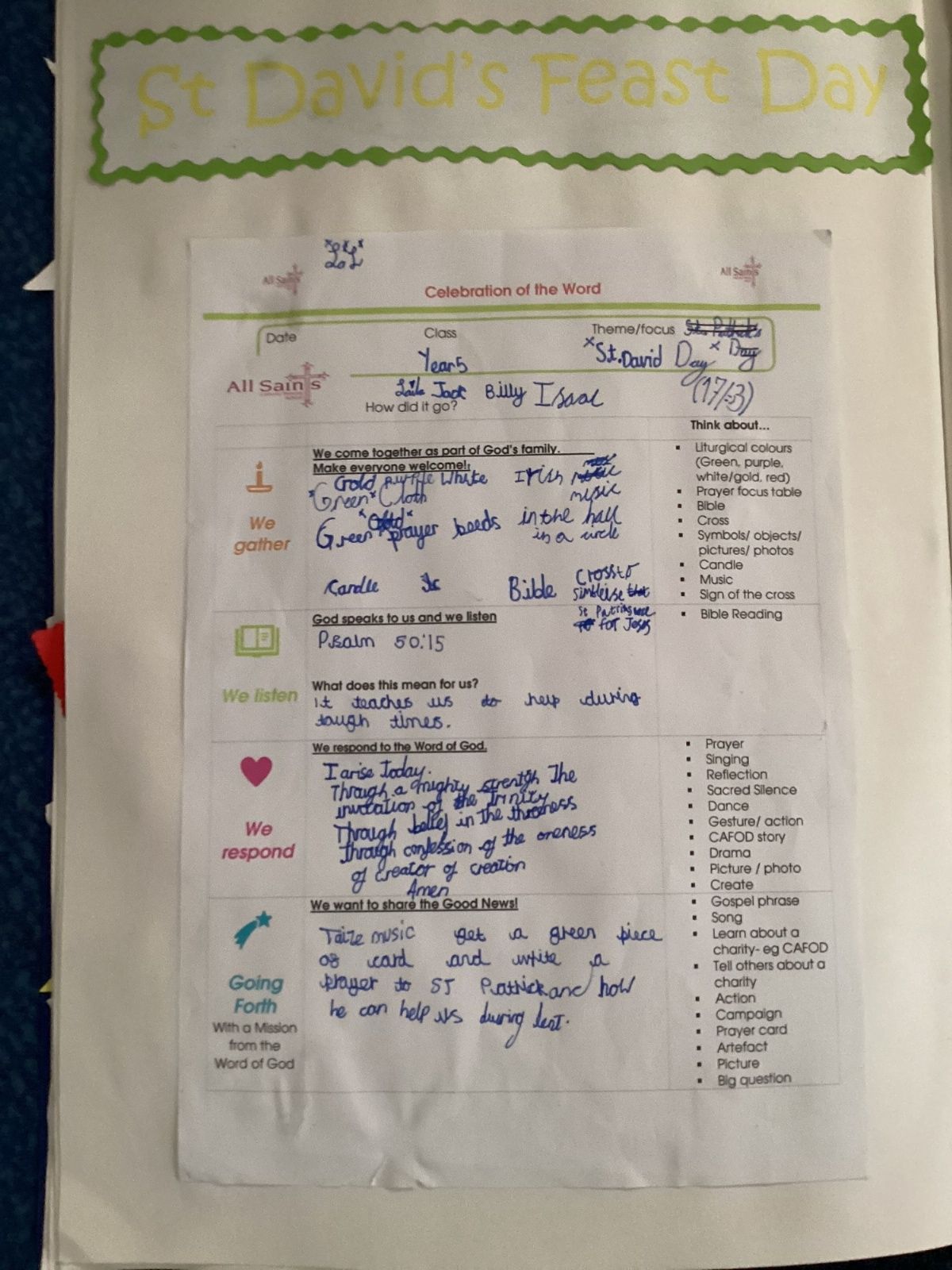 Our prayer service today with beautiful readings from the Y5 children.