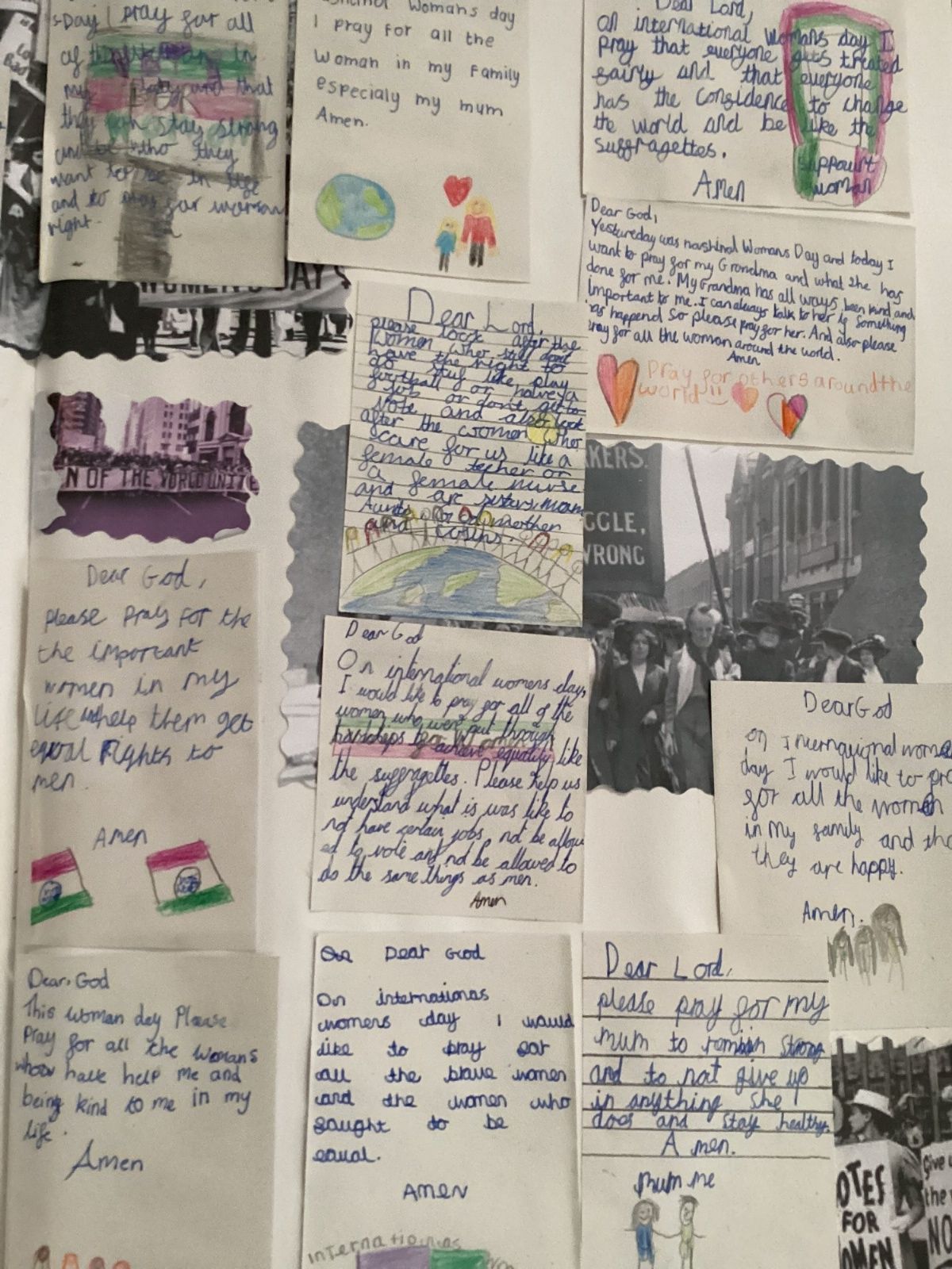 We wrote prayers to God thanking Him for our wonderful world. We prayed that He would help us find ways to keep our planet healthy for the next generation.