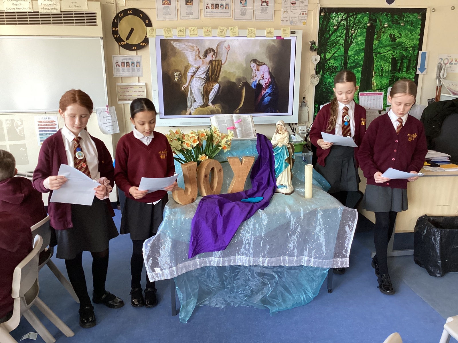 Year 5 gathered for a special Celebration of the Word reflecting on the Annunciation (Gospel of Luke 1:26–38).