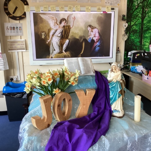 The children listened to the story of Mary saying “yes” to God and thought about how this shows trust, courage and faith. They reflected on how they can follow Mary’s example by making good choices and doing what is right in their own lives.