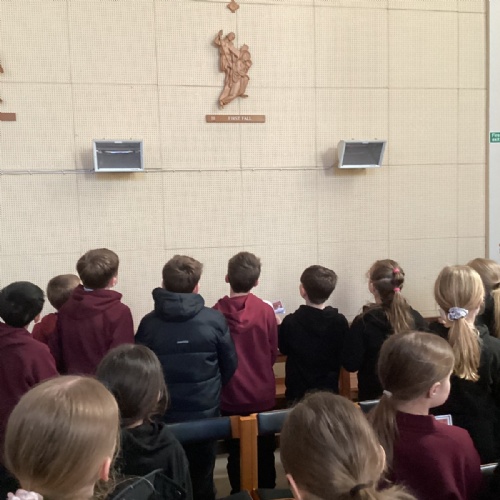Year 5 visited church to learn about the Stations of the Cross. During our visit, we spent time reflecting and praying, thinking about how we can be more like Jesus. We discussed the importance of being forgiving and merciful, and how we can help those in need in our everyday lives.