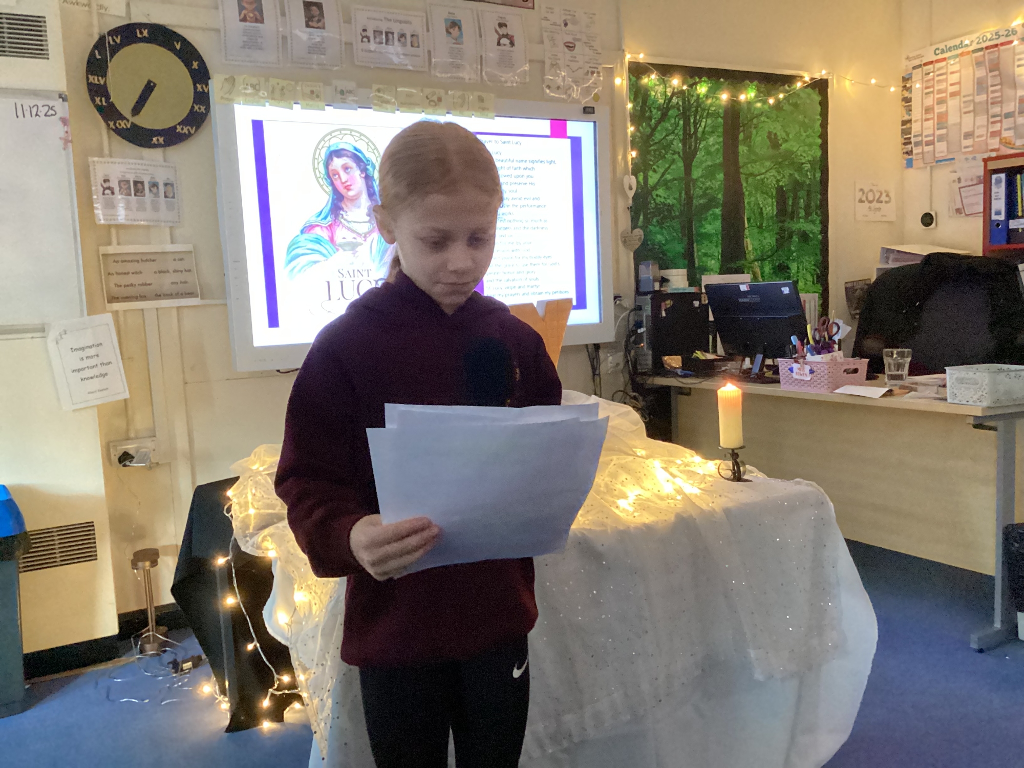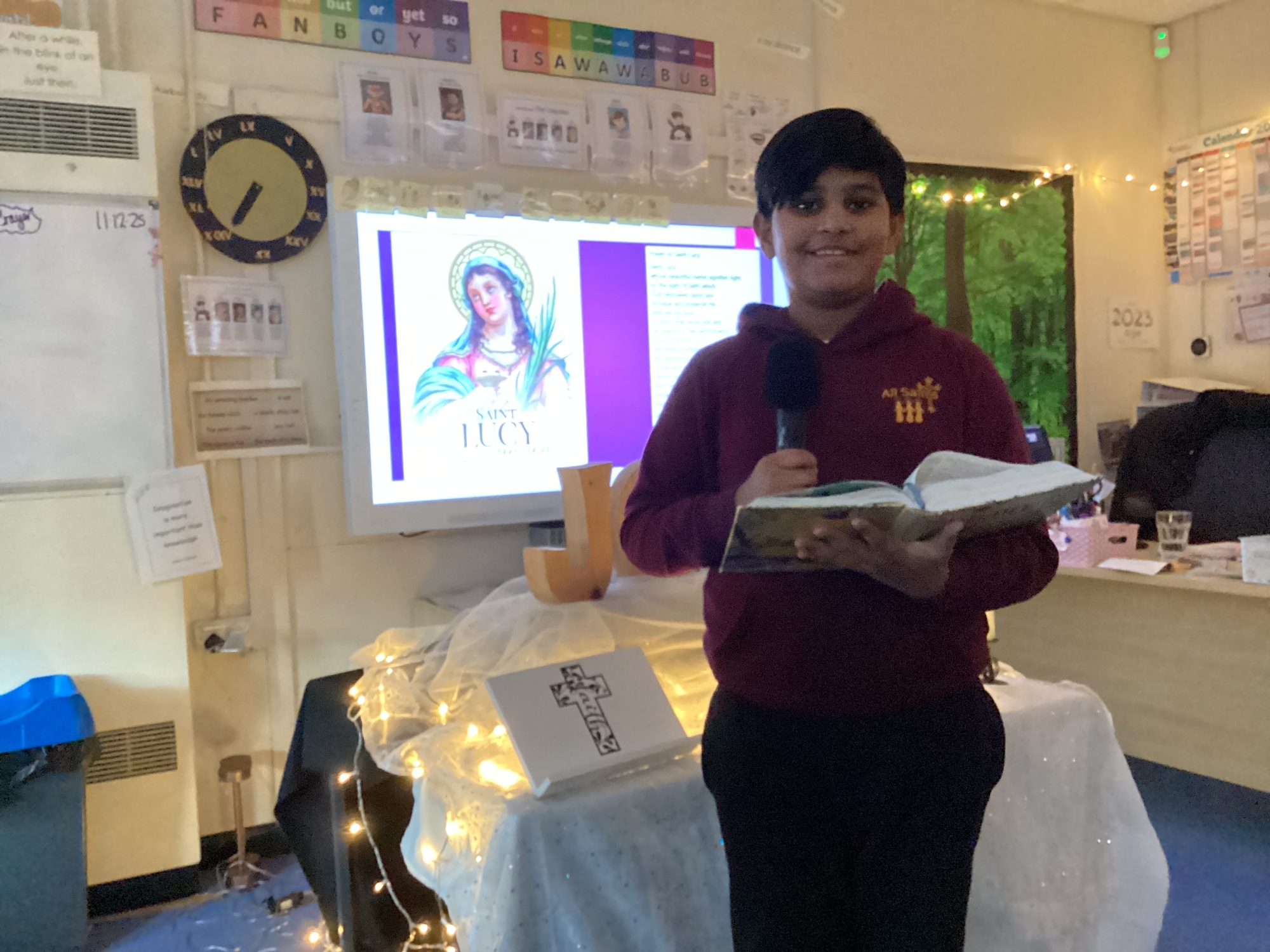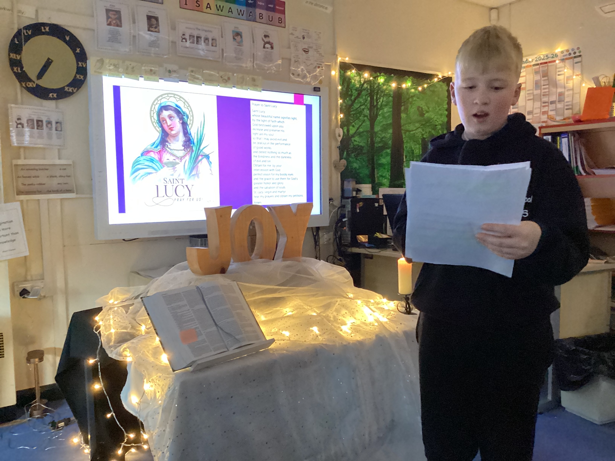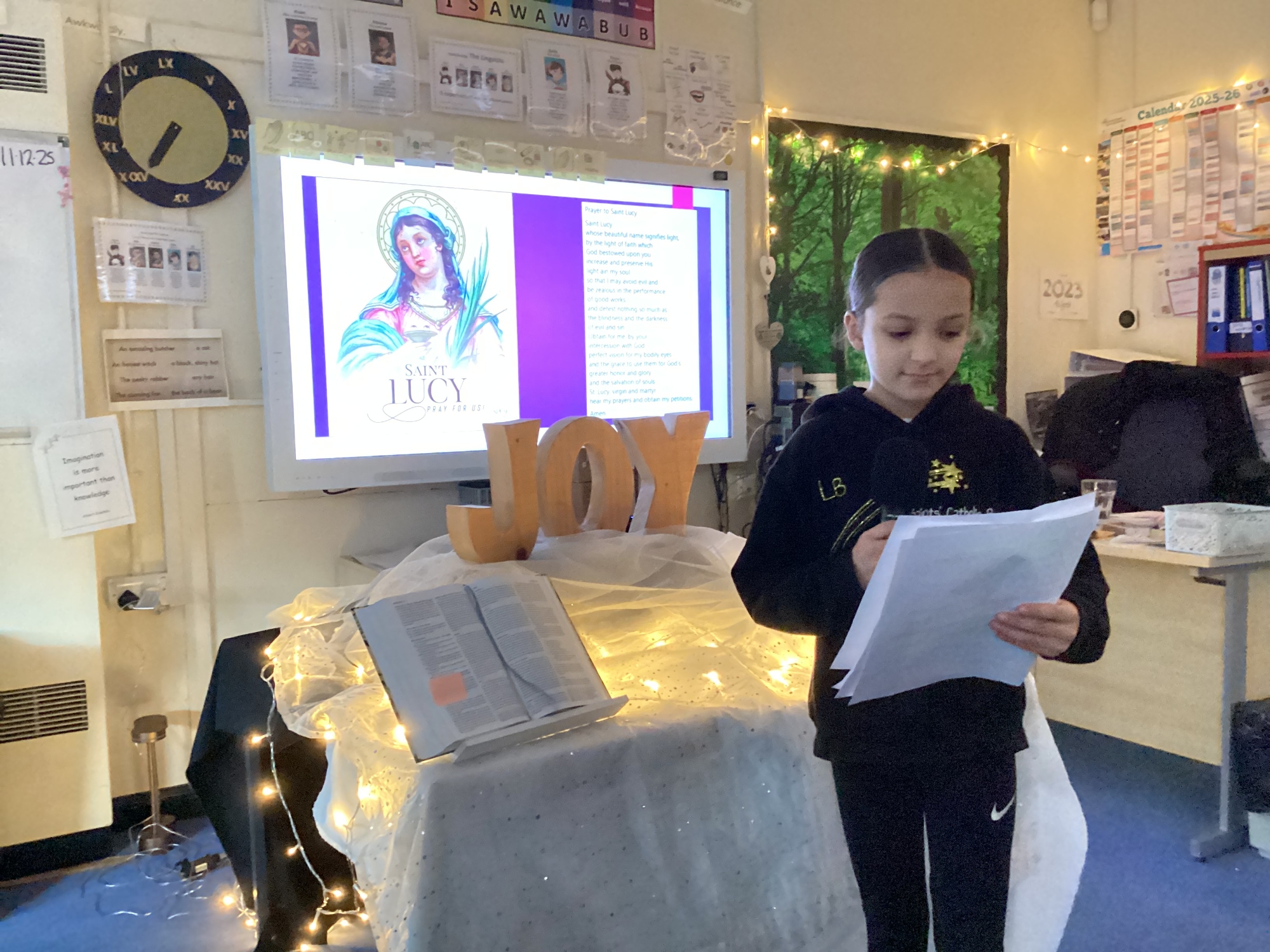 Today we held a special prayer service to honour St Lucy of Syracuse. We learnt that Lucy was a brave and faithful young woman who refused to give up her belief in God, even when it was difficult. She used her gifts to help the poor and is remembered as a symbol of light, hope, and courage. During our service, we reflected on how we can follow her example by showing kindness, standing up for what is right, and bringing God’s light to others.