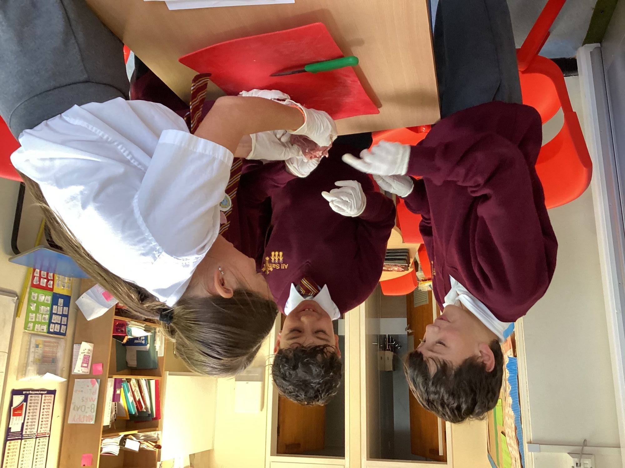 We were amazed to discover how similar a lamb’s heart is to a human heart — both have four chambers and work in the same way — but they noticed that the lamb’s heart is smaller and more compact. A opportunity to bring their learning about the circulatory system to life and to see real science in action.