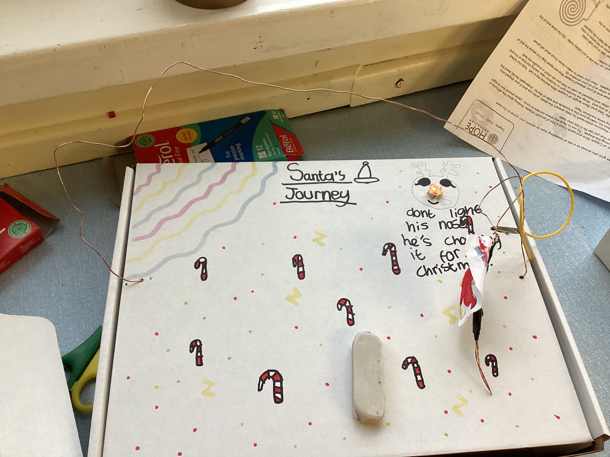 Year 6 took part in a Design & Technology project that combined scientific understanding with creative design. Their challenge was to design and make a steady hand game for younger children, focusing on developing fine motor skills, concentration and hand–eye coordination. The project was closely linked to the National Curriculum outcomes for Design & Technology and Science, particularly learning about simple electrical circuits. Many of the games to be shared with our buddies in Reception were themed around Christmas.