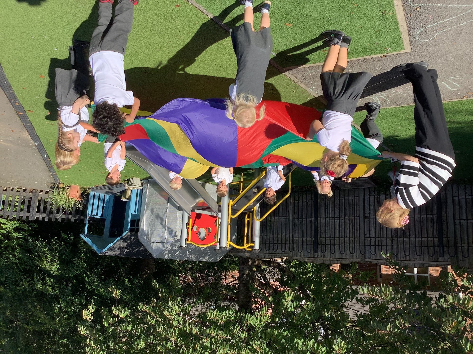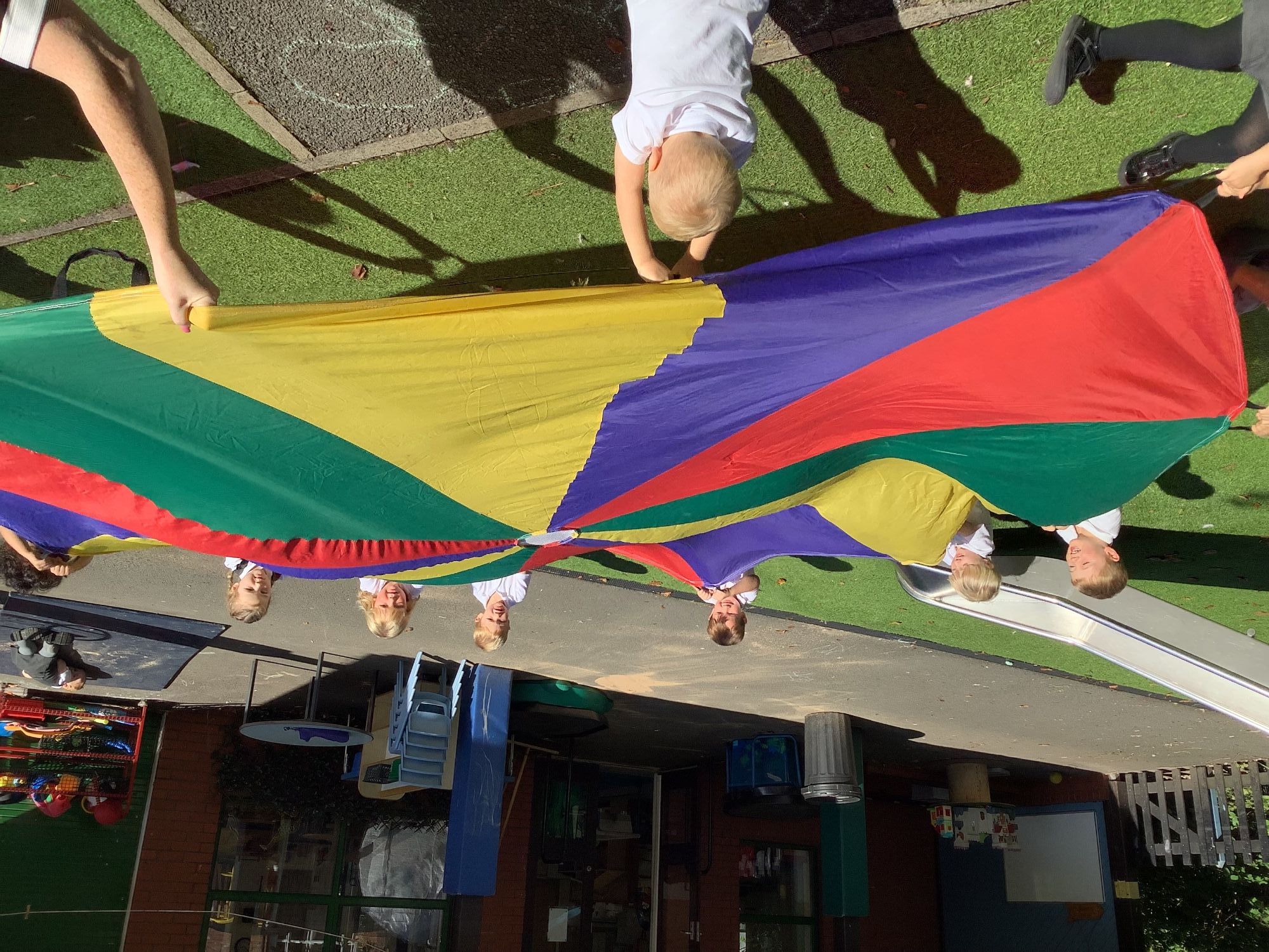 Using the parachute helps us learn to work together, listen carefully, and follow instructions. It builds our physical skills like coordination and strength, while also encouraging teamwork, turn-taking, and lots of laughter!