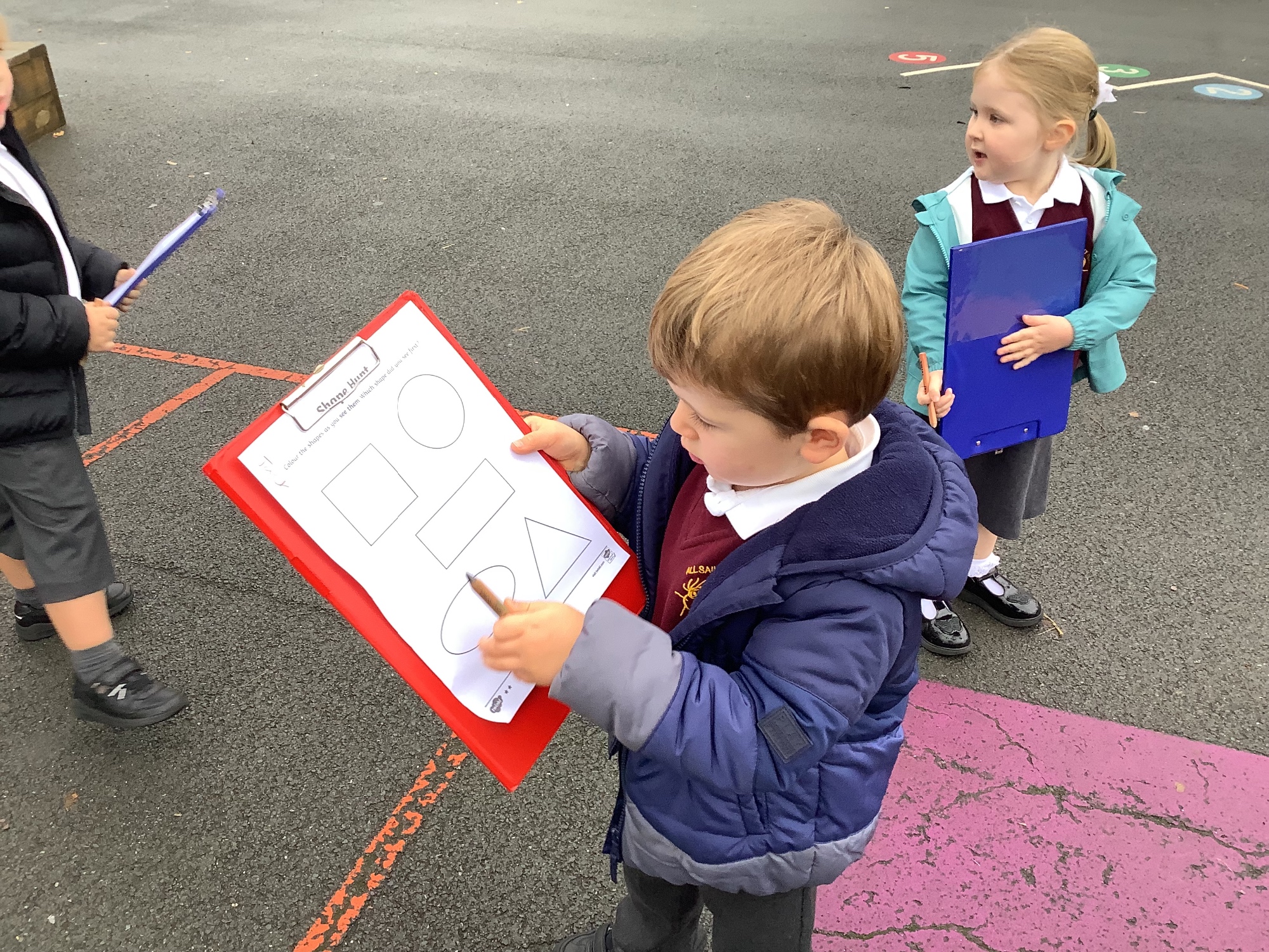 We enjoyed an exciting shape walk around our school where we explored the grounds and looked carefully to spot different shapes in our environment. From circles and squares to triangles and rectangles, the children were enthusiastic detectives, proudly identifying the shapes they discovered. We met some very special people on our shape hunt too.