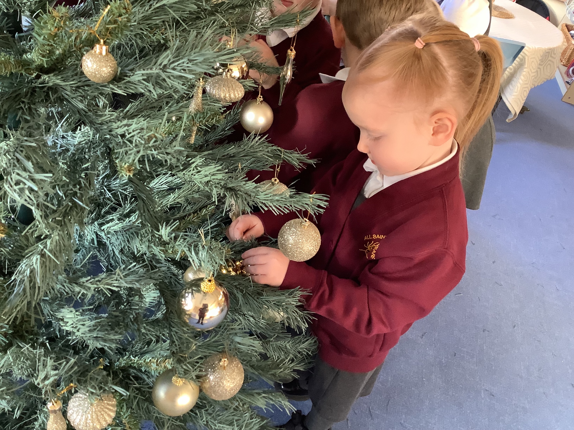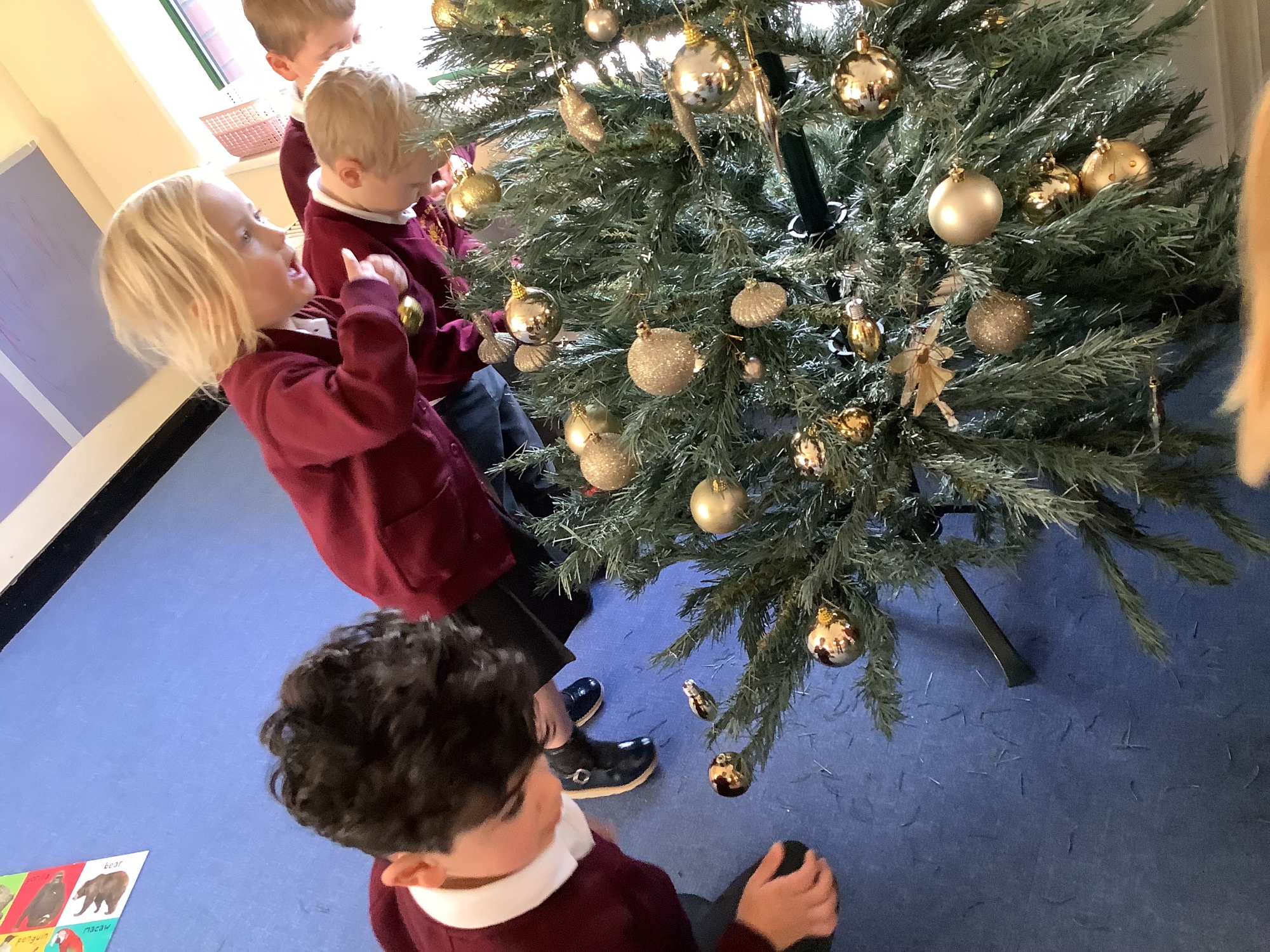 We all had great fun helping to decorate our Christmas tree. The children worked together beautifully, sharing the decorations and taking turns to add them to the tree. It was lovely to see their cooperation, patience and excitement as they admired their finished work, creating a festive display that everyone could enjoy.