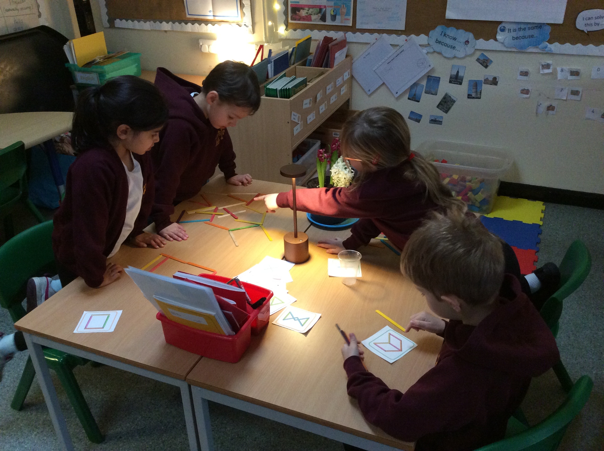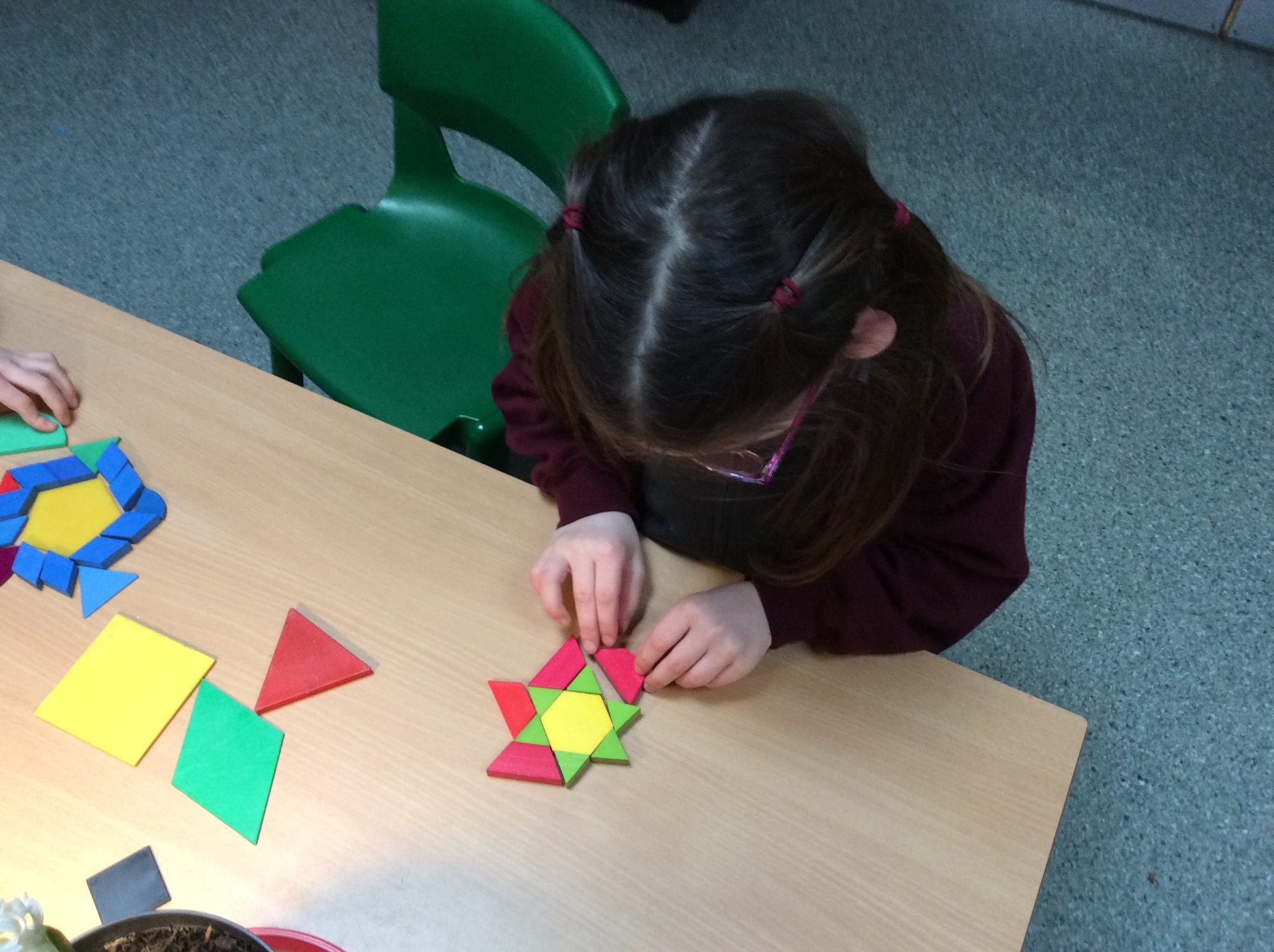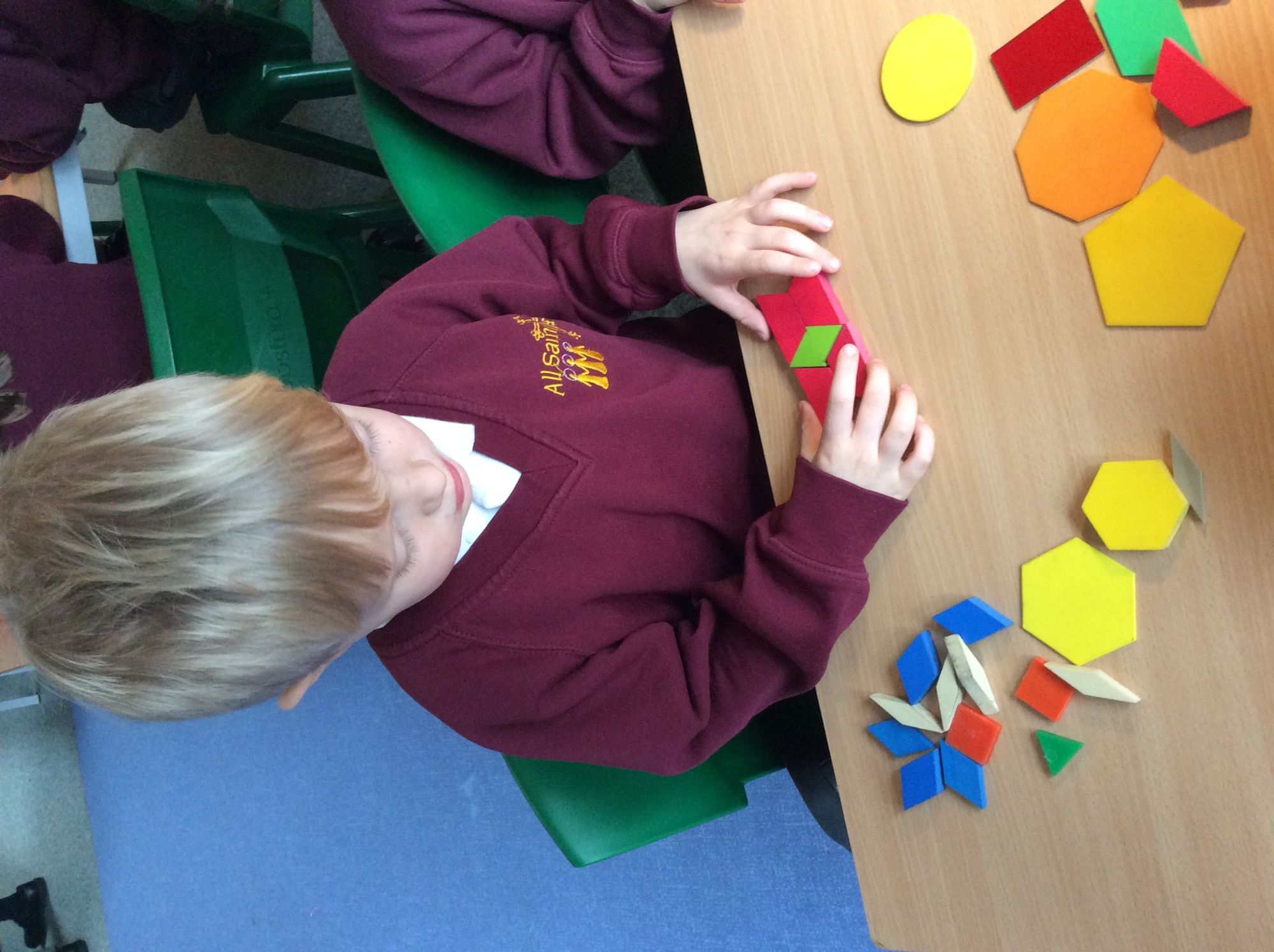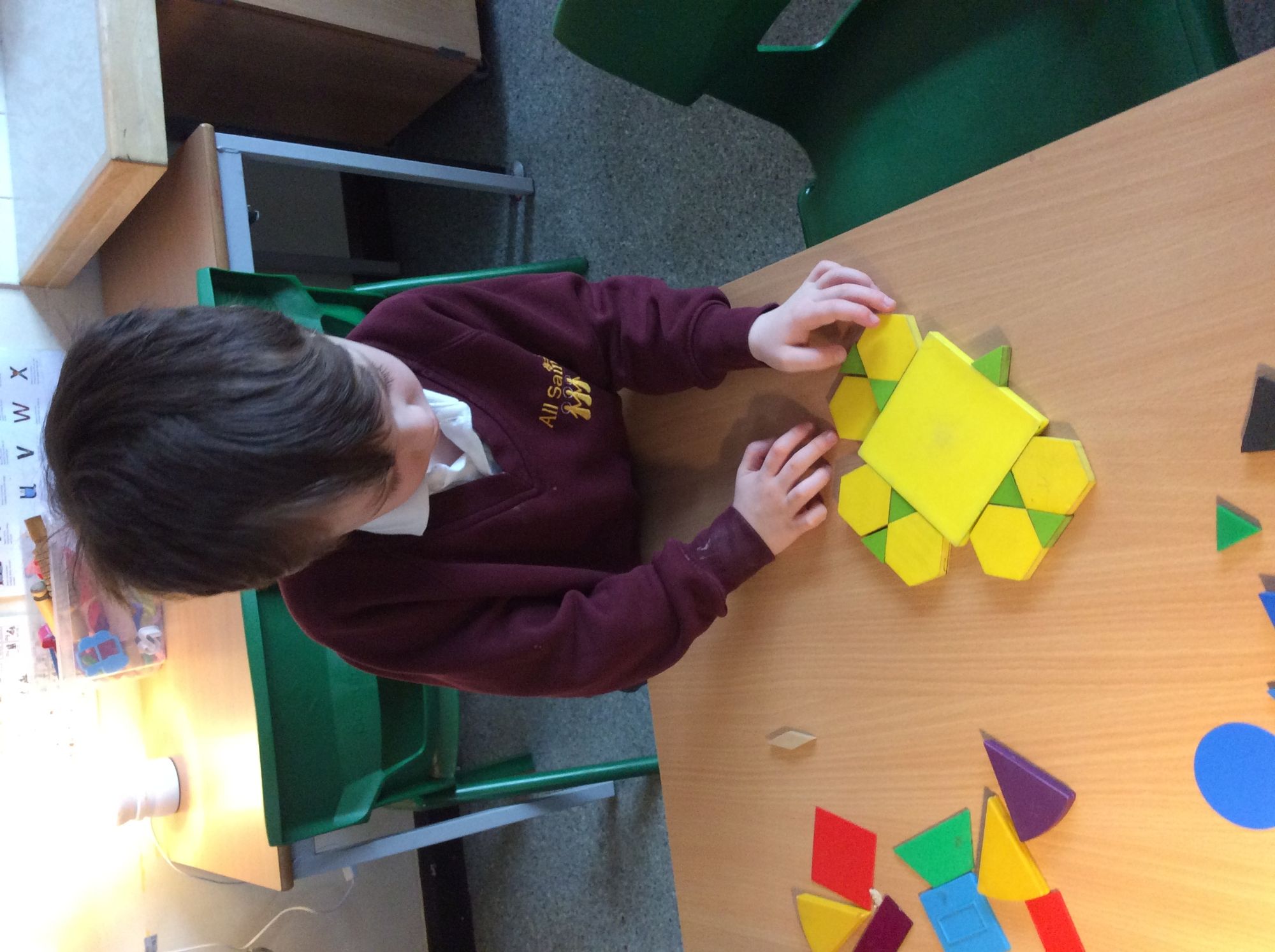 This week we have been looking at different types of patterns and shapes. The children have made repeating patterns, learnt about a unit of pattern and then developed further to create their own radiating pattern.